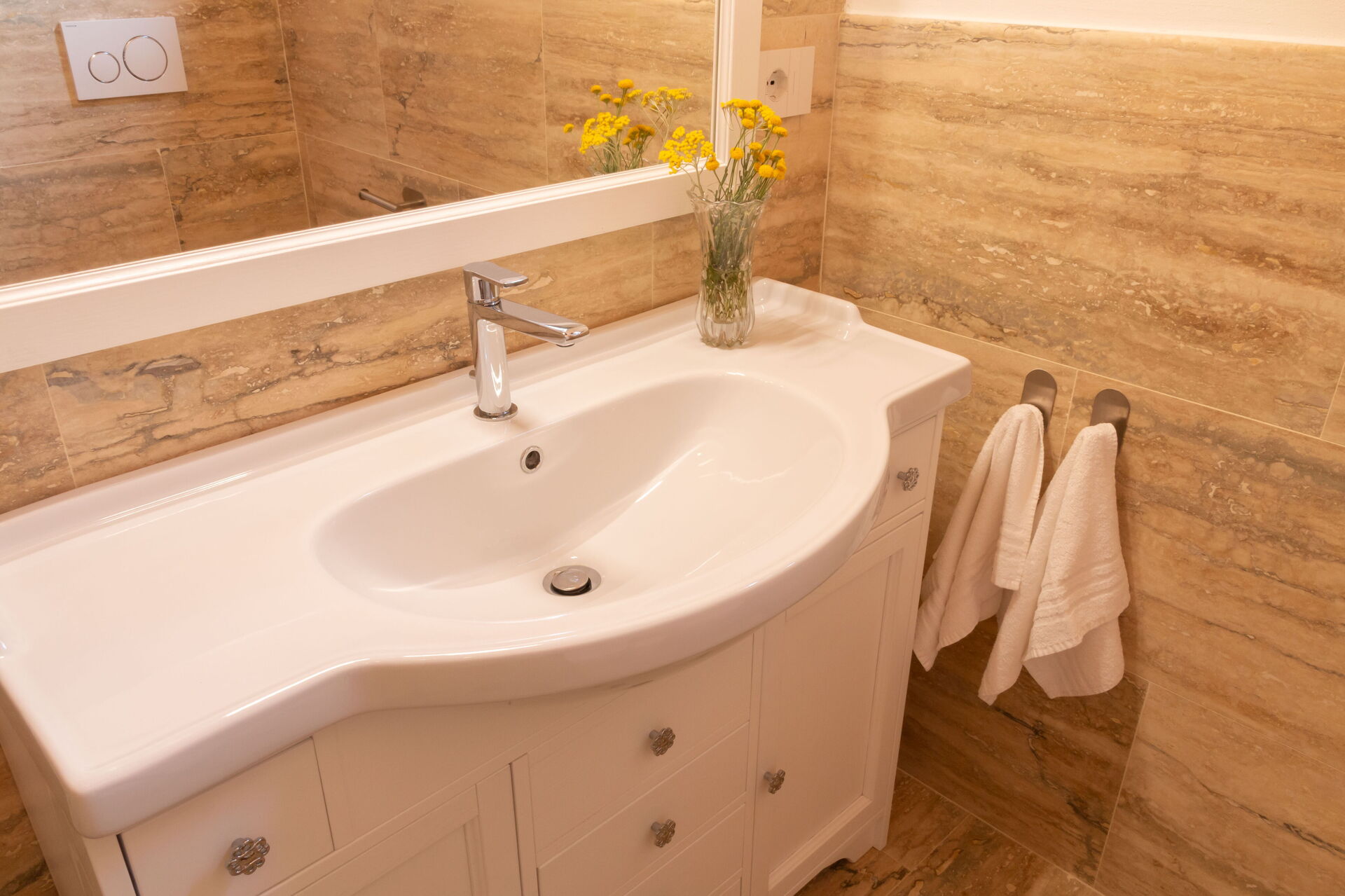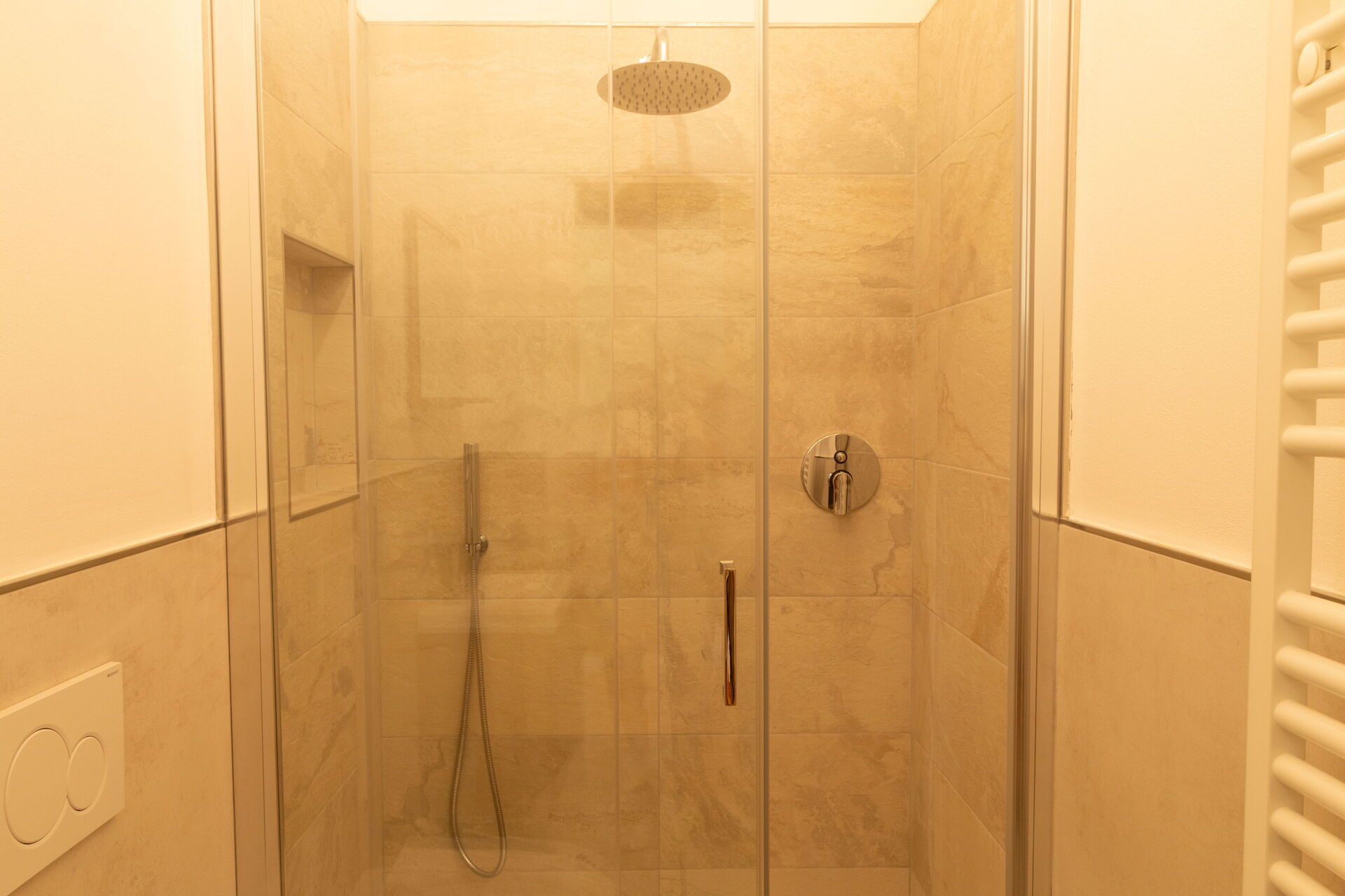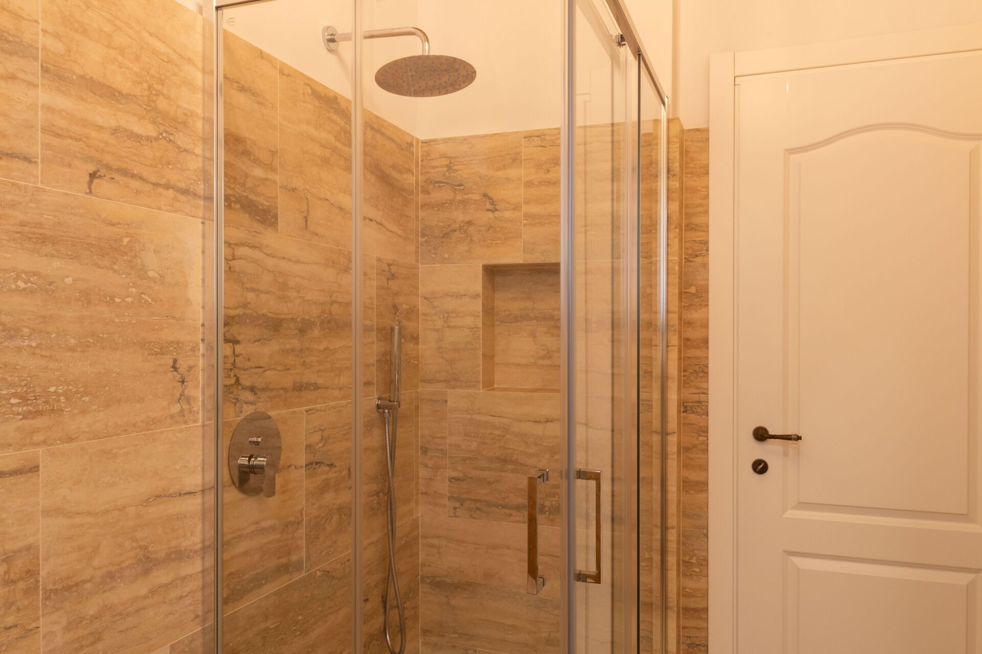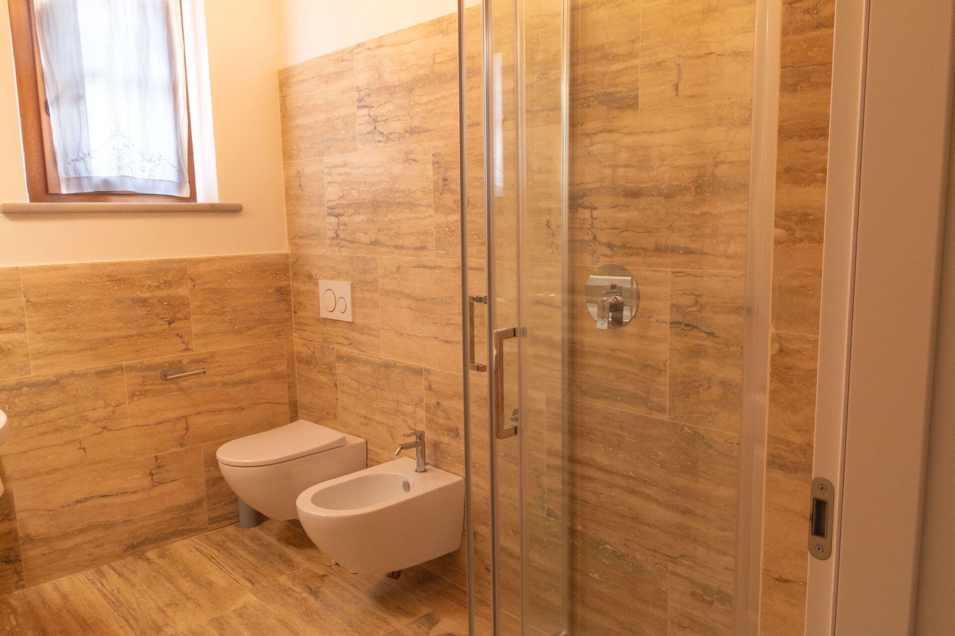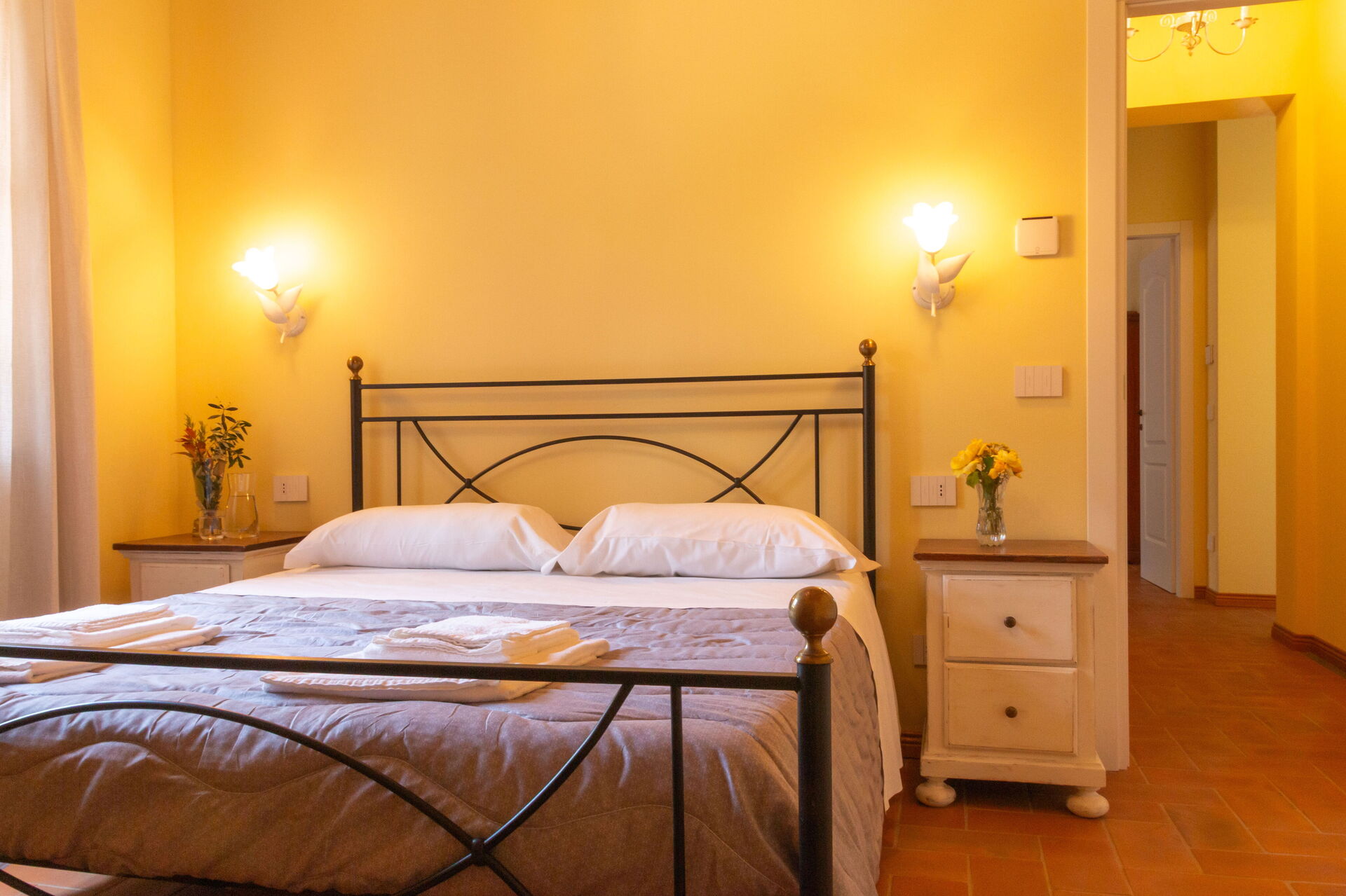 Inside, you’ll find a fully equipped kitchen, a cozy living room with a TV and streaming services, two double bedrooms, and two modern bathrooms. The interiors feature authentic Tuscan style with exposed stone walls and wooden beams.