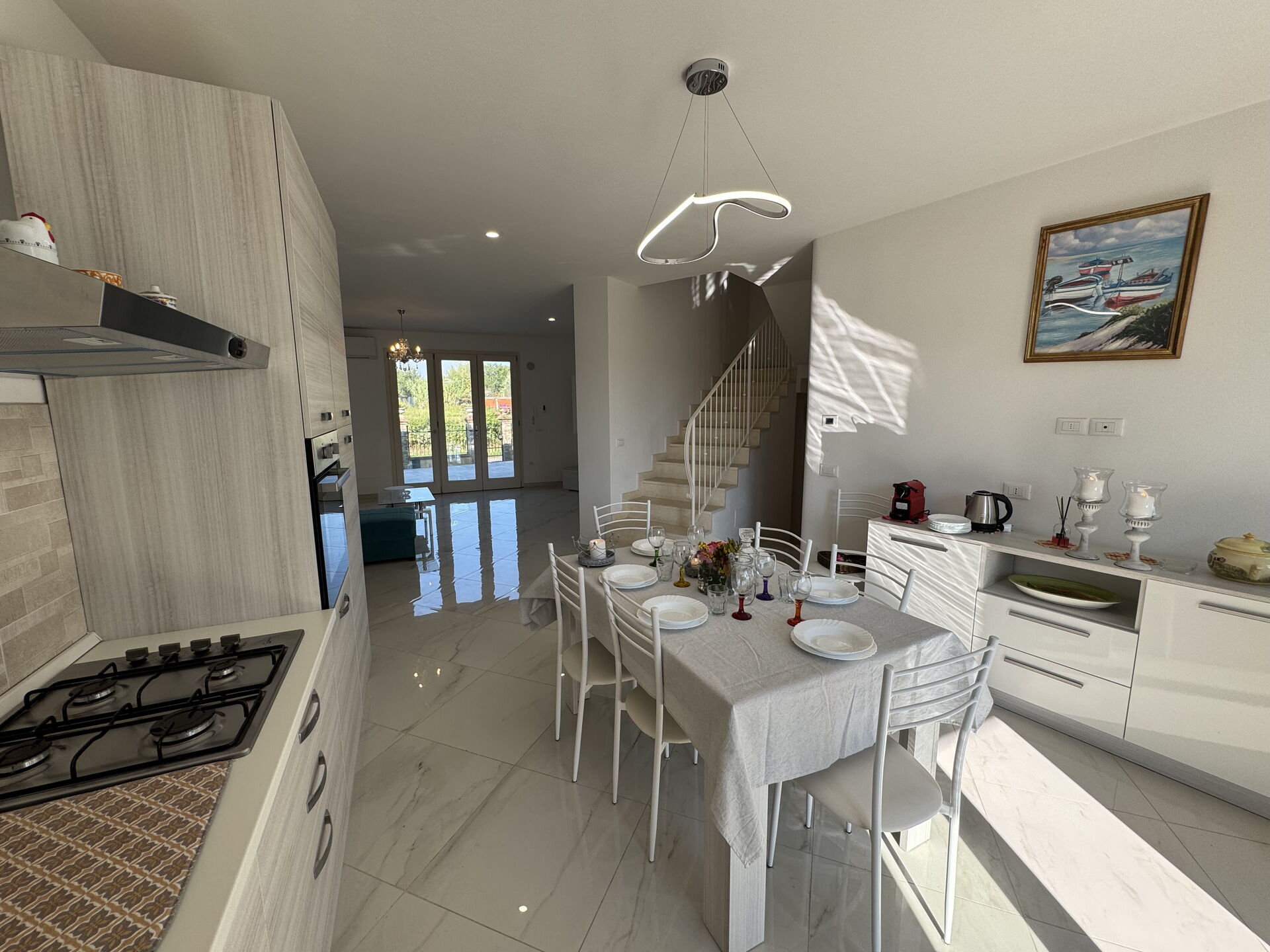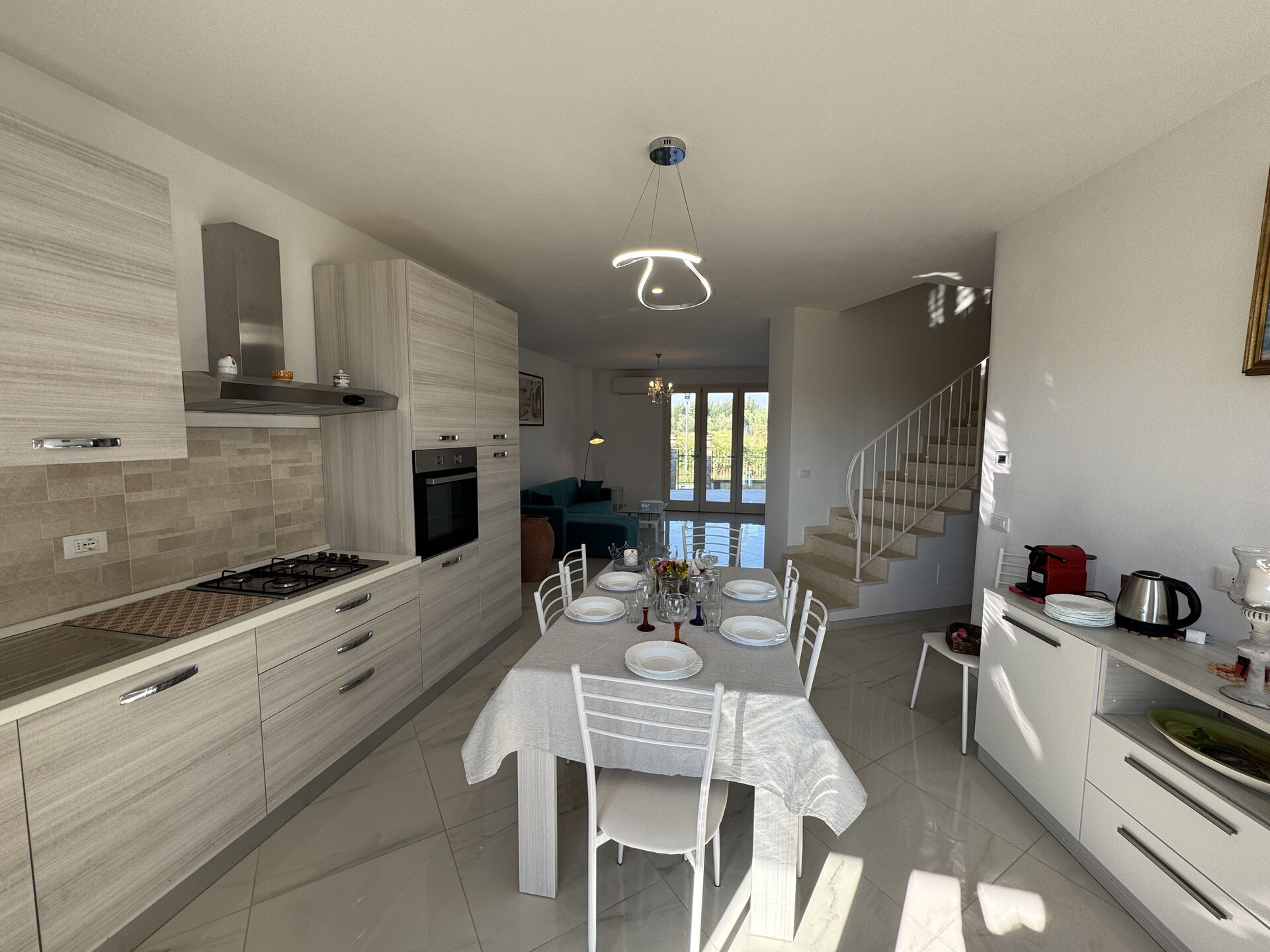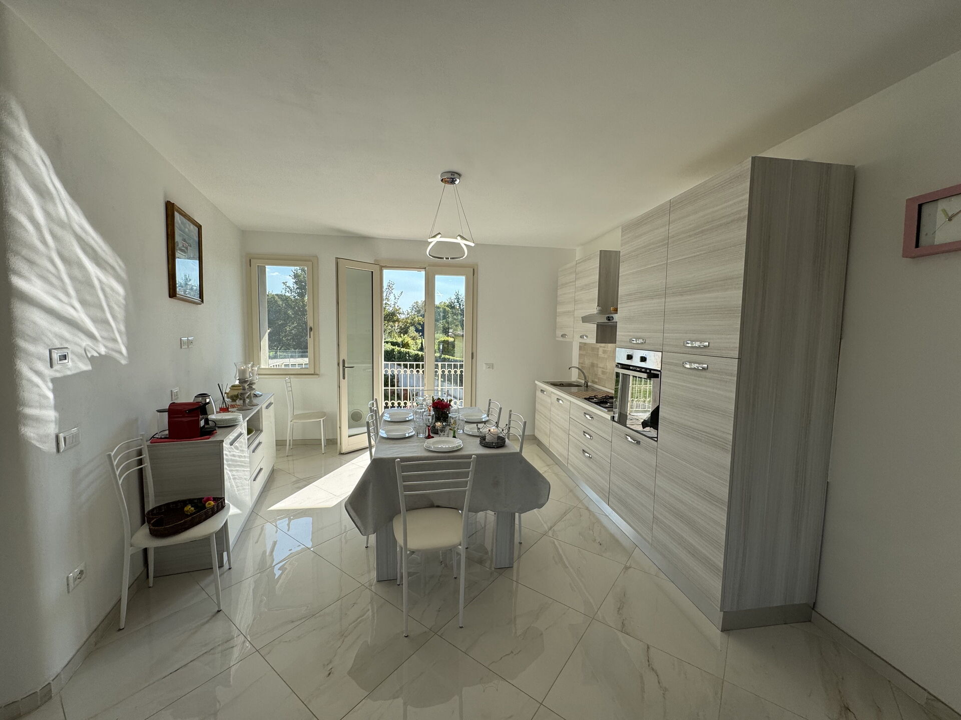 Kitchen: dining table, fridge, freezer, oven, toaster, italian coffee machine, WIFI internet, television, co2 detector, exit to the terrace.