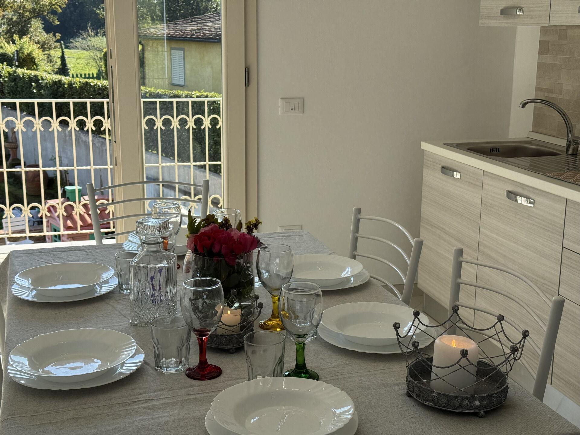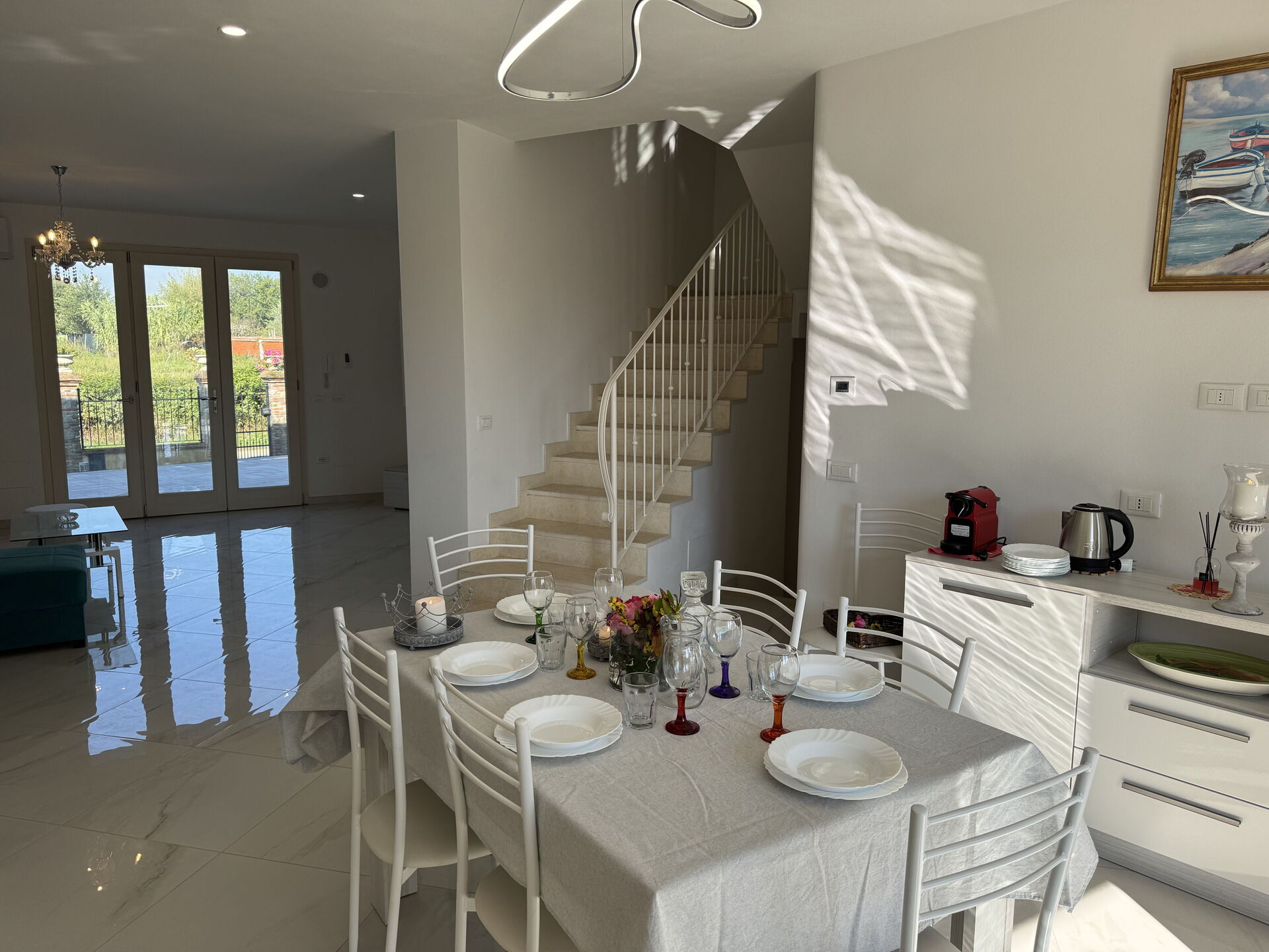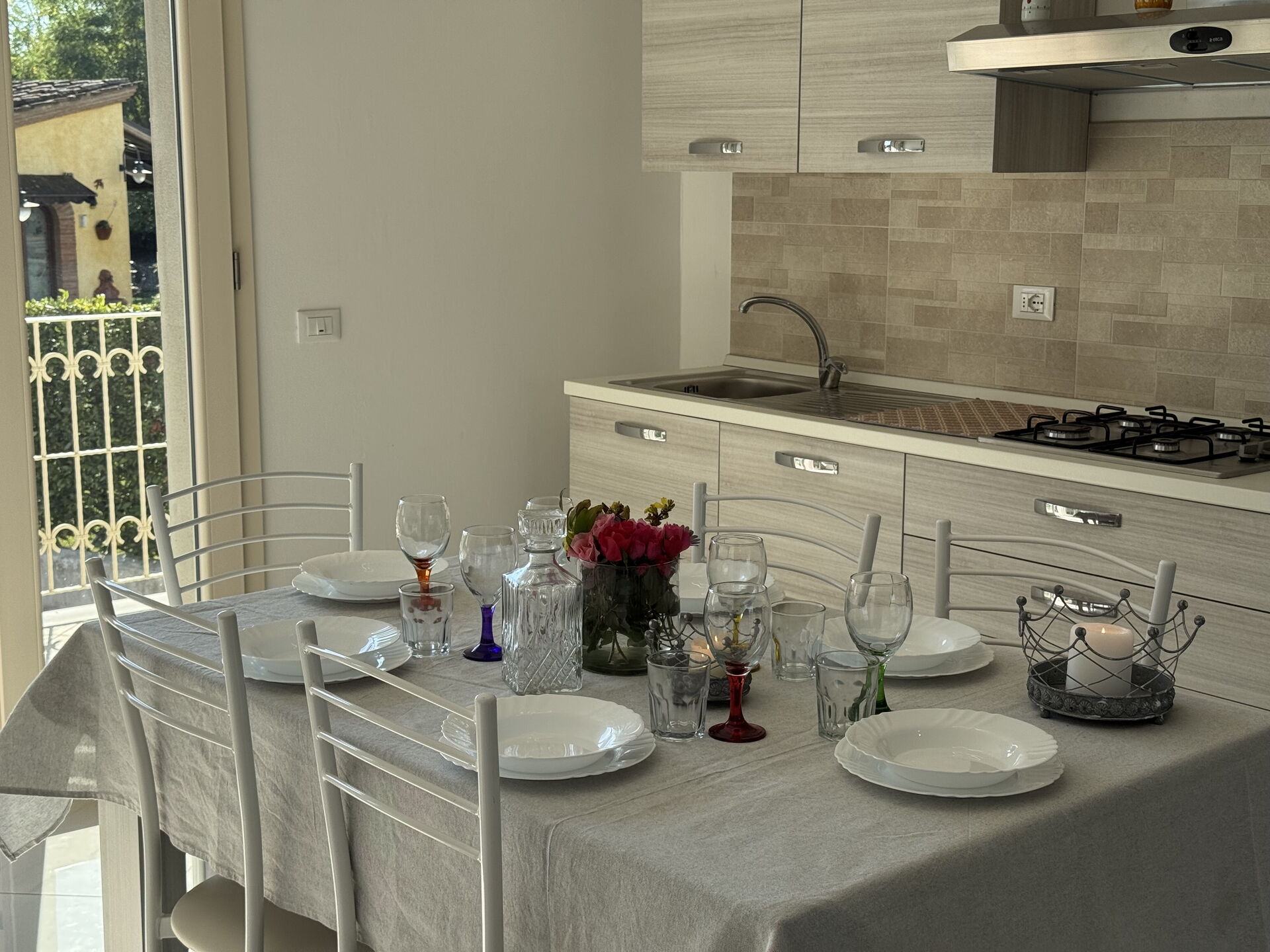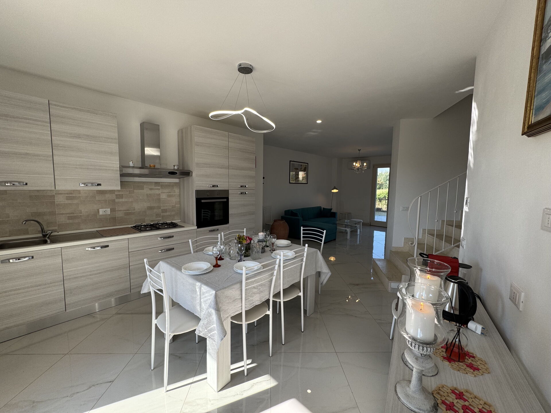 Kitchen: dining table, fridge, freezer, oven, toaster, italian coffee machine, WIFI internet, television, co2 detector, exit to the terrace.