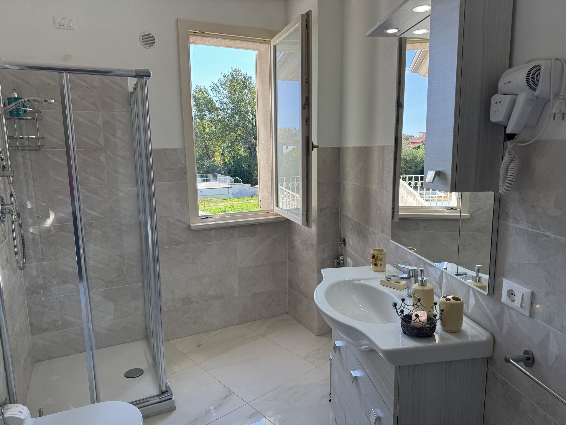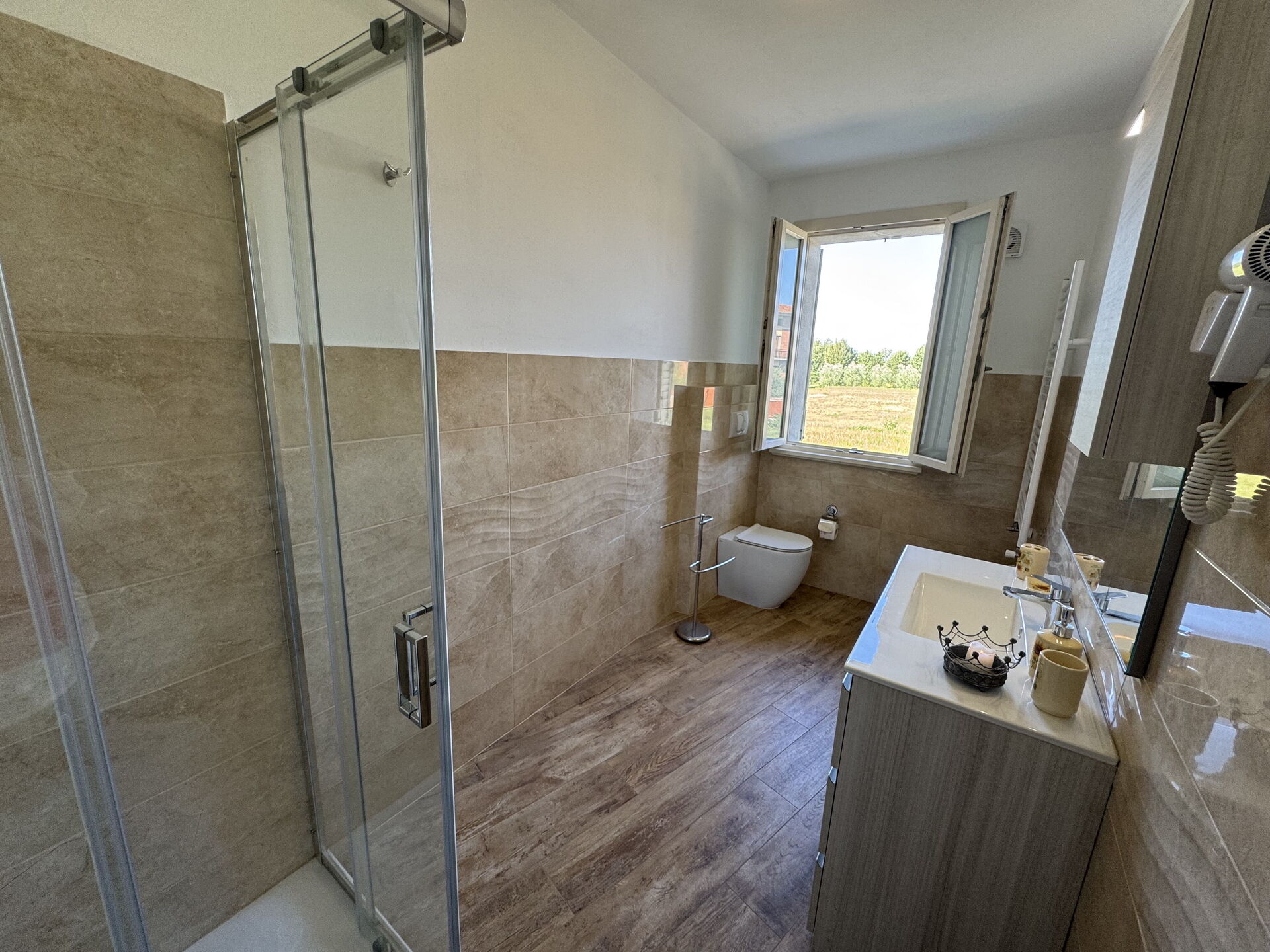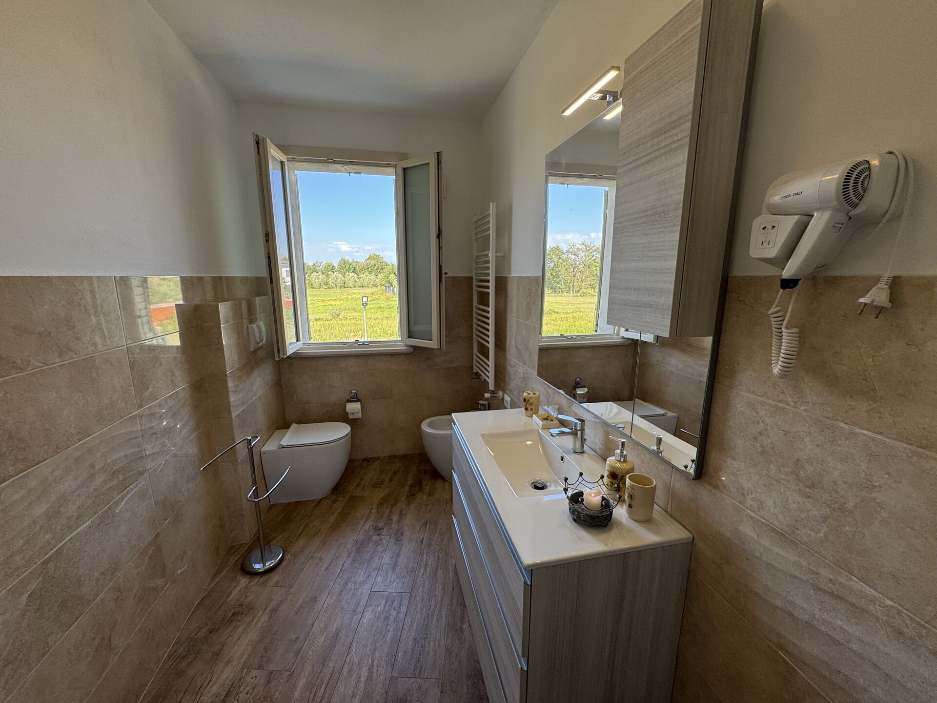 Bathroom: toilet, bidet, shower, hairdryer.
