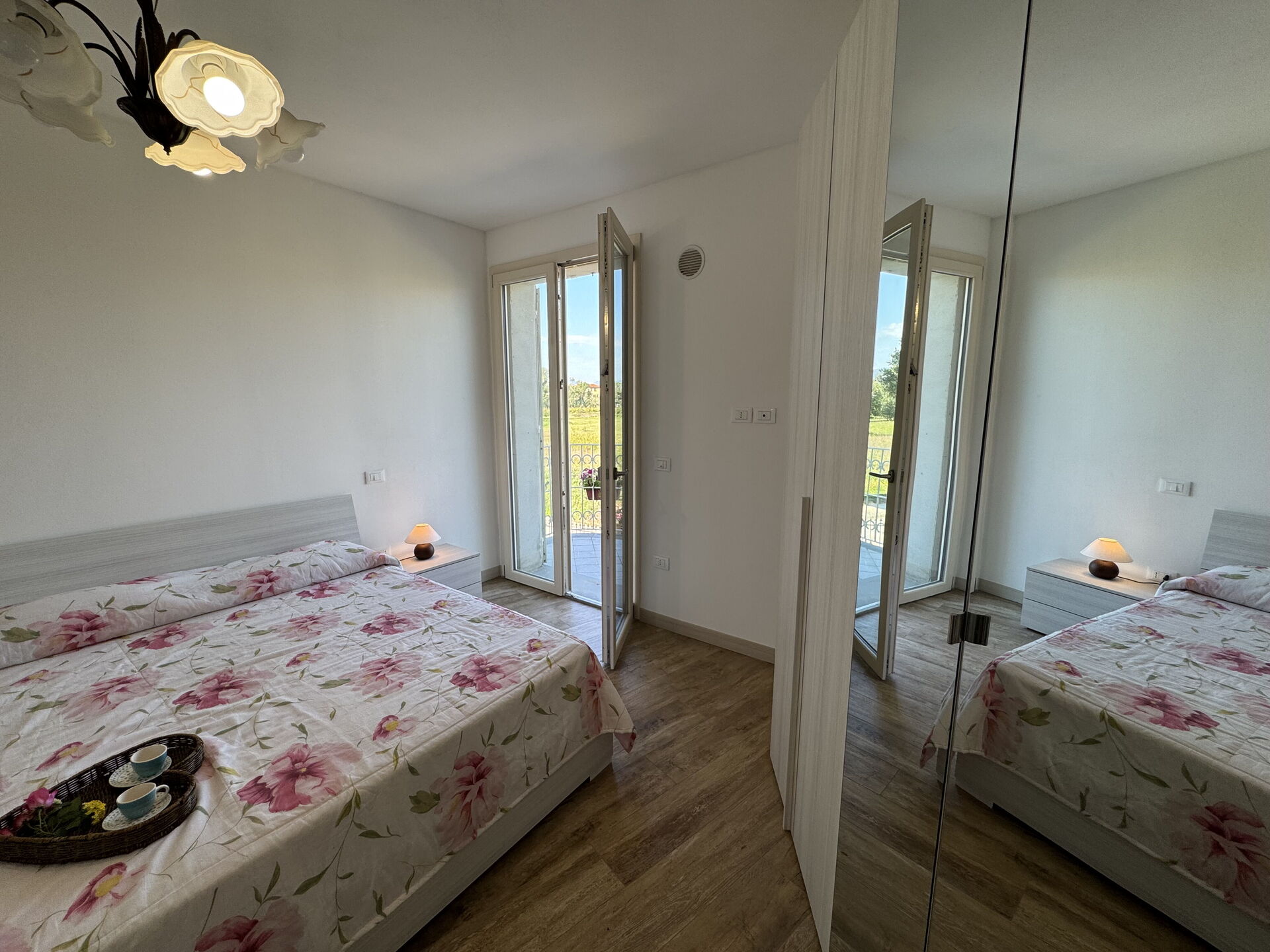 Bedroom 1: double bed, exit to the balcony.