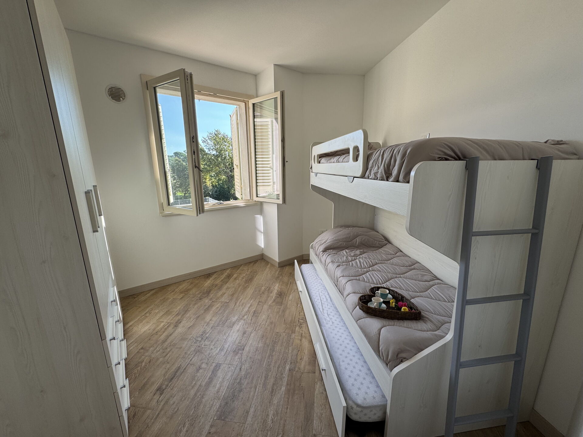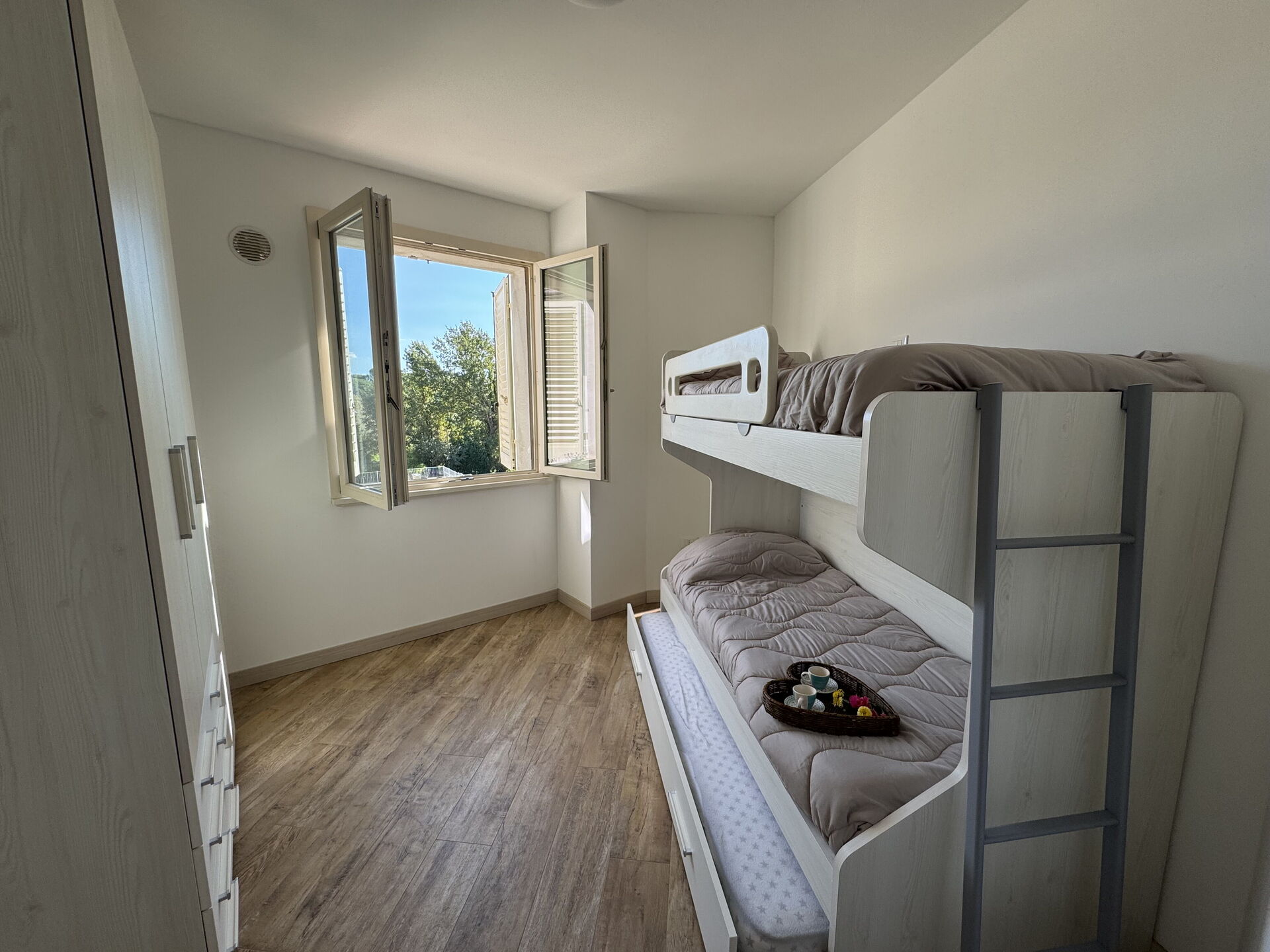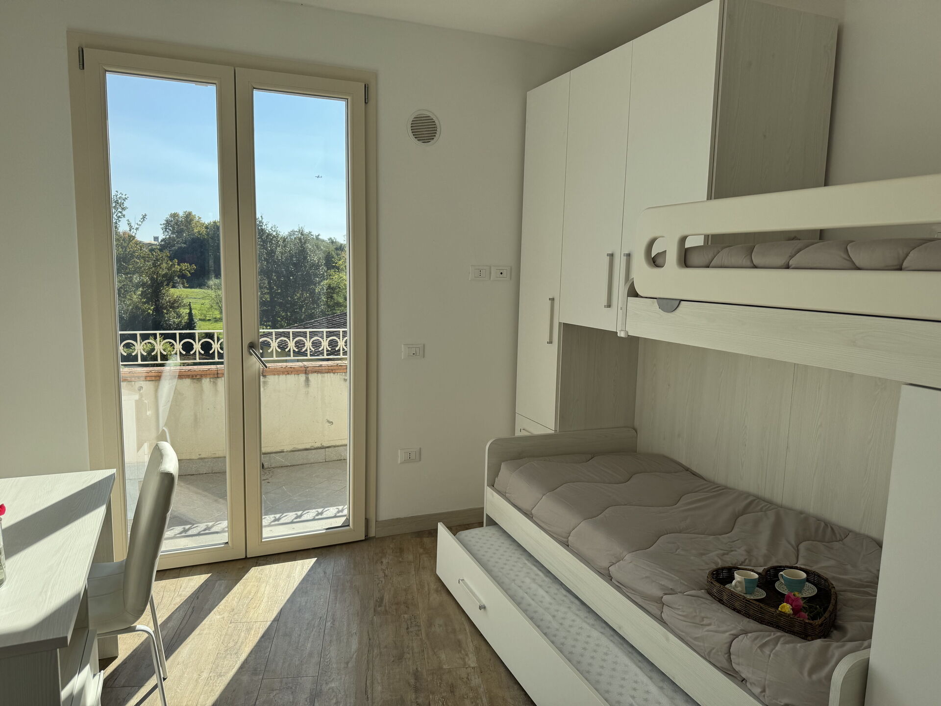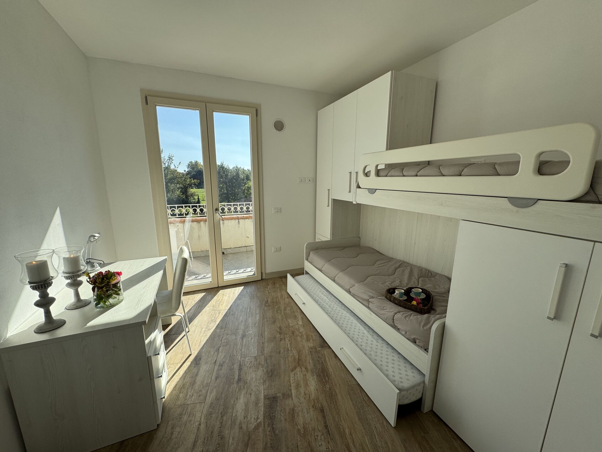 Bedroom 3: single bed, bunk bed, working desk.