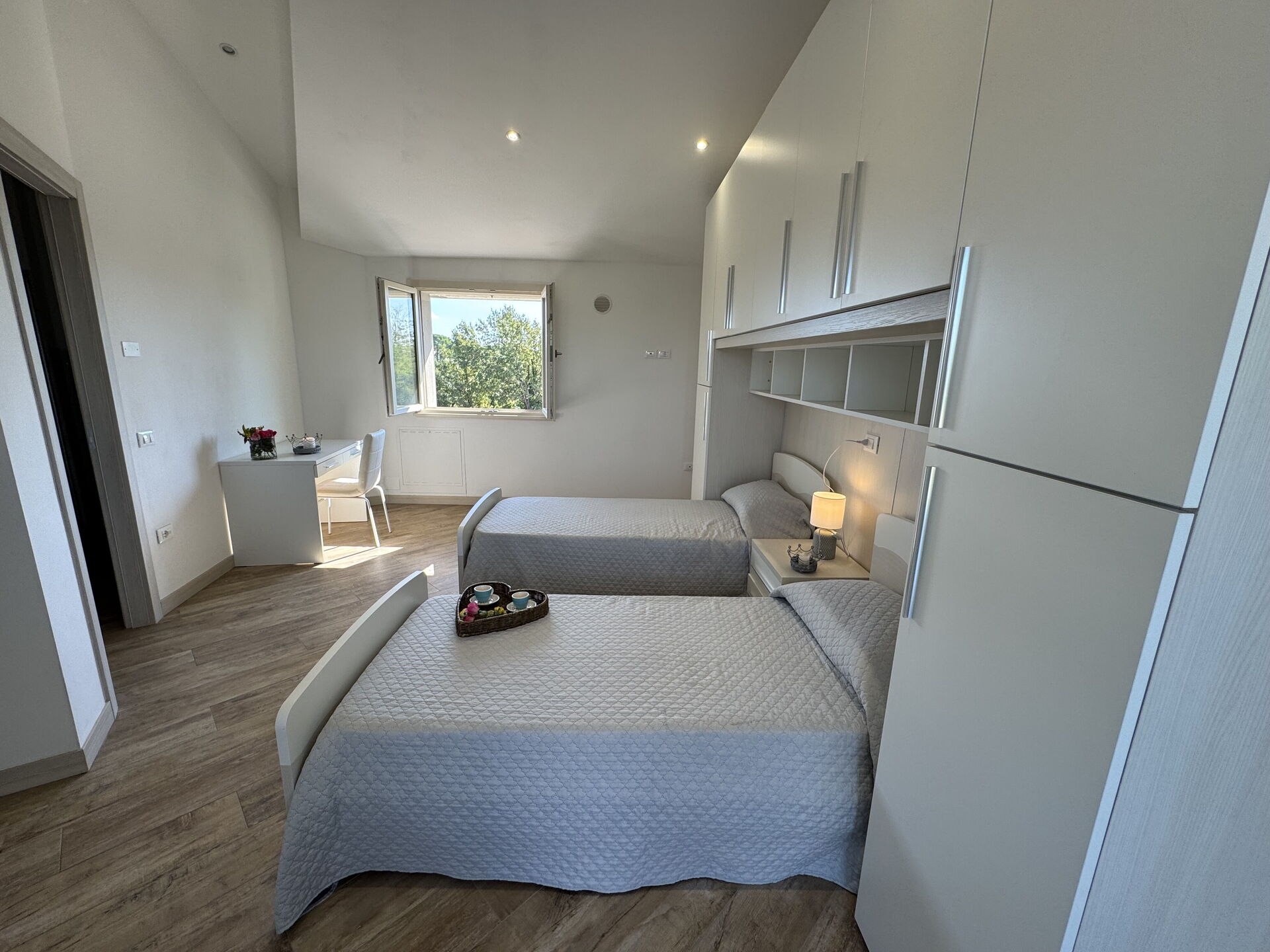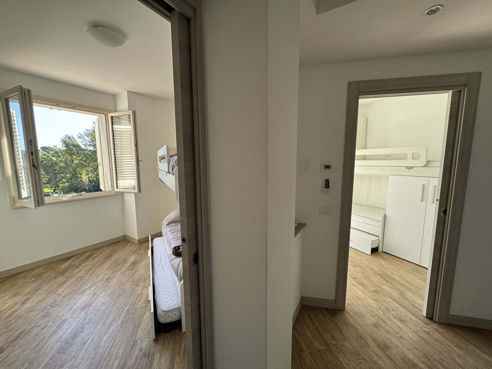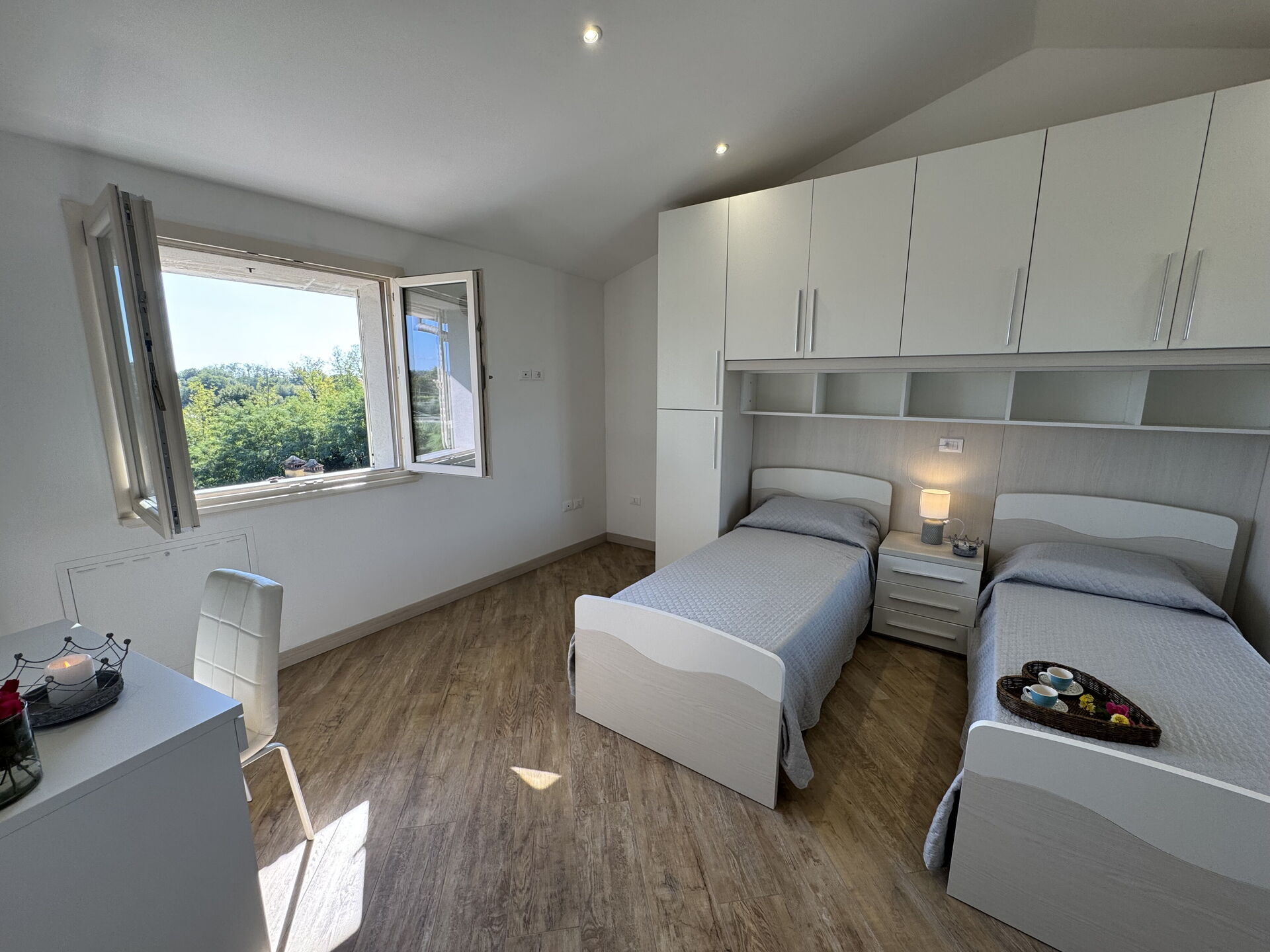 Bedroom: two single beds, exit to the terrace.