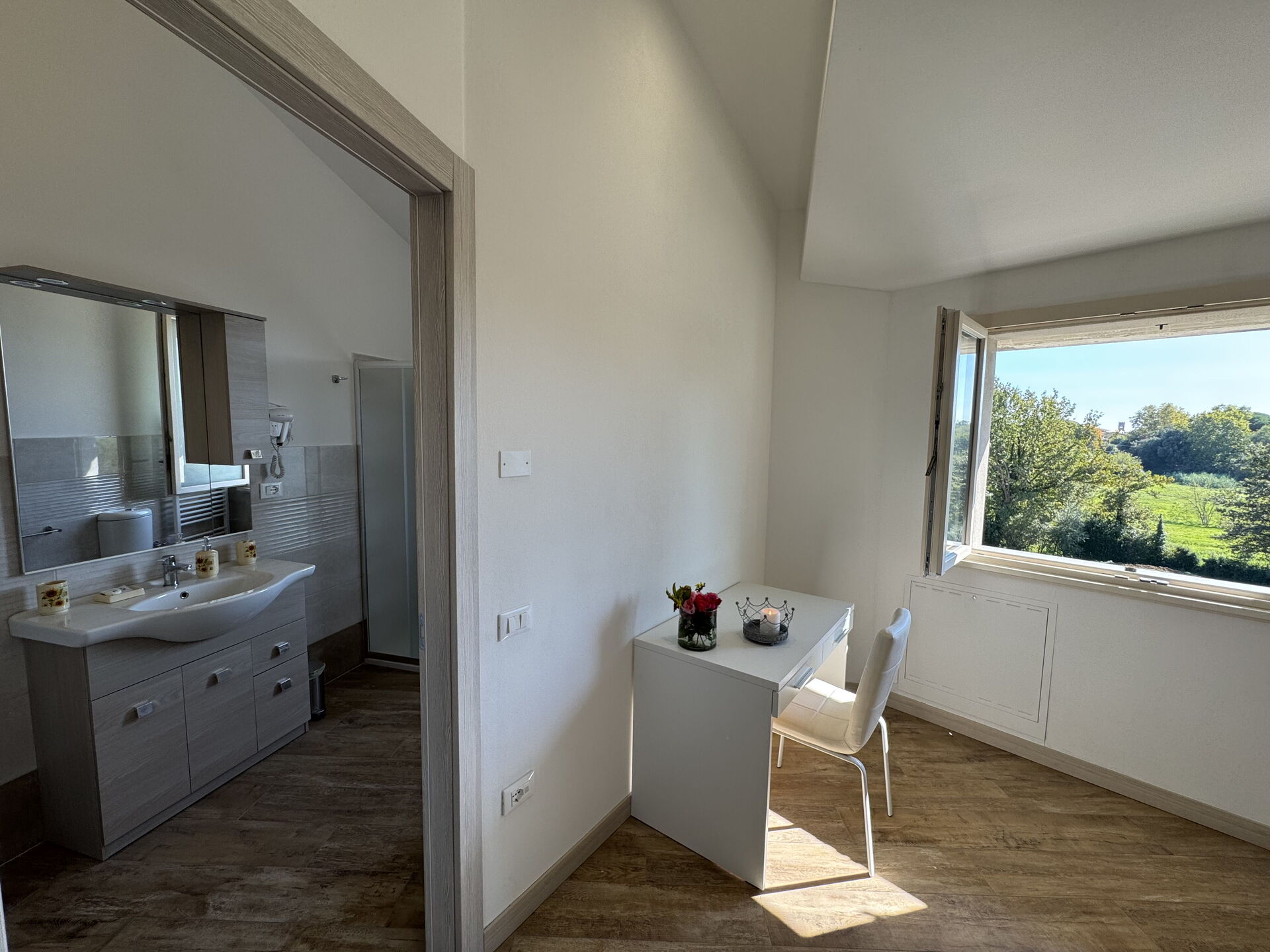 After arriving you will be welcomed by the owner or manager where you’ll find a nice clean well-maintained property with views of the hills perfect for a relaxing vacation in Tuscany. For your enjoyment you will find a private pool where you can relax while enjoying a nice cold beverage after a hectic day of shopping. Dining with friends and family is a huge part of the Tuscan culture. Take advantage of the kitchen to prepare meals using local produce while on your holiday. The kitchen includes coffee machine, toaster, stove and refrigerator, as well as, plenty of tableware and cutlery for up to 12 people.