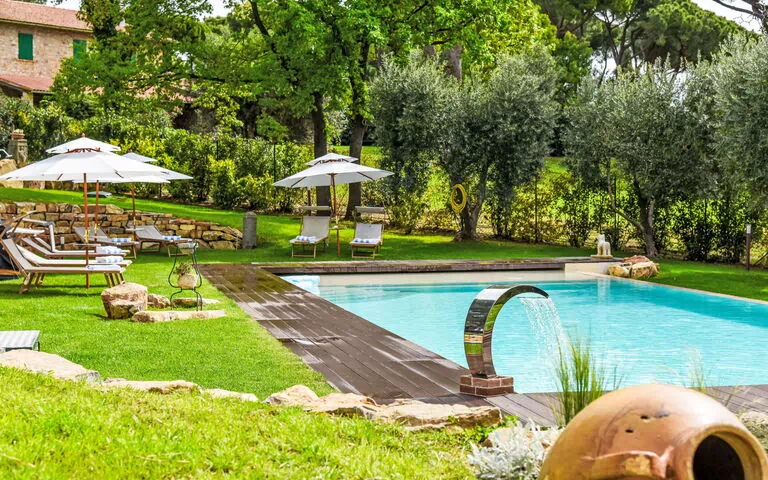 Villa Caduceo is a beautiful and comfortable holiday rental located in Magliano In Toscana, Italy, recently renovated in 2024 and surrounded by trees and meadows. This stunning property is situated 3.5 km from the centre of Magliano in Toscana in a quiet position, 19 km from the sea and beach, nestled in the picturesque countryside. The villa features a private beautiful, well-kept garden that is fenced for your privacy and includes a seasonal swimming pool measuring 16 x 6 m with depths ranging from 30 to 150 cm, available from 01.Apr. to 30.Oct., complete with an internal staircase. The outdoor amenities include an outdoor shower, terrace with garden furniture, barbecue facilities, and a children's playground, with pool maintenance provided by the owner and gardener. The property offers modern conveniences including Internet WiFi connectivity throughout the residence. A spacious yard surrounds the villa, providing ample space for relaxation and outdoor activities. Parking is conveniently available at the house under a roofed area, and an EV Charging Station is provided for electric vehicle owners. Inside the house, you will find a fitness room and washing machine for your convenience. Please note that motor access to the property is via a 700 m unmade road, and a car is recommended for your stay.