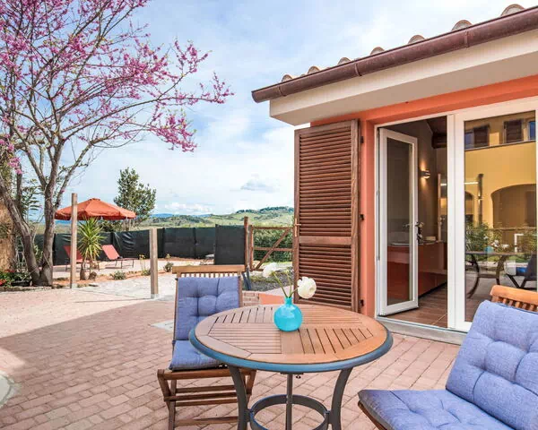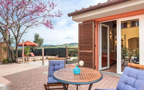 La Melatina Country is a modern single-family house built in 2024, featuring two storeys of contemporary accommodation in Montescudaio, Italy. This holiday rental provides essential amenities including Internet WiFi connectivity to keep you connected throughout your stay, as well as convenient parking facilities on the premises. The property is set within a private fenced area of 500 m2, offering both security and privacy during your visit. Additional services are available, with linen change and towel change offered at a supplemental charge extra. The house is positioned 4.5 km from the centre of Riparbella and 10 km from the centre of Cecina, providing a peaceful countryside setting while maintaining reasonable access to nearby towns and coastal areas.