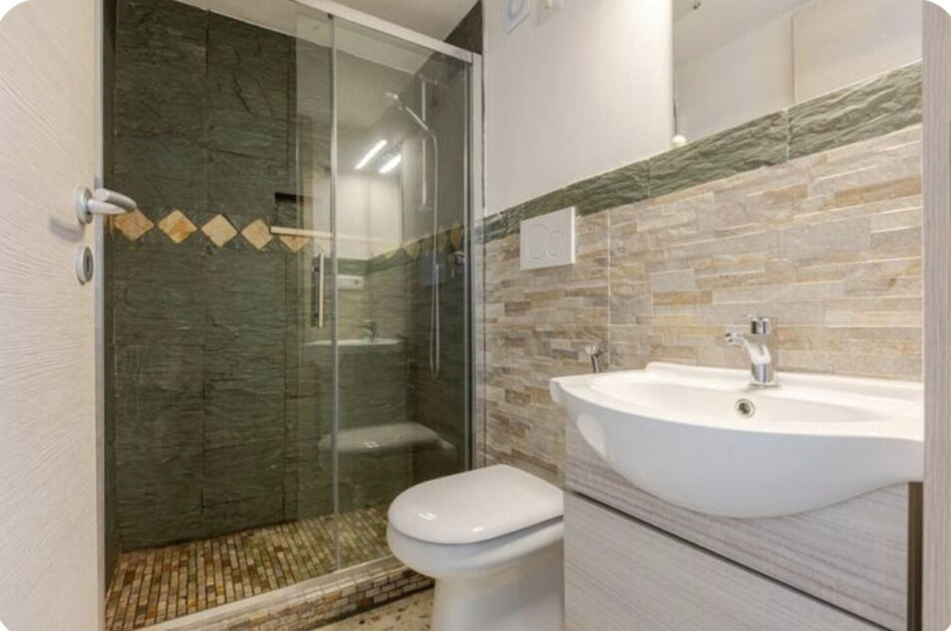 Bathroom: basin, toilet, bidet, shower, hairdryer, washing machine.