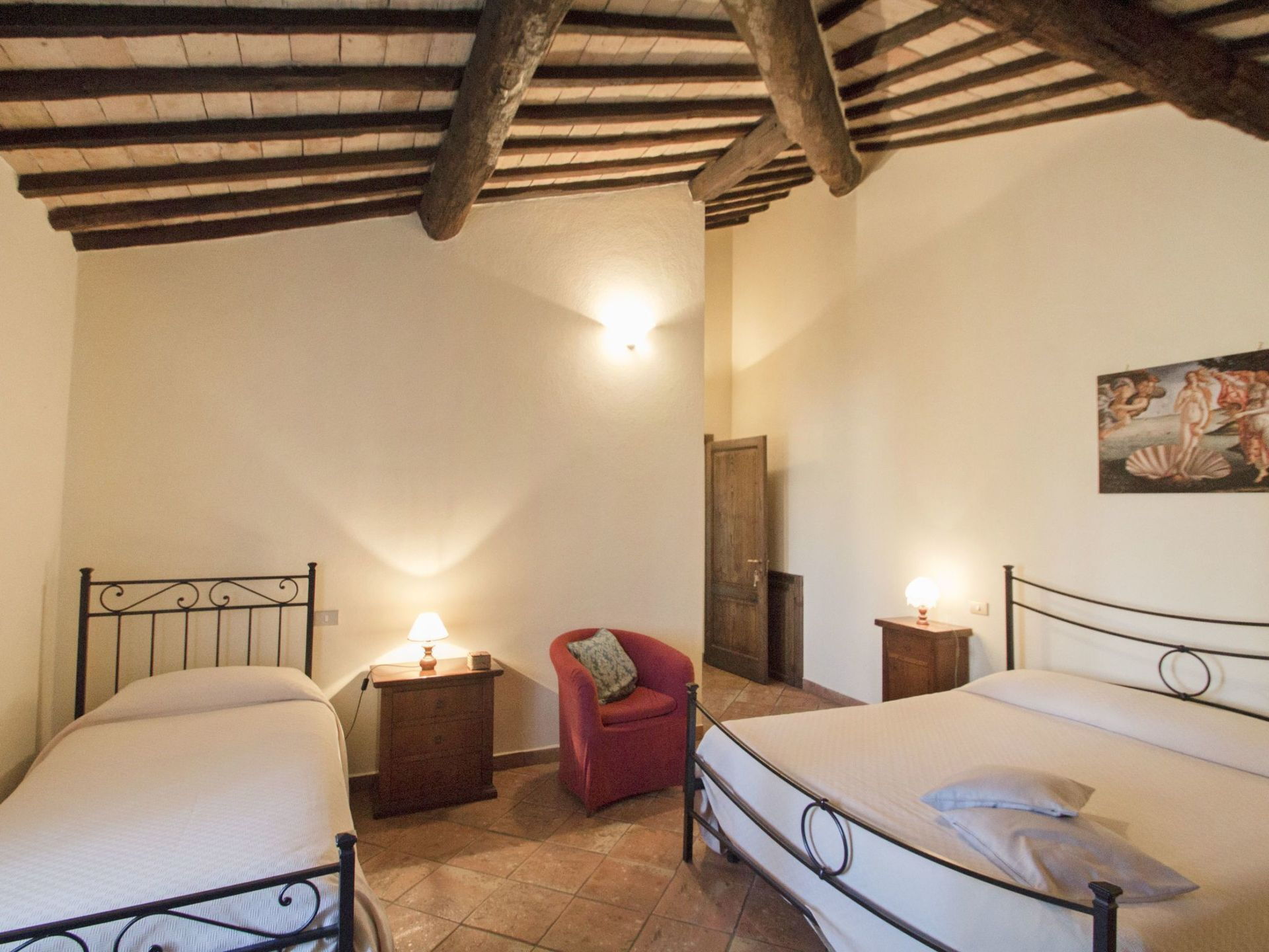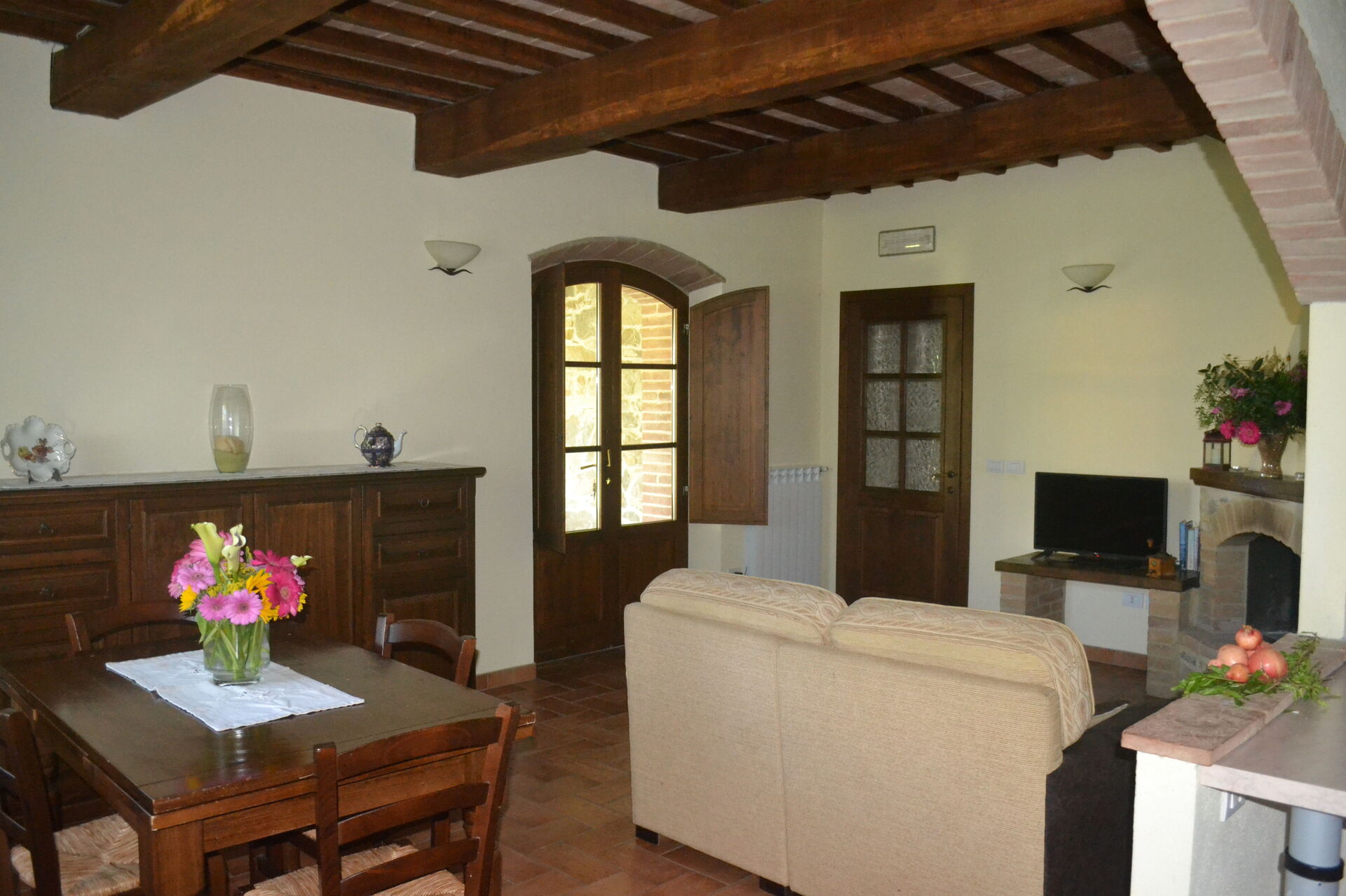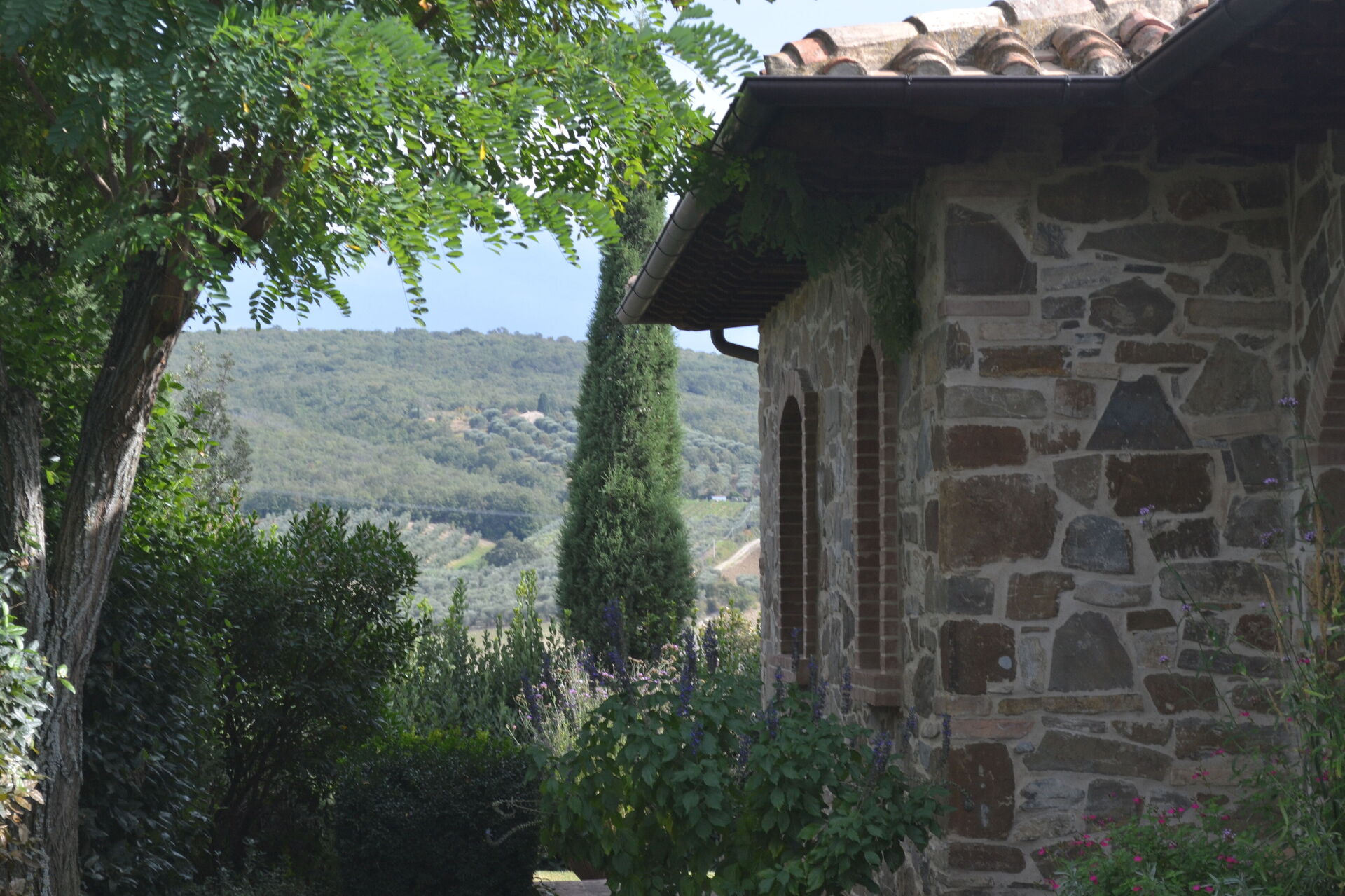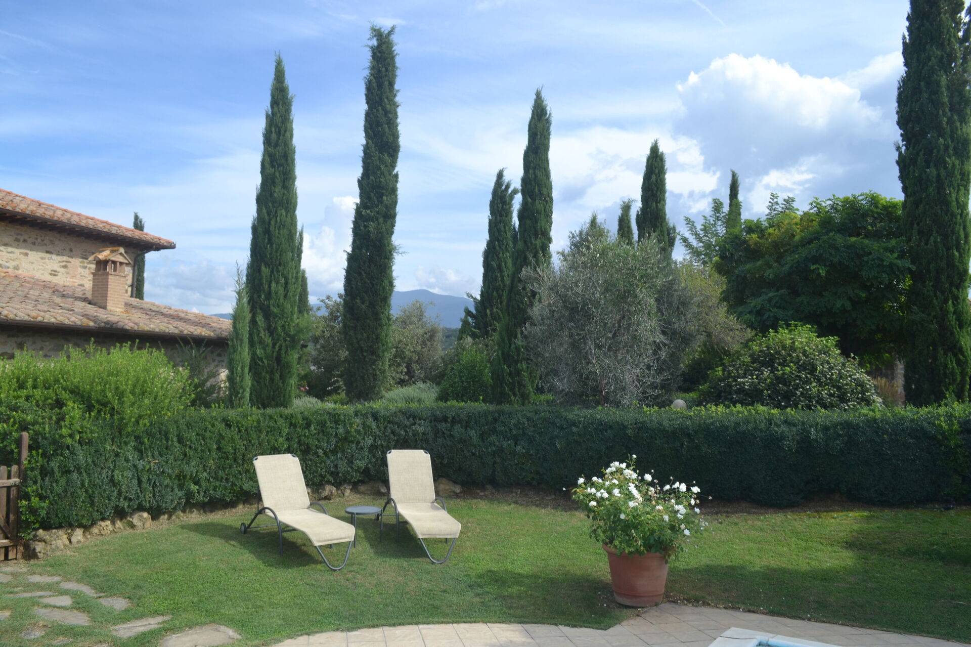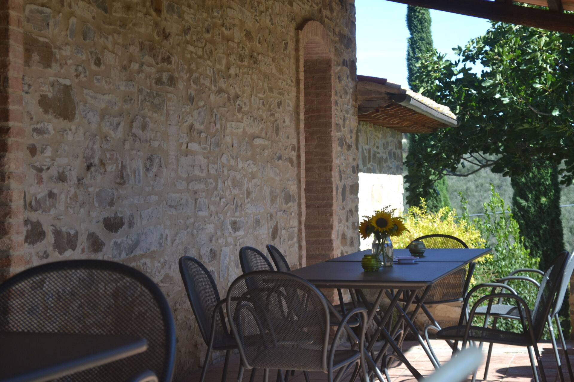 It is part of a large, 77-hectare farm with vineyards, olive groves, and fields of grain, which produces excellent wine and extra virgin olive oil that can be purchased on site. The owners also raise Chianina cattle.