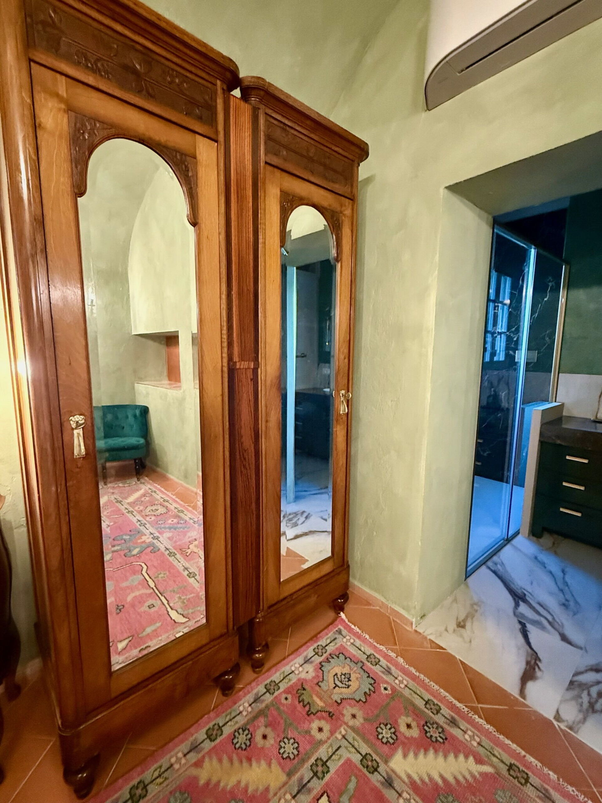 Bedroom + Ensuite Bathroom 1: double bed, WIFI internet, air conditioning, mosquito net, armchair, double basin, toilet, bidet, shower, hairdryer.