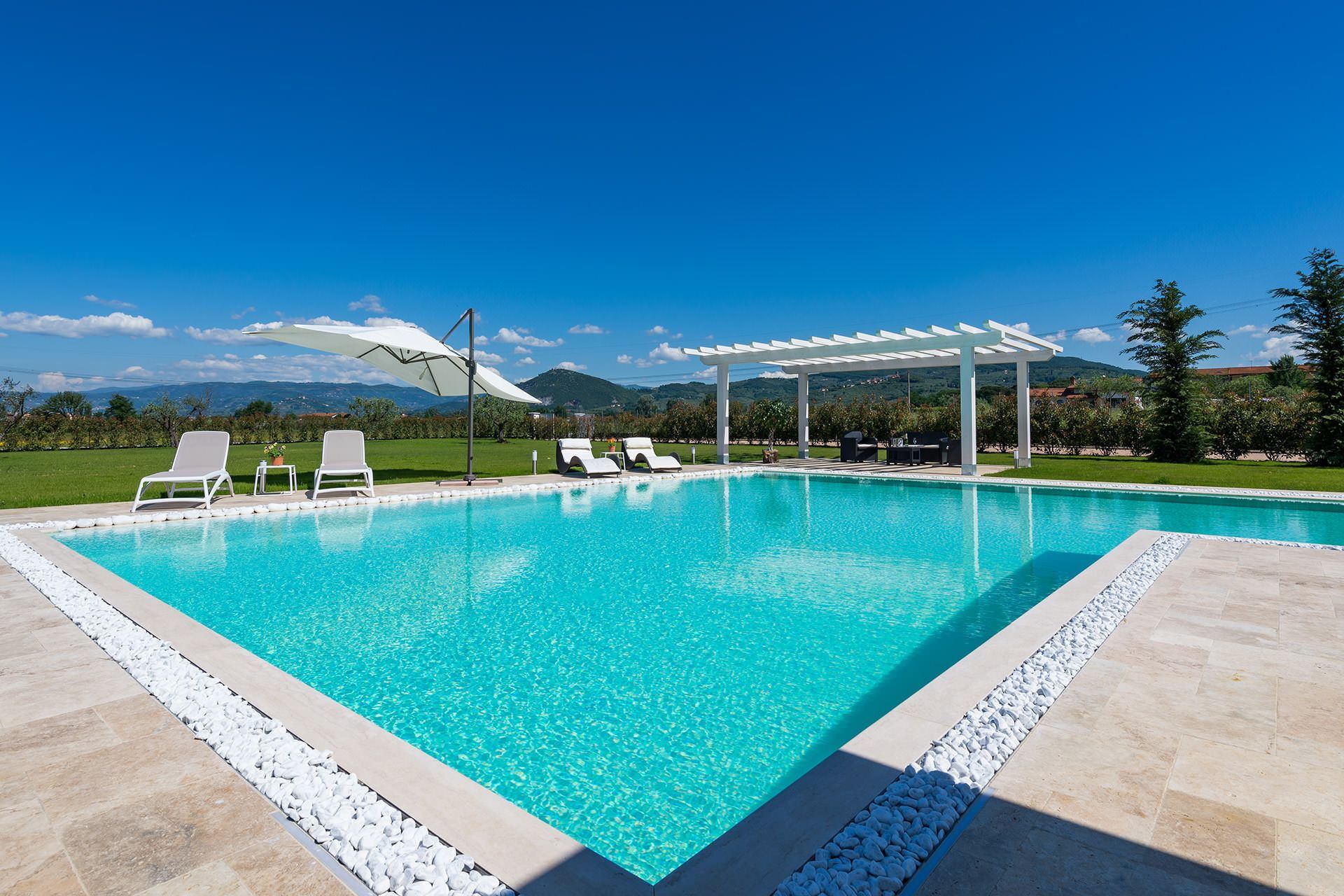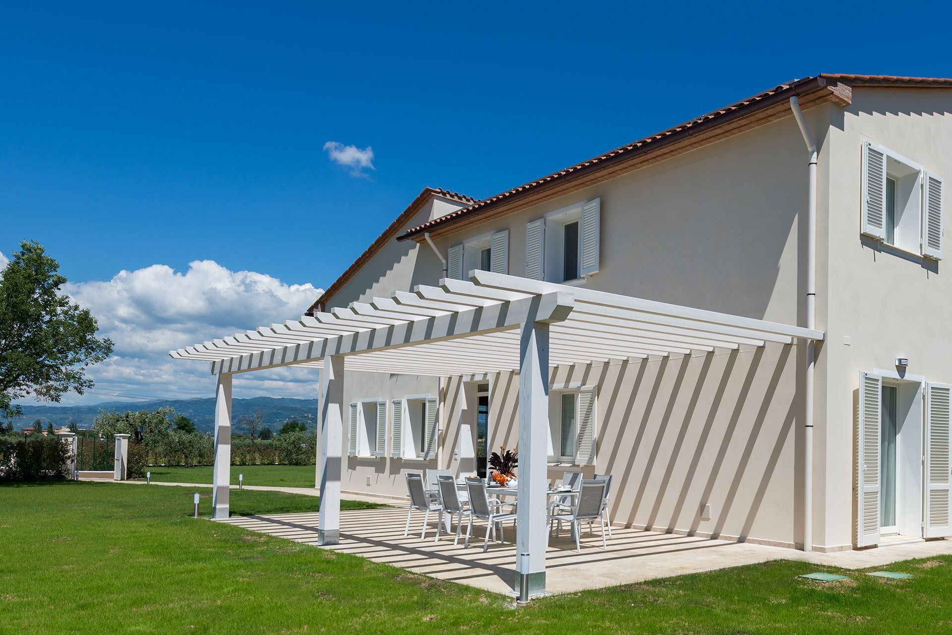 The outdoor areas of this villa are thoughtfully designed to make the most of the stunning Tuscan landscape and the pleasant climate of the region. The private swimming pool serves as the centrepiece of the exterior, offering a refreshing retreat during warm days and an inviting space to unwind in the evenings. The surrounding yard provides a generous and well-maintained setting where guests can enjoy al fresco dining, sunbathing, or simply taking in the natural beauty of the surroundings. The outdoor spaces are well suited for both quiet relaxation and convivial gatherings, ensuring that time spent outside is as enjoyable and memorable as the interior comforts of the villa.