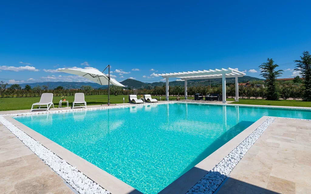 This luxury Tuscan villa rental is subject to a minimum stay of 1 week, with Saturday as the designated changeover day. Check-in is available from 4:00 pm to 7:00 pm, and check-out must be completed before 10:00 am. All guests are kindly required to carry copies of their passports upon arrival. A refundable security deposit of 700.00 euro is to be paid in cash on arrival and will be returned upon departure, less any charges for damages or unpaid fees. The CIN registration code for this property is IT047009B4CETSB6MO. The rental price includes a welcome basket with Prosecco, snacks, and drinks, as well as bed linen, bath towels, pool towels, cleaning of the outdoor pool, and the provision of cots and highchairs. Use of the SPA is available at an additional cost of 35.00 euro per hour. Electricity up to 400 kw is included in the rental price; any consumption beyond this threshold is charged at 0.60 euro per kw. A final cleaning fee of 200.00 euro is not included in the rental price. A tourist tax of 0.70 euro per person per night applies, up to a maximum of 7 nights; children up to 12 years of age and people with disabilities accompanied by an assistant are exempt from this tax. Pets are accepted upon request at no extra cost. The villa is ideally situated within easy reach of several notable destinations, including Monsummano at 2 km, Montecatini at 6 km, Pisa at 20 km, Lucca at 35 km, Florence at 50 km, and Viareggio at 55 km. Sports enthusiasts will appreciate the proximity of the 18-hole golf course "La Pievaccia" located just 2 km away, as well as a nearby tennis club.