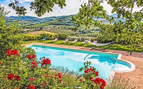"Agriturismo Belvedere delle Crete" is an 11-room vacation rental spanning 290 m2 across 2 levels, designed to accommodate up to 16 guests and featuring 8 bedrooms and 8 bathrooms throughout its thoughtfully arranged spaces. The property is furnished with antique and tasteful pieces that lend each room a distinctive character and refined atmosphere.