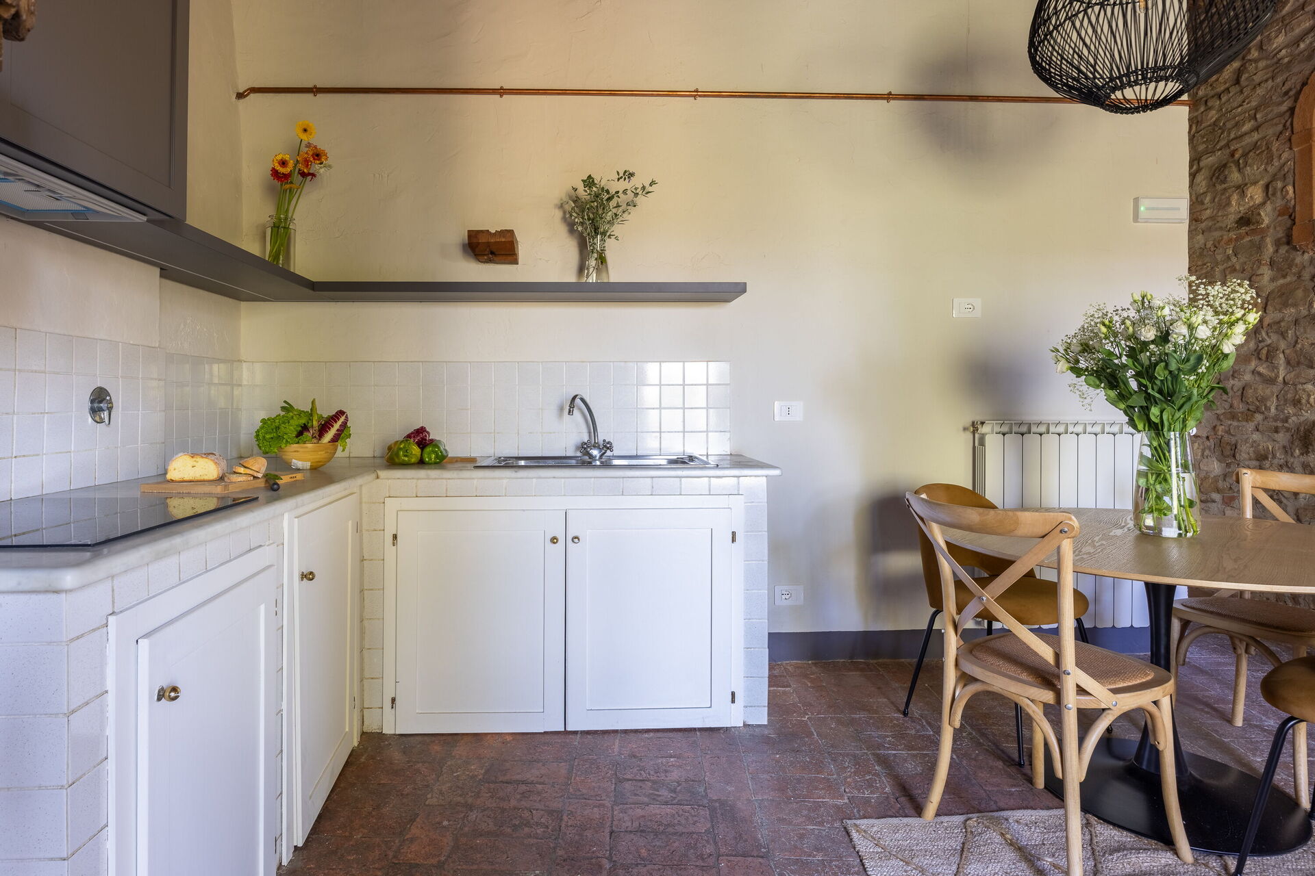 Dining with friends and family is a huge part of the Tuscan culture. Take advantage of the kitchen to prepare meals using local produce while on your vacation. The kitchen includes coffee machine, stove and refrigerator, as well as, plenty of tableware and cutlery for up to six guests.