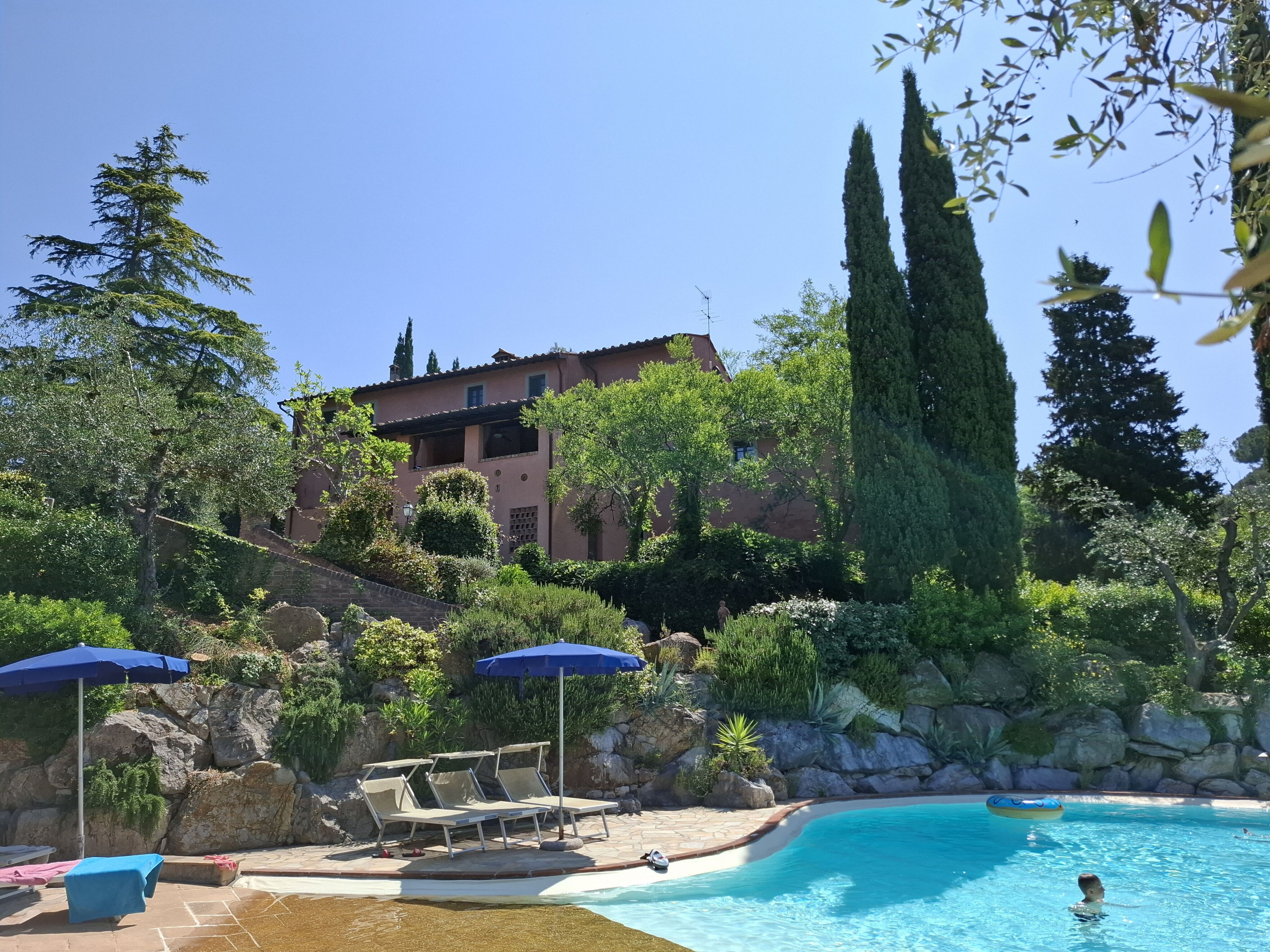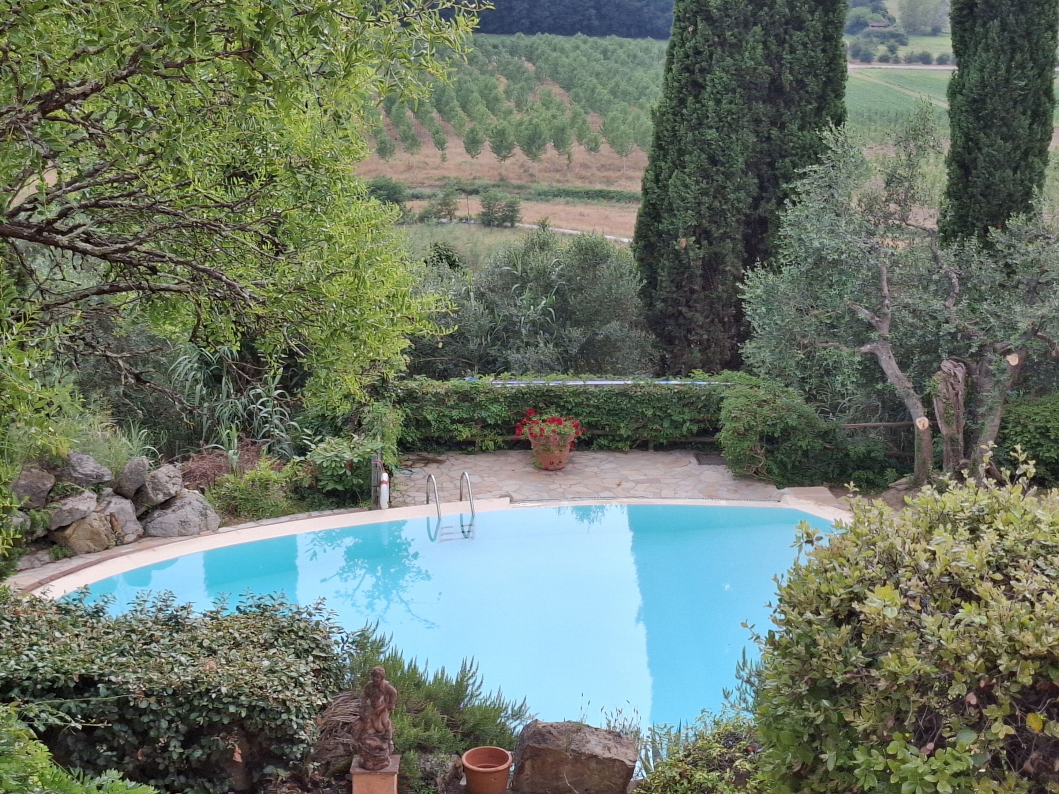 Upon arrival you’ll find a nice clean well-maintained property with views of the hills ideal for a peaceful vacation in Tuscany. For your pleasure you will find a private pool where you can unwind while enjoying a nice cold beverage after a hectic day of visiting museums. If you enjoy cooking for family and friends there is a well-equipped kitchen including coffee machine, microwave, toaster, stove and refrigerator, as well as, plenty of tableware and cutlery for up to nine people. If you prefer to dine 'al fresco', there is a fully furnished veranda where you can enjoy the weather while dining outdoors.