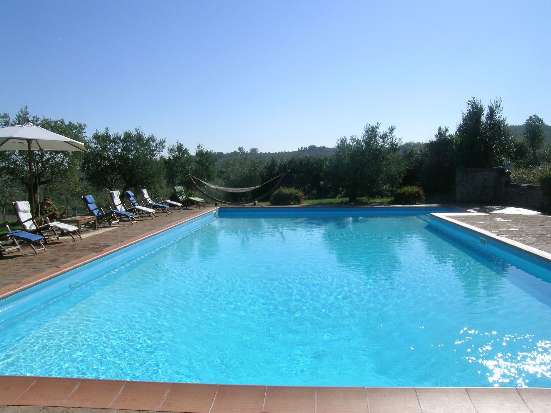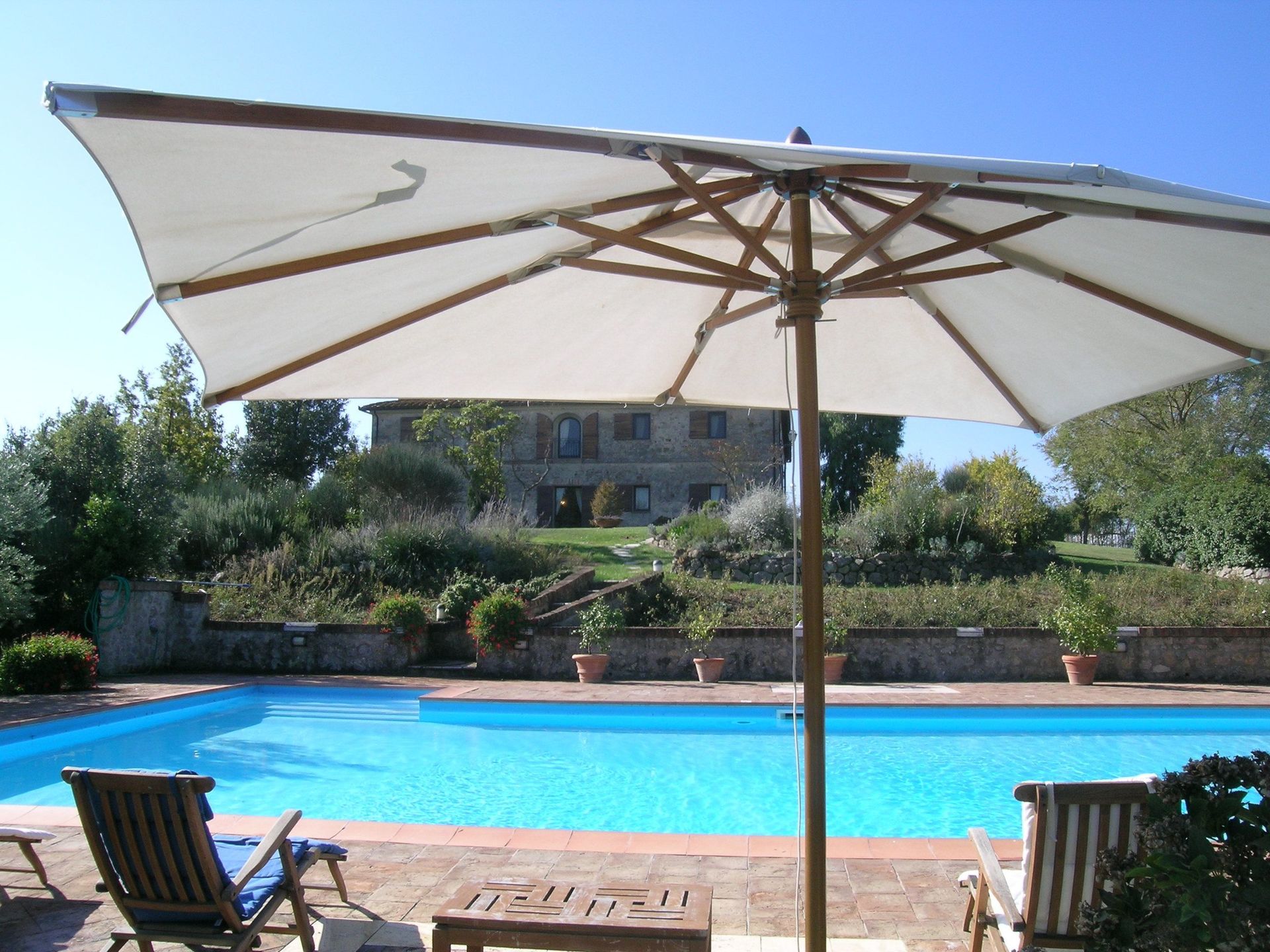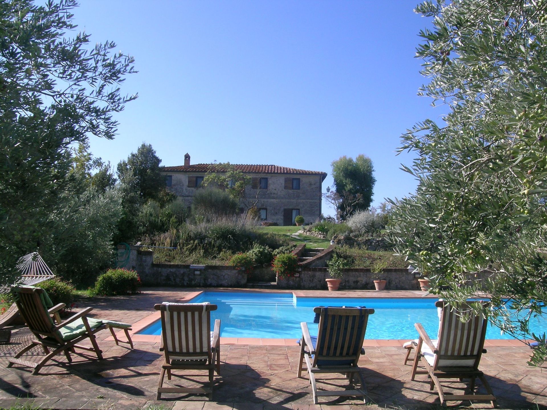Spacious and beautiful farmhouse with outbuilding and private swimming-pool situated in peaceful location on a large estate enjoying extensive views over the “Crete Senesi” area and Siena in the distance.
