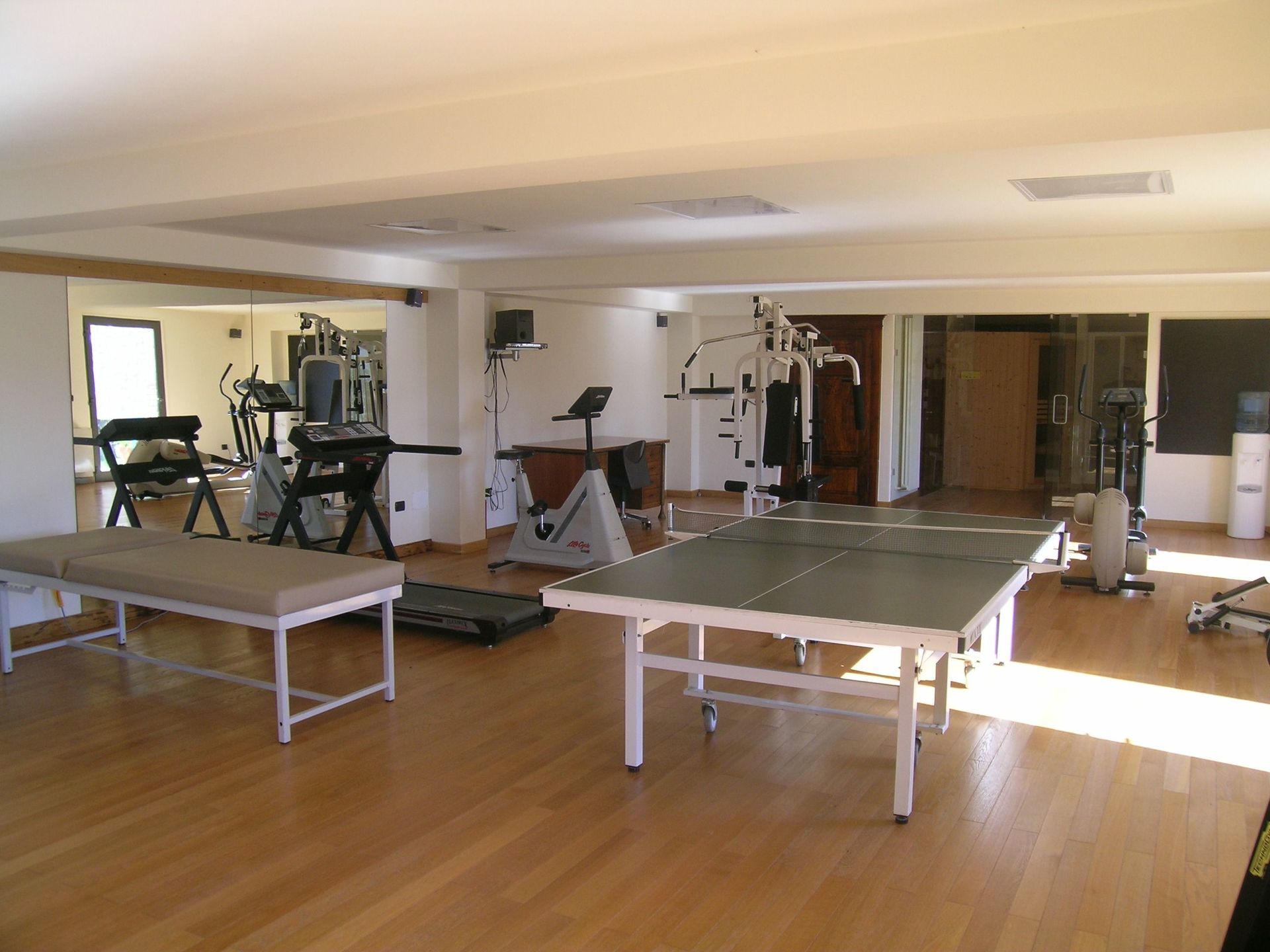 A tennis court is 200 meters from the villa away and the outbuilding offers a nice and well-stocked gym with shower and sauna.