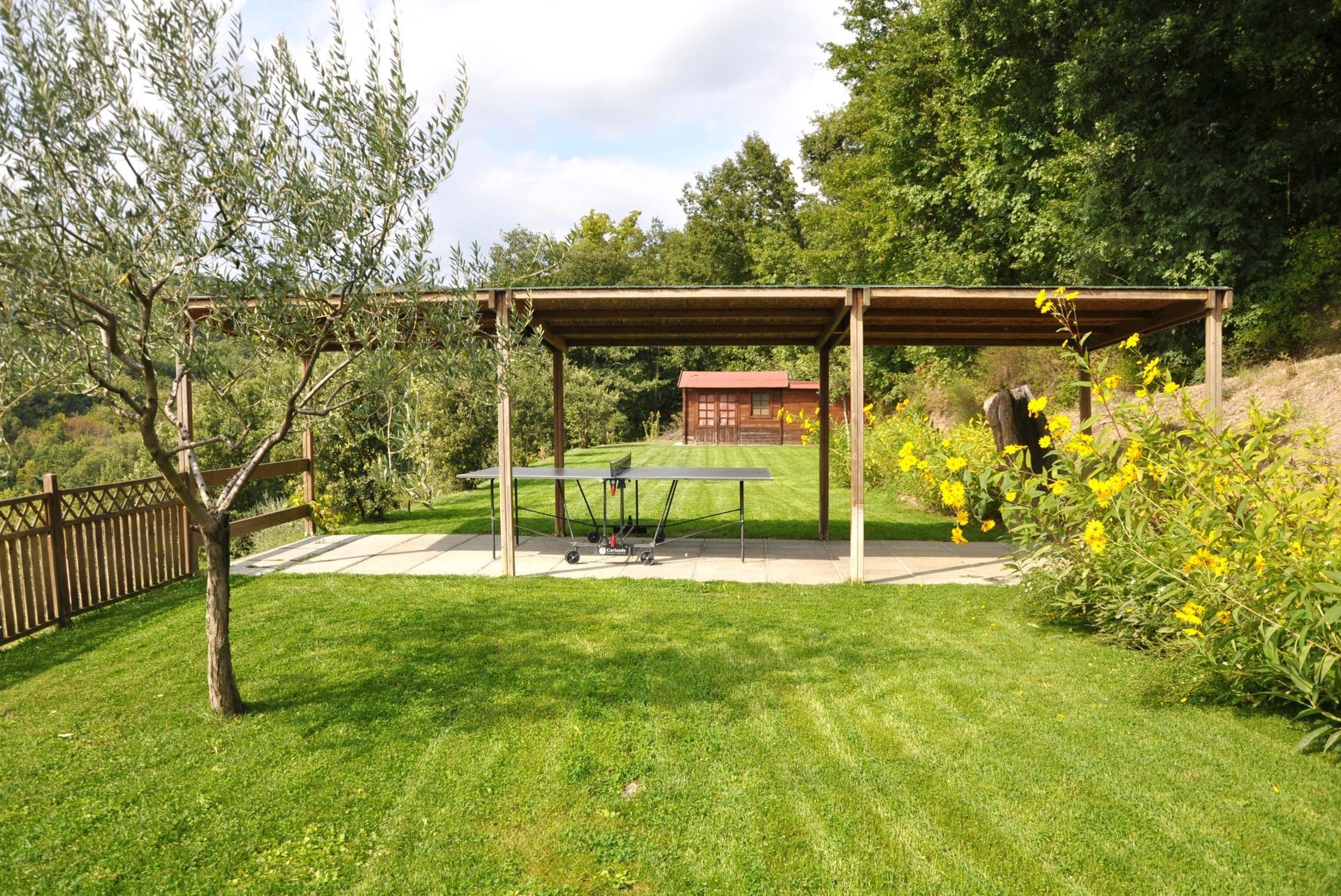 Wooden gazebo near the pool. In the garden there is another gazebo and a large veranda for your summer lunches and dinners.