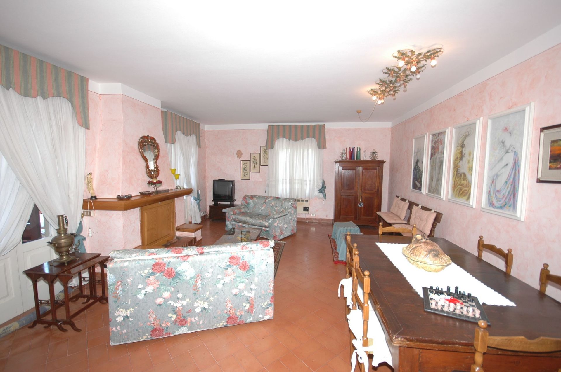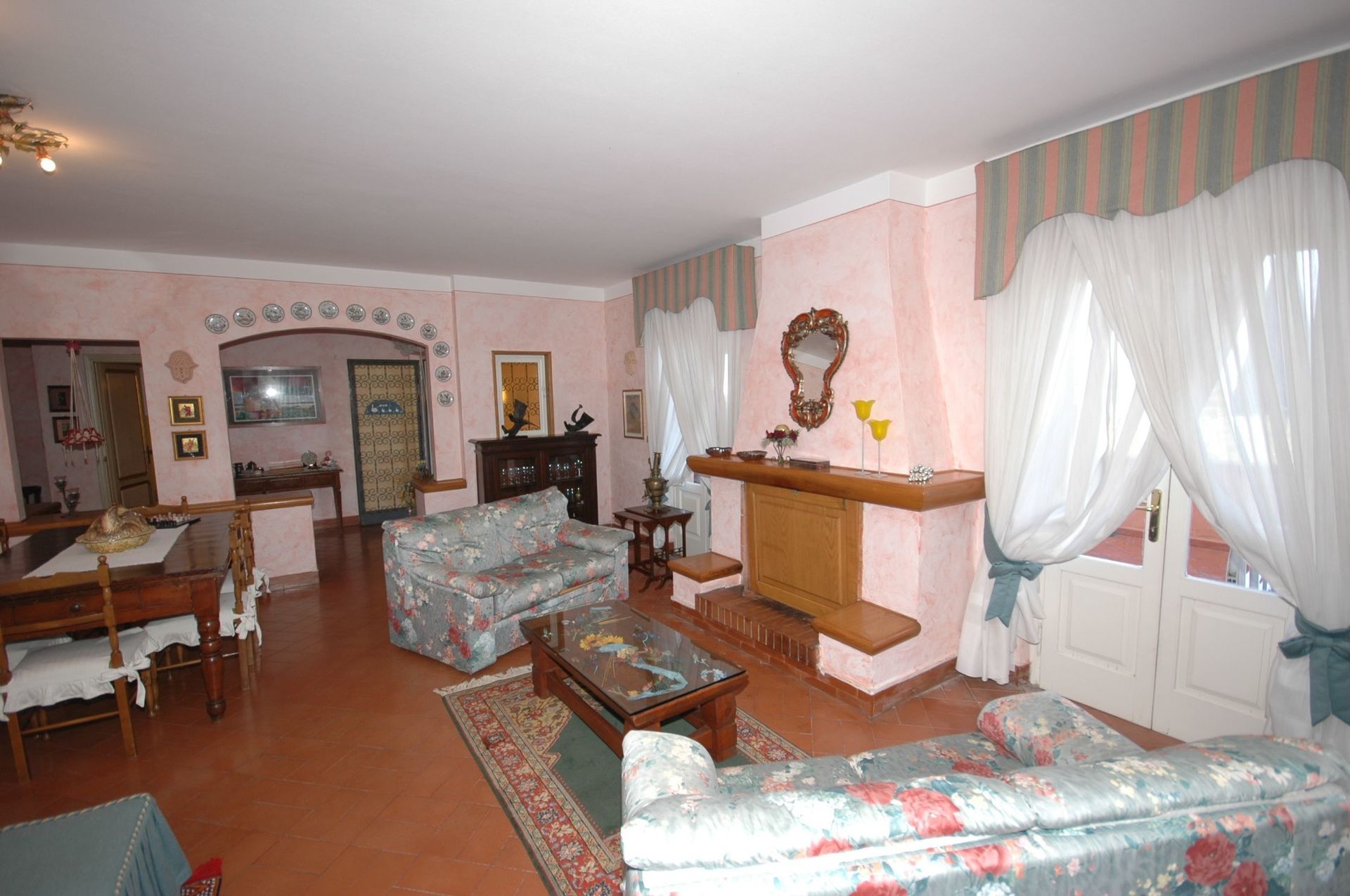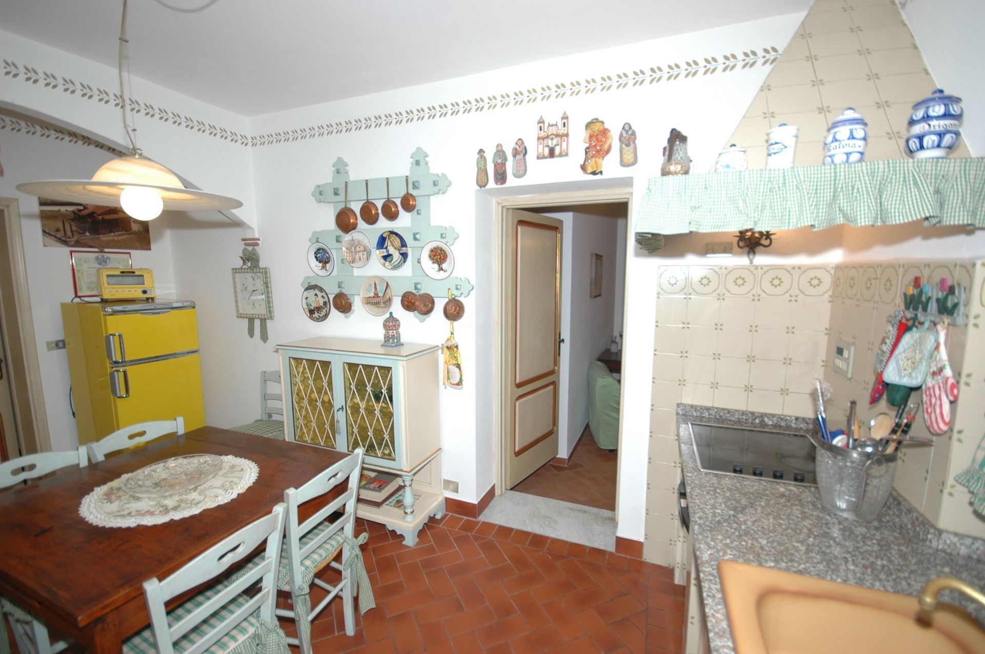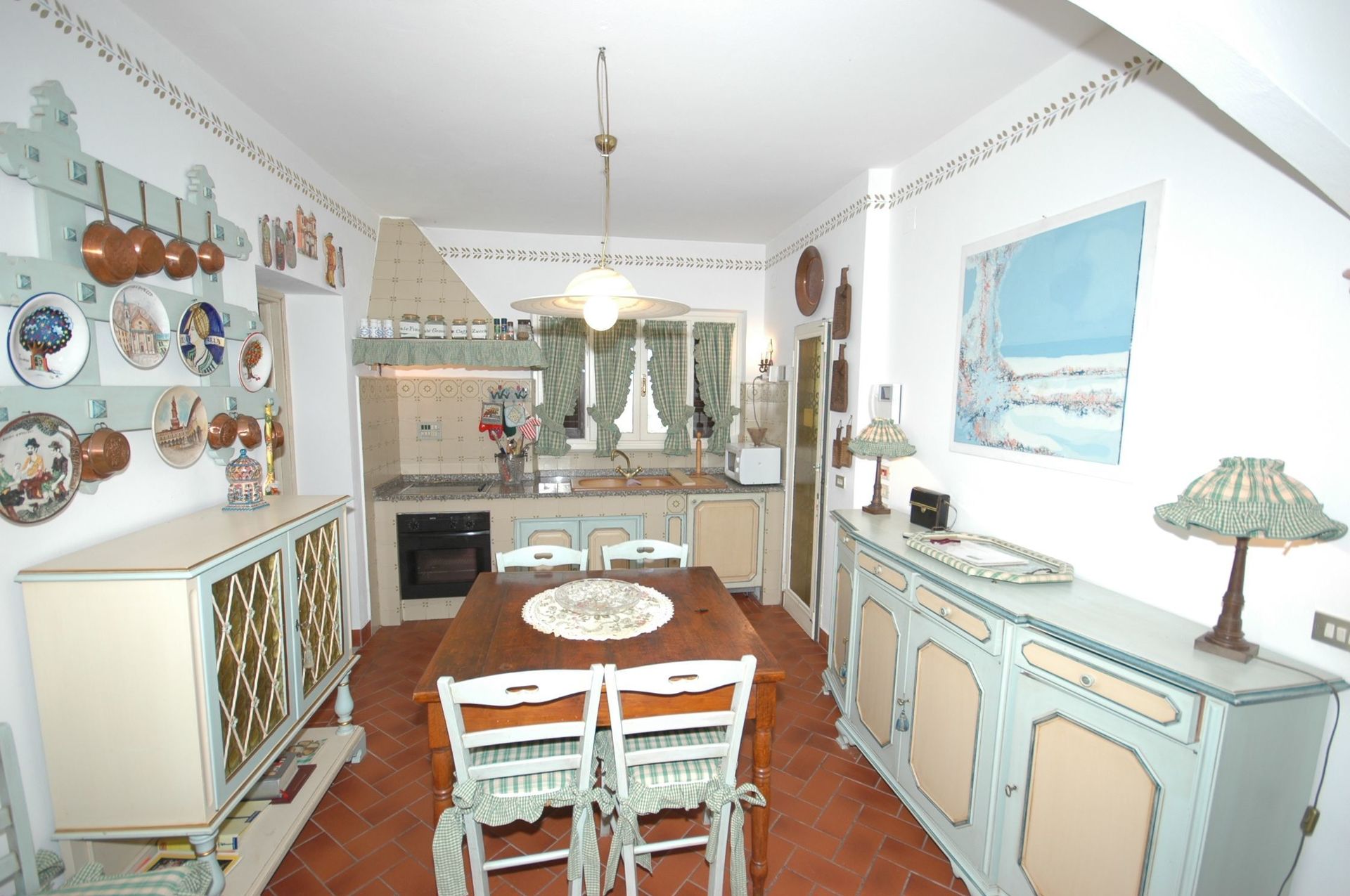 1st floor: entrance on to a large living-room (TV) with dining table, fireplace and access on to a 30-square-meter terrace providing table, chairs and sun-beds, small sitting-room with double sofa-bed, kitchen (oven, small microwaves, freezer, dishwasher) with dining table (for 4 persons) and access on to the outside, double bedroom, twin-bedded room, small storeroom, bathroom with bathtub and shower.