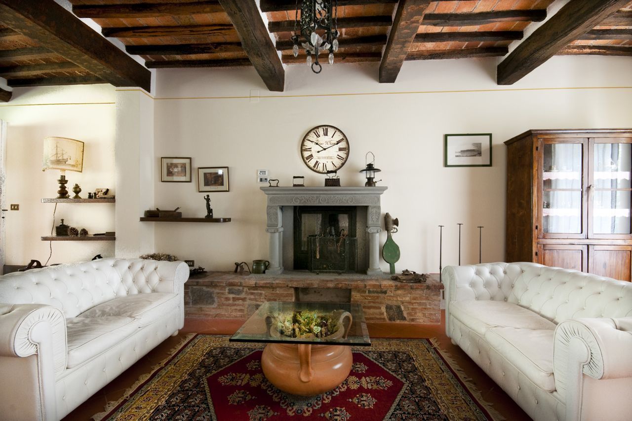 ACCOMODATION: The villa is organized over two floors. On the ground floor is a large lounge with fireplace, beamed ceiling, a WC with washbasin, a large TV room and a bedroom with en-suite bathroom with access to a pretty patio for relaxing al frescoe.