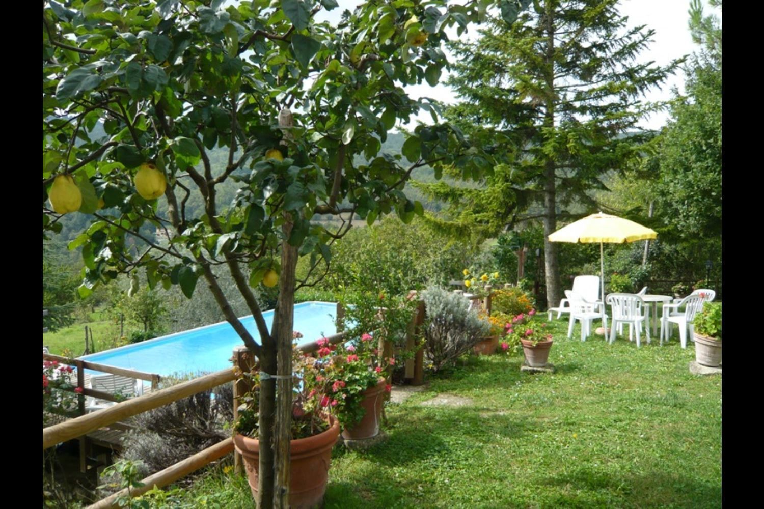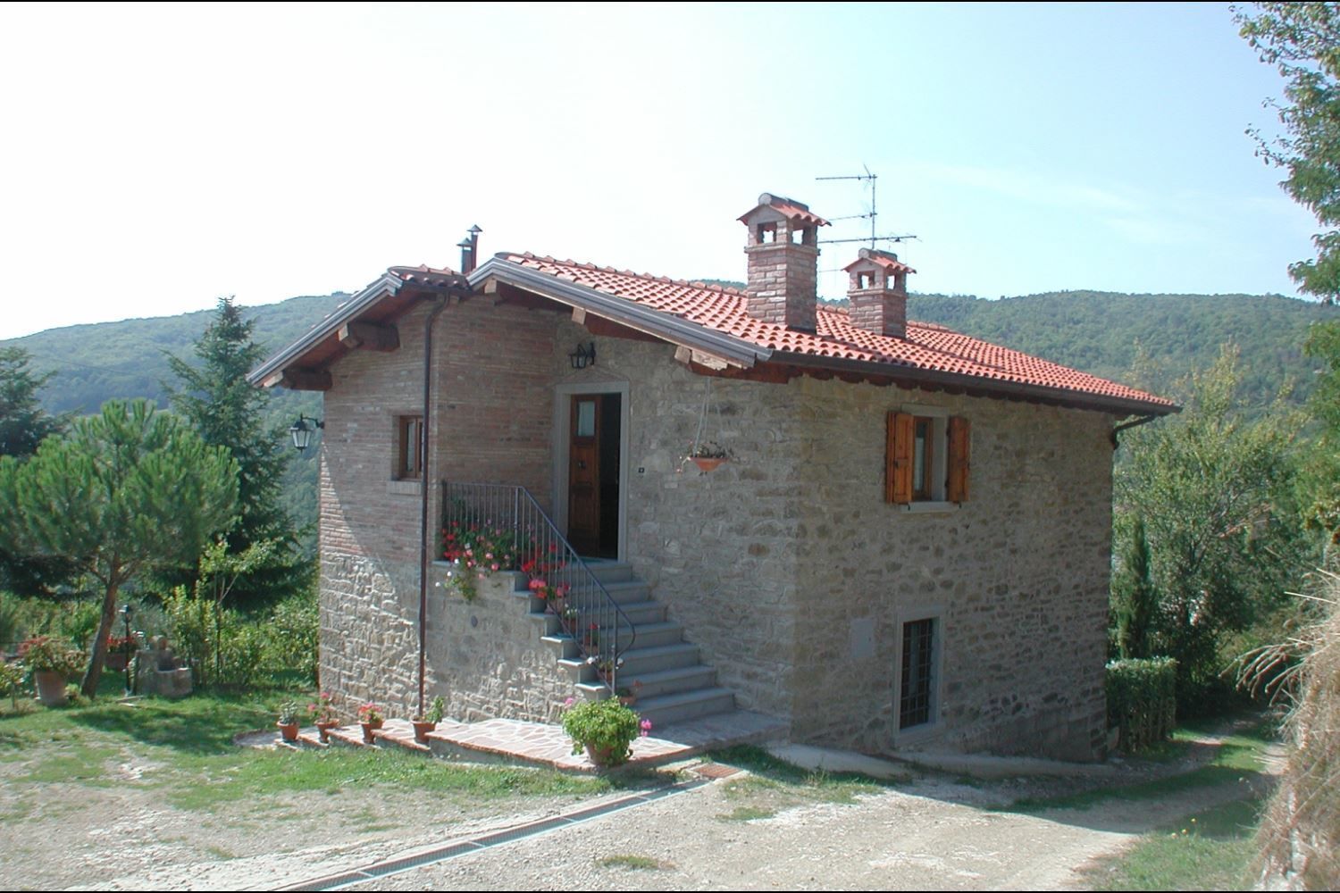 Beside an attractive 15th century mansion, presently occupied by the owners, is Casa Stoppa, a pretty, stone house which was originally the stables for horses and carts. Careful and clever restoration work, directly supervised by the owner has divided the old building into two comfortable apartments. The house is at 650 meters above sea level in a panoramic position with a beautiful view over the picturesque Casentino valley and the legendary castle of Poppi. A few minutes' drive away is Pratovecchio, one of the most interesting towns in the valley, the old parish churches of Romena and S.Maria a Poppiena can be visited as can the castles of Romena and Porcino, or you can venture on one of the many nature trips around the National Park of the Casentinesi Forests. The two apartments have a large, well-cared for garden, full of roses and other flowers and equipped with outdoor furniture, as well as a swimming pool of 5x10 meters (depth 1,00 m.) situated in a panoramic position and to be shared occasionally with the owner. The internal fittings of the apartments are of a good standard as is the furniture.