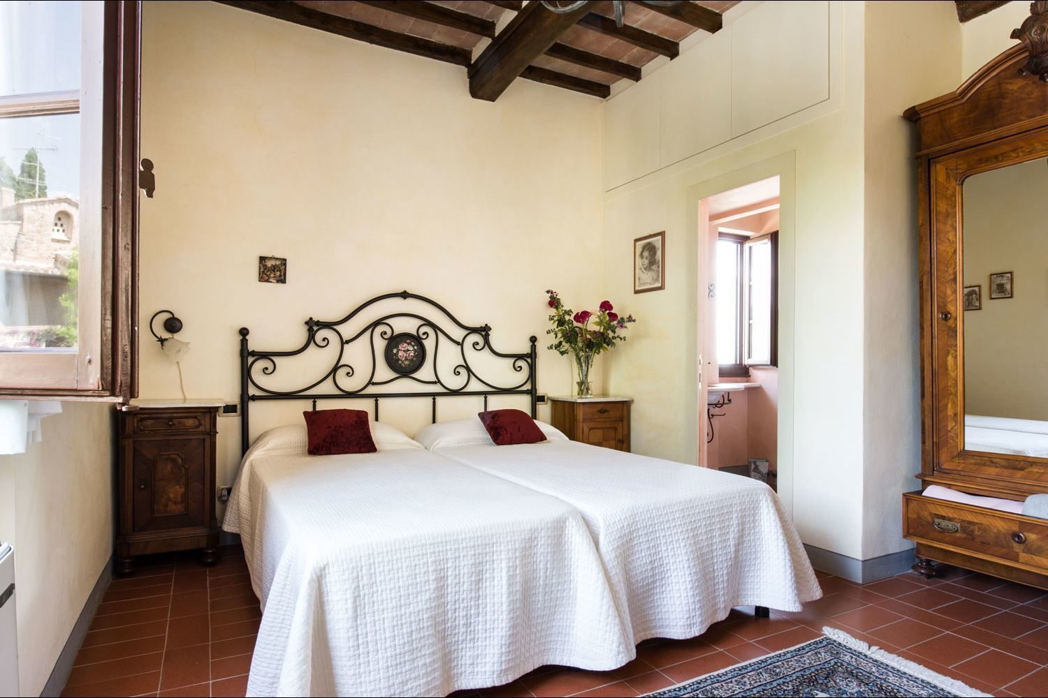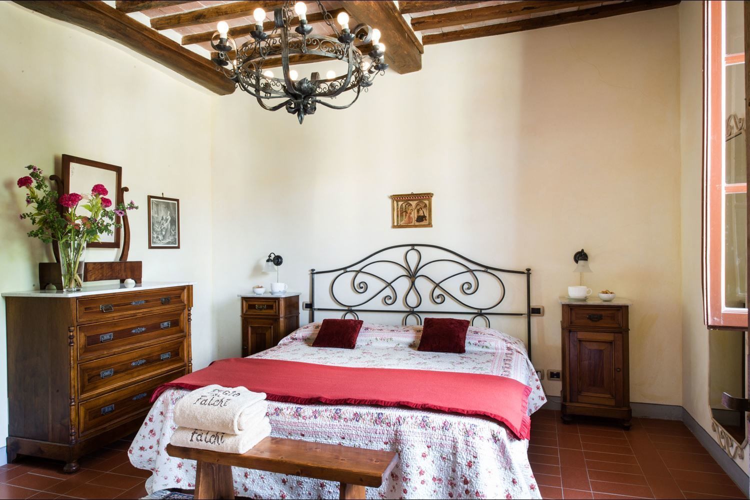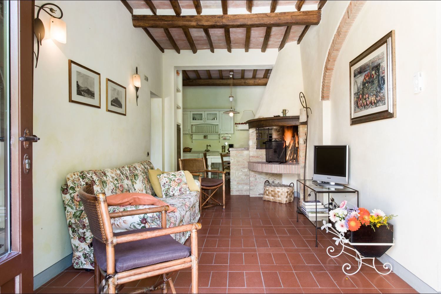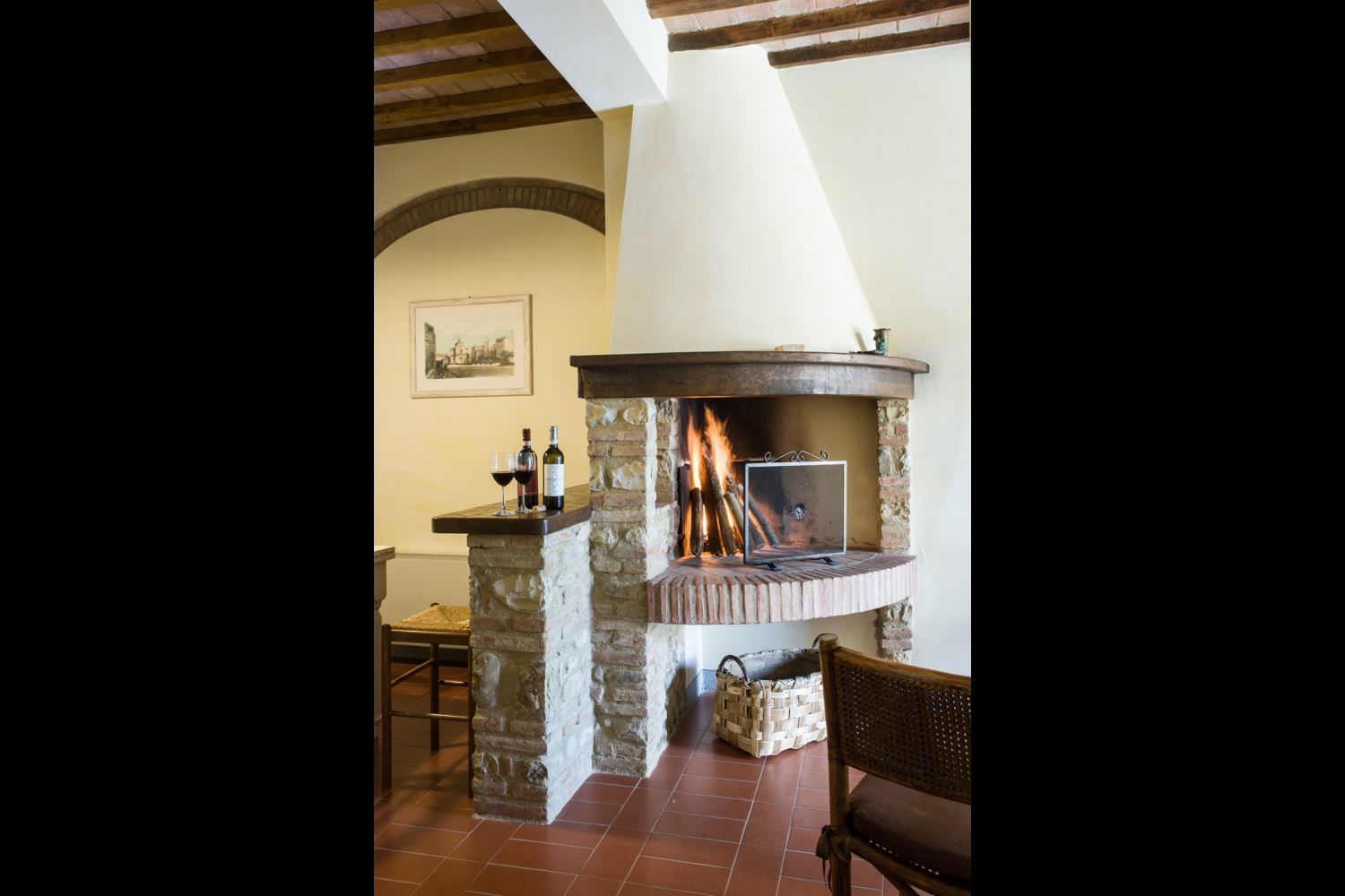 First floor apartment with independent entrance by an external staircase in stone. Composed of living-dining room with kitchenette and fireplace in stone, two double bedroom each with en-suite bathroom with shower. Possibility to add a sofa bed in the largest bedroom. From the windows one can admire a beautiful view of the property and the manor house.