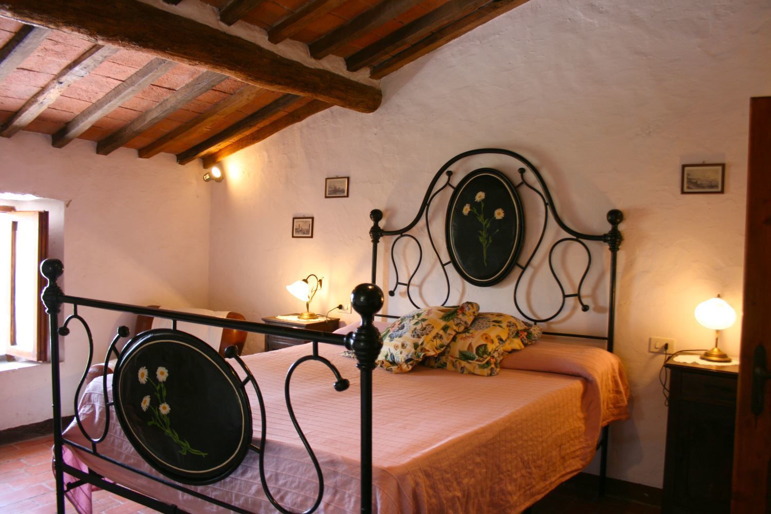 Picture this, if you will: a pretty villa in a small town with the lush greenery of trees and views over the vineyards and rolling hills of the Tuscan countryside all around, a front entrance opening into a little court with flowers and trees, climbing blooms and vines winding up the sunny yellow facade of the villa, green shuttered windows, a romantic balcony on the first floor above the entrance, and a terracotta roof to top it off. This is the dreamy first encounter that guests have when they reach Villa Toppani Del Sodo and this very much sets the appropriate tone for your vacation here.