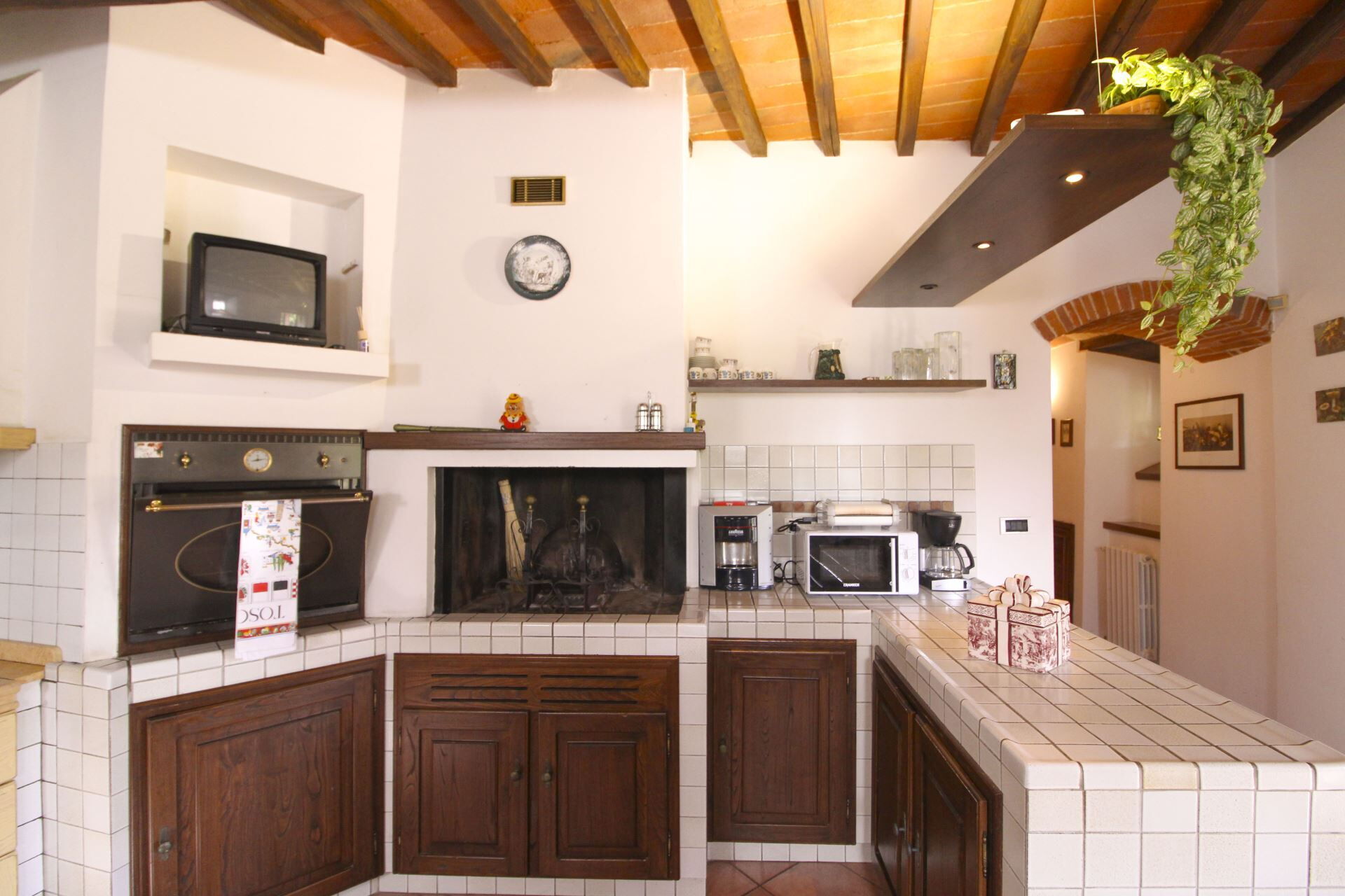 Fridge with freezer compartment, oven, dishwasher, lemon squeezer, filter coffee maker, microwave, toaster, wood burning oven, espresso coffee maker, barbecue
