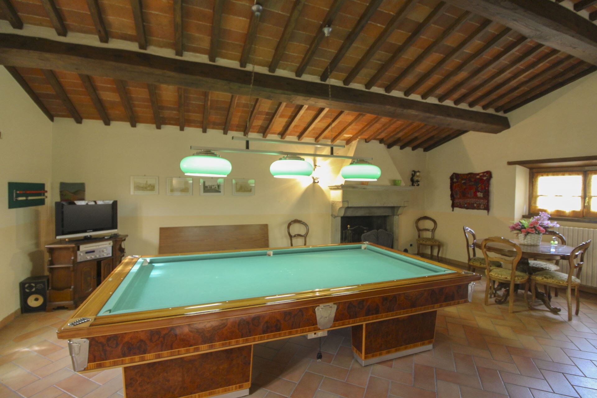 ANNEX: large living room with billiard table and fireplace, bathroom with shower.
