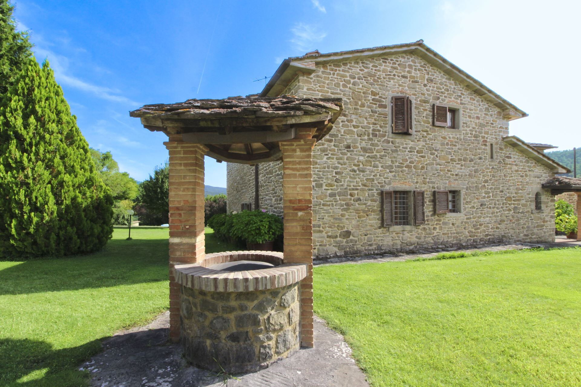 An original stone farmhouse at the gateway to the green Casentino valley and north of the city of Arezzo. The villa Casale Lorenzo with its beautiful fenced park, the large private swimming pool (size 15 x 8 m - depth 1,00 - 2,40 m - open from 01st May to 30th September) with changing room, bathroom with shower and equipped solarium, the relaxing Jacuzzi (Extra payment required) offers wide space for everyone to enjoy an unforgettable holiday with family or friends. You won't be able to give up a dip in the pool, a barbecue on the cool furnished porch or an afternoon in the Jacuzzi with a good glass of wine. Also your small size four-legged friends are welcome here (extra charge could be required).