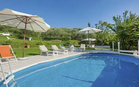 Nestled in Piano del Quercione, just 2 km from the charming town of Massarosa, Italy, "Olivo" offers a rustic and child-friendly holiday rental experience. The recently renovated, three-story detached house boasts a sunny, elevated position in a residential district and is conveniently located just 18 km from Lucca and 22 km from Forte dei Marmi. The property features a 10,000 m2 natural state area with a terraced garden, perfect for exploration. The private garden spans 500 m2 and includes a seasonal swimming pool (7 x 3 m, depth 120 cm) available from May through October, as well as a terrace (50 m2) with garden furniture, ideal for al fresco dining. Inside, you'll find amenities like internet access, central heating, a washing machine, and parking for up to two cars.