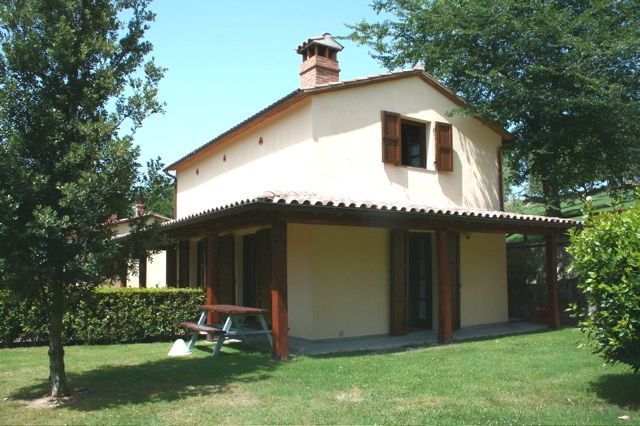 Two-storey detached house with two bathrooms, kitchen, large living room with double sofa bed and fireplace at ground floor; two bedrooms, one double and one twin room at first floor with own large adjacent garden.