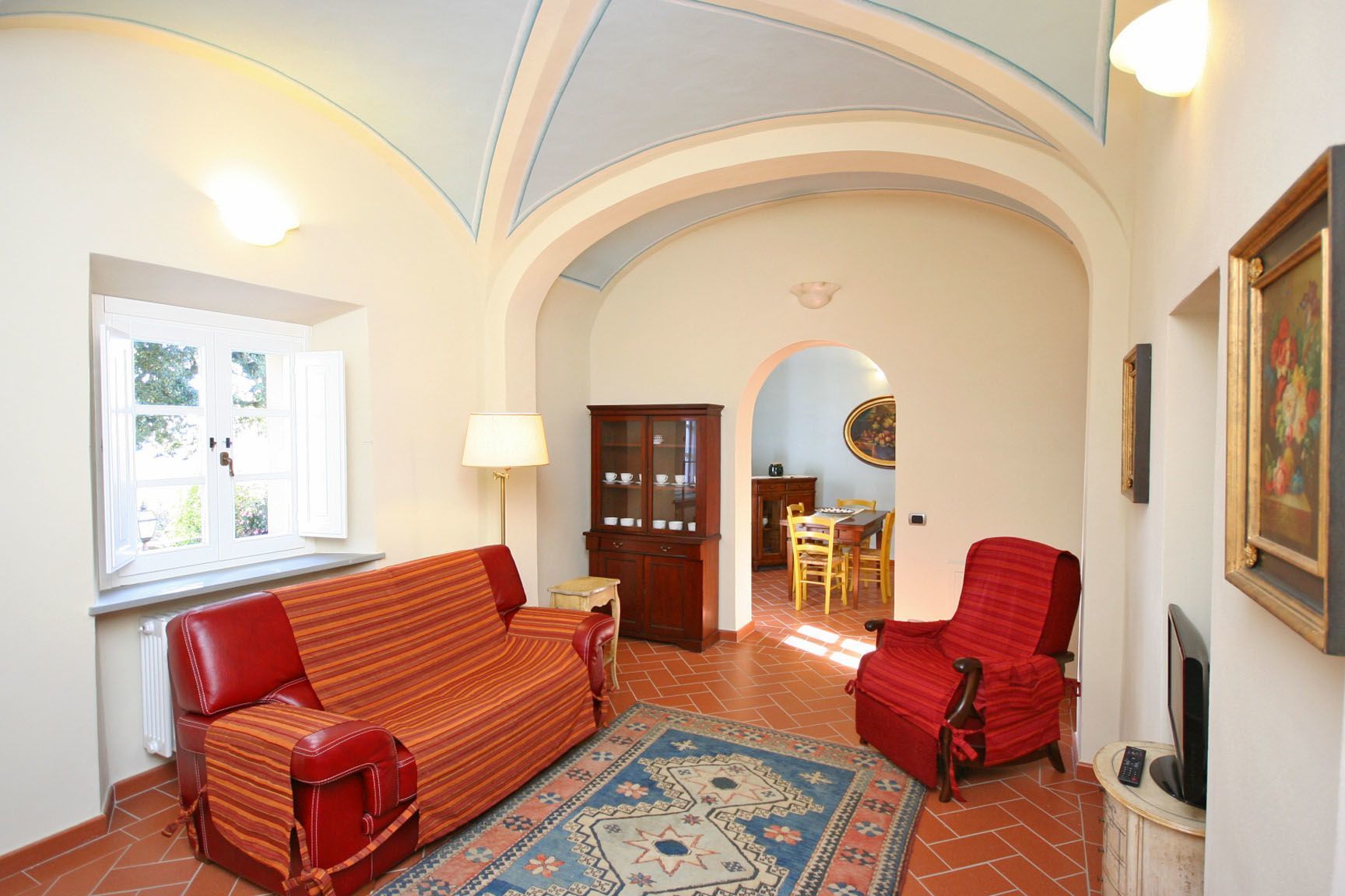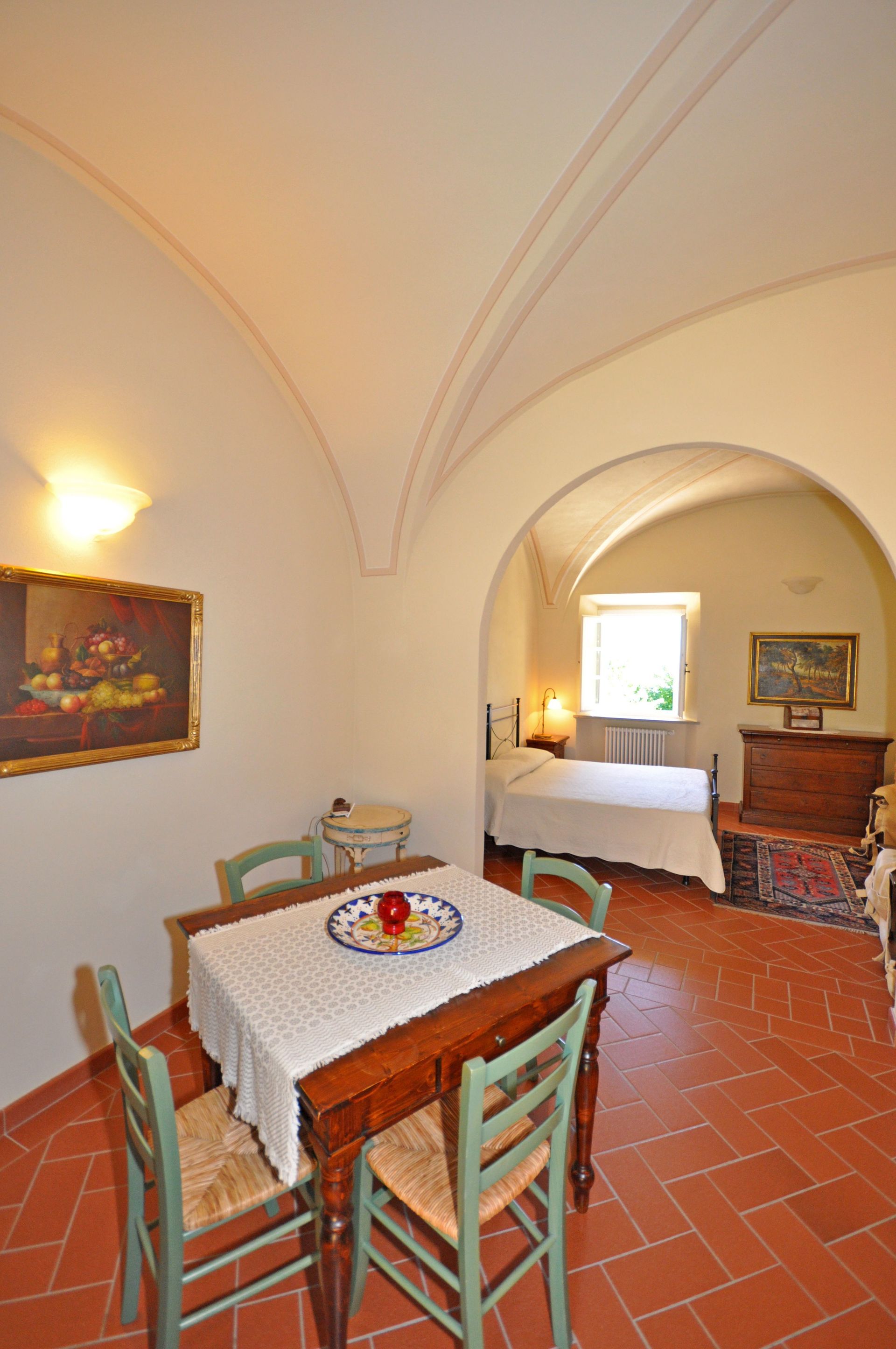 Die Räume des von uns gemieteten Apartments sind geschmackvoll eingerichtet und fast das wichtigste die Betten bieten hohen Schlafkomfort mit sehr guten Matratzen. In diesem für uns fast zu heißen letzten Mai Tagen mit über 30 Grad haben uns die dicken Mauern der Villa vor der Hitze geschützt. Auch das die Villa ca. 590 Meter über den Meeresspiegel liegt hat die Temperaturen erträglicher gestaltet, hier hatten wir ca. 2-3 Grad niedrigere Temperaturen als in Volterra. Frieren muss man nicht weil die Heizung kraftvoll und schnell die Räume wärmt, das konnten wir in den ersten Tagen ausprobieren wo es noch 20 Grad Außentemperatur hatte.