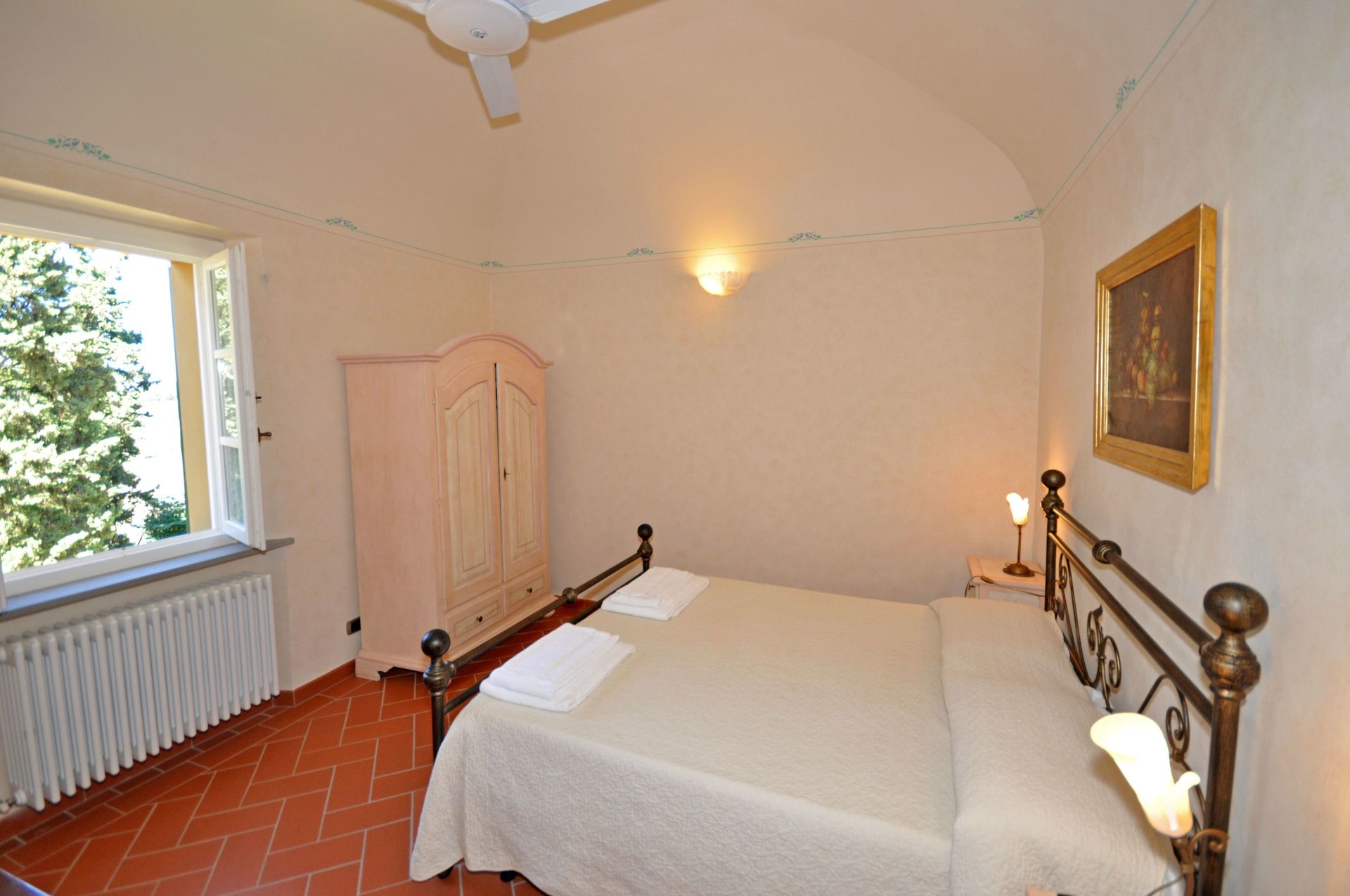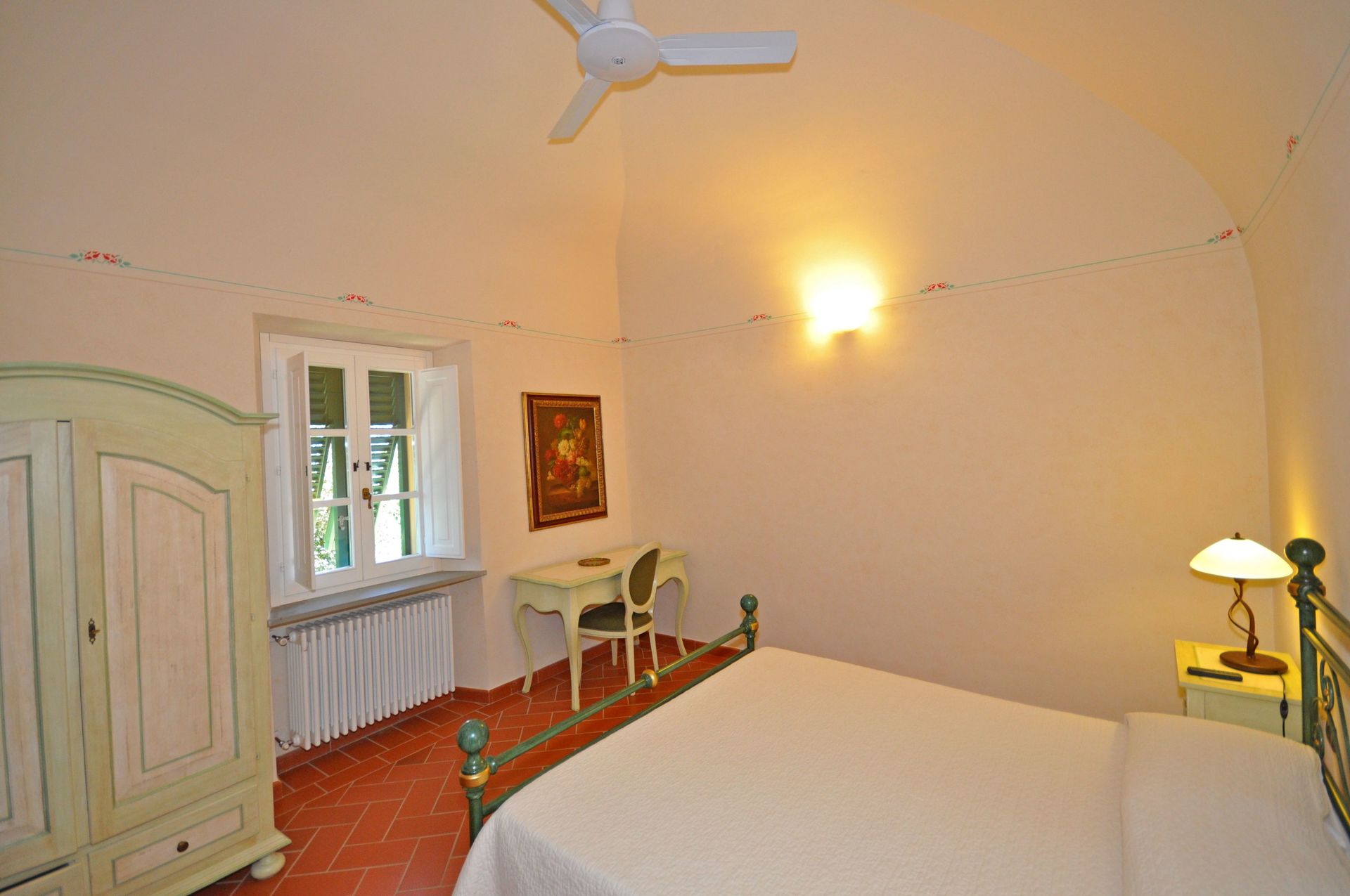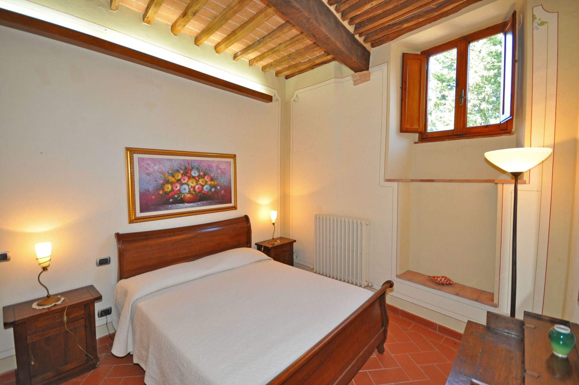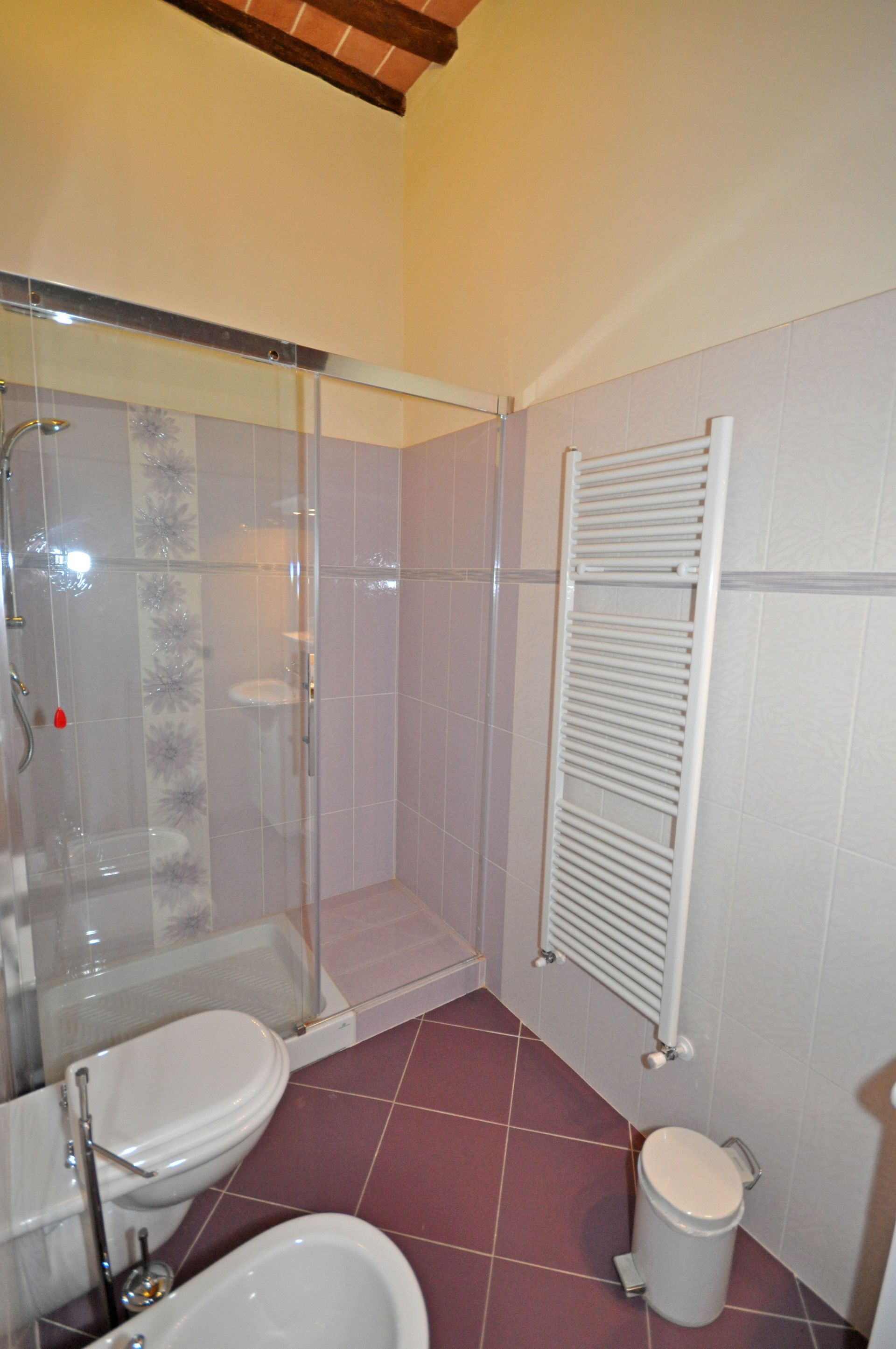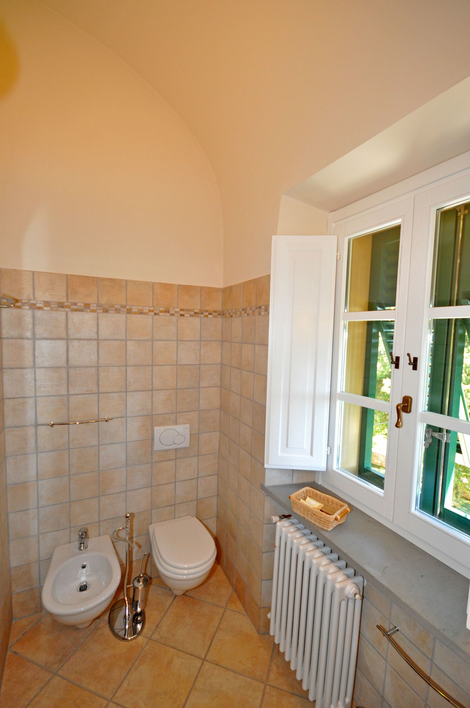 The rooms of the rented apartment are tastefully decorated and, the most important, the beds provide comfortable sleep with very good mattresses. In these last days of May with over 30 degrees °C the thick walls of the villa have protected us from the heat. Also, the villa is about 590 meters above sea level so the high temperatures are more bearable, here we had about 2-3 degrees lower than the temperatures in Volterra. One will not suffer cold either because the heater warms the rooms quickly and vigorously, we could try this durign the first days when it was still 20 degrees outside temperature.