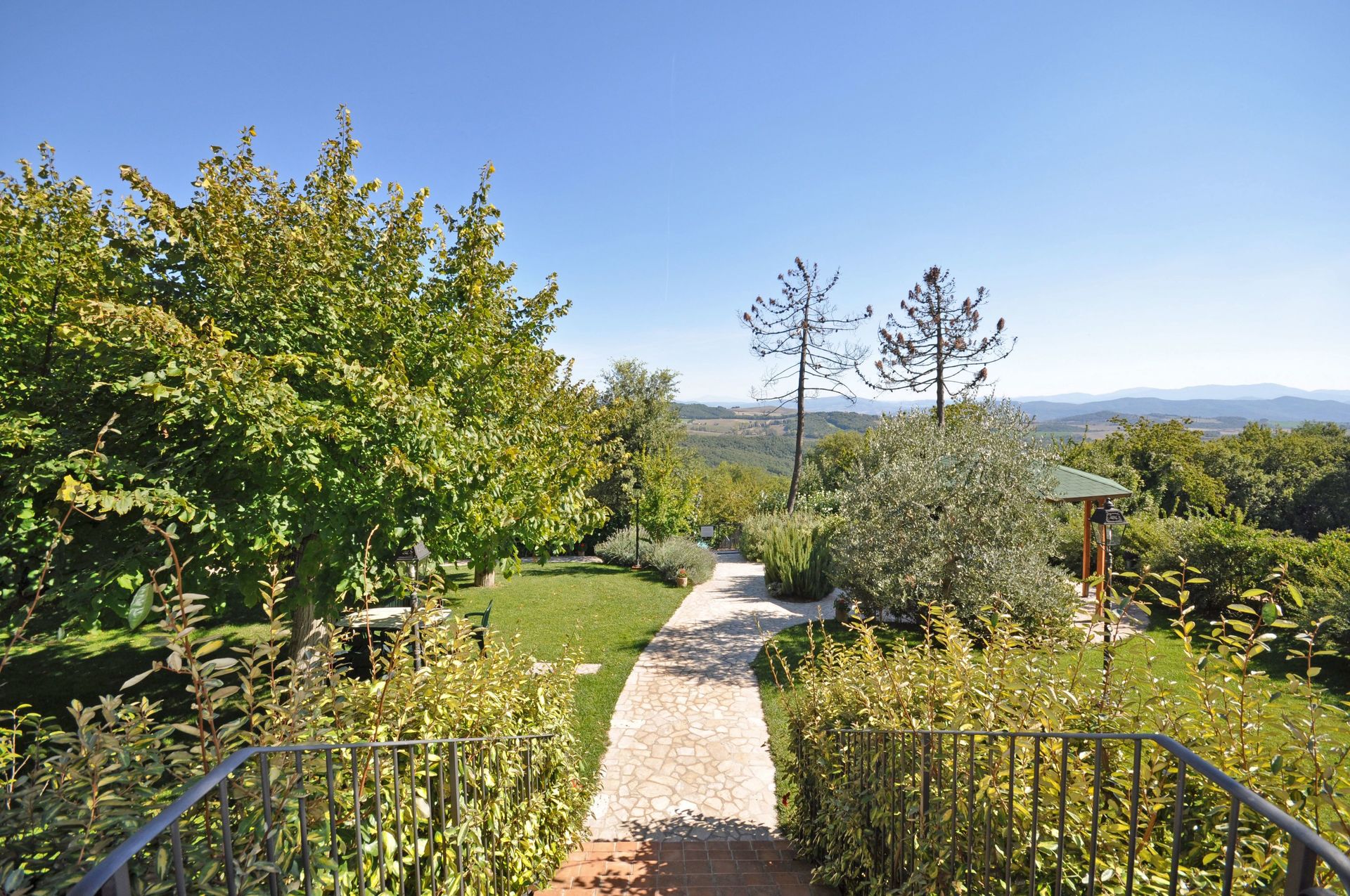 Beautiful house dating back to the end of the 18th century comprising 6 welcoming apartments. This property is situated on the hills surrounding Volterra and enjoys amazing views of the Tuscan landscape. All of the 6 units have been recently restored and are furnished in a rustic Tuscan style. The well-groomed outside areas provide gazebos, nice paths, fruit trees and a large pool with open-air shower and sun-beds. The property owners, who are very friendly people, live only a short distance away.