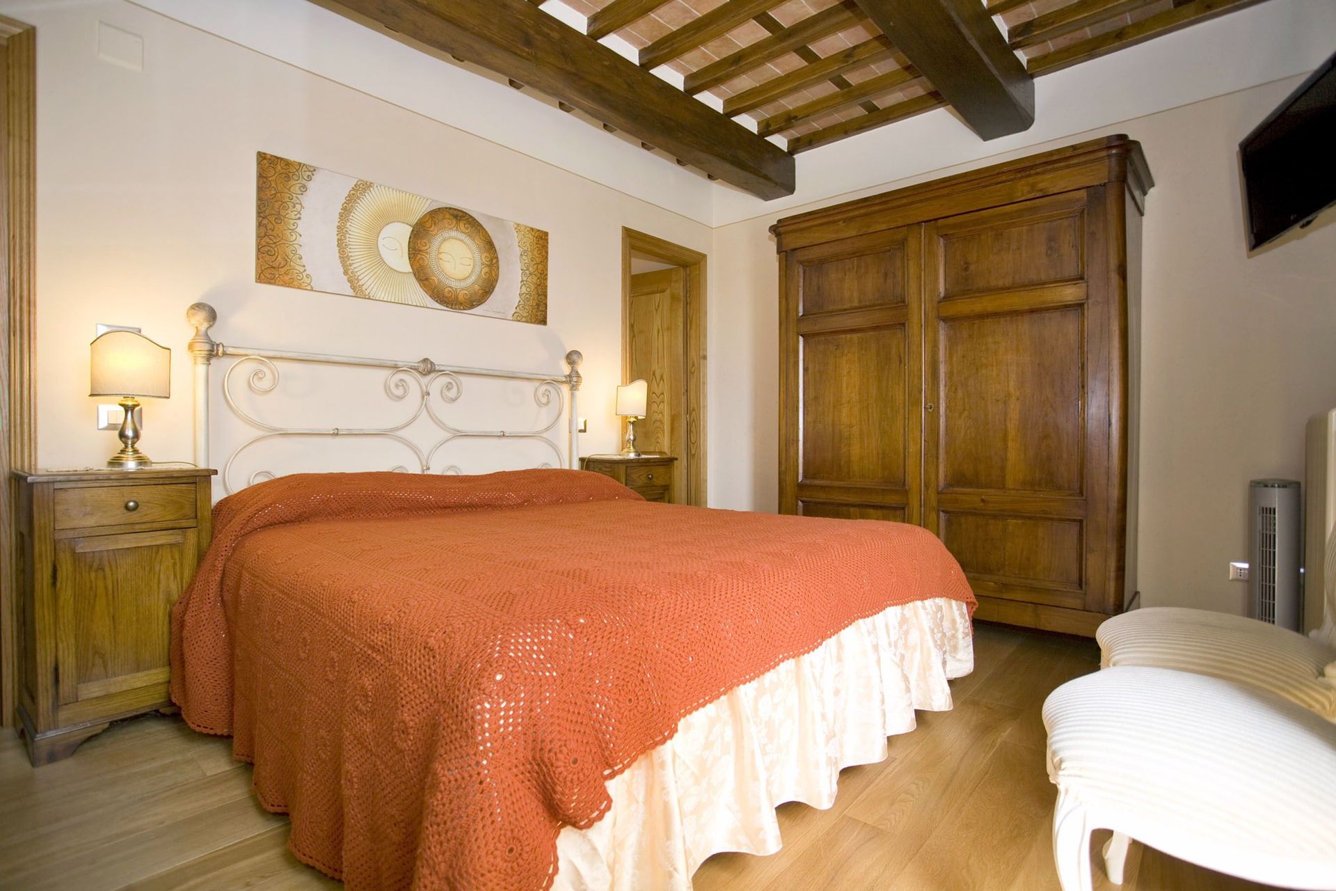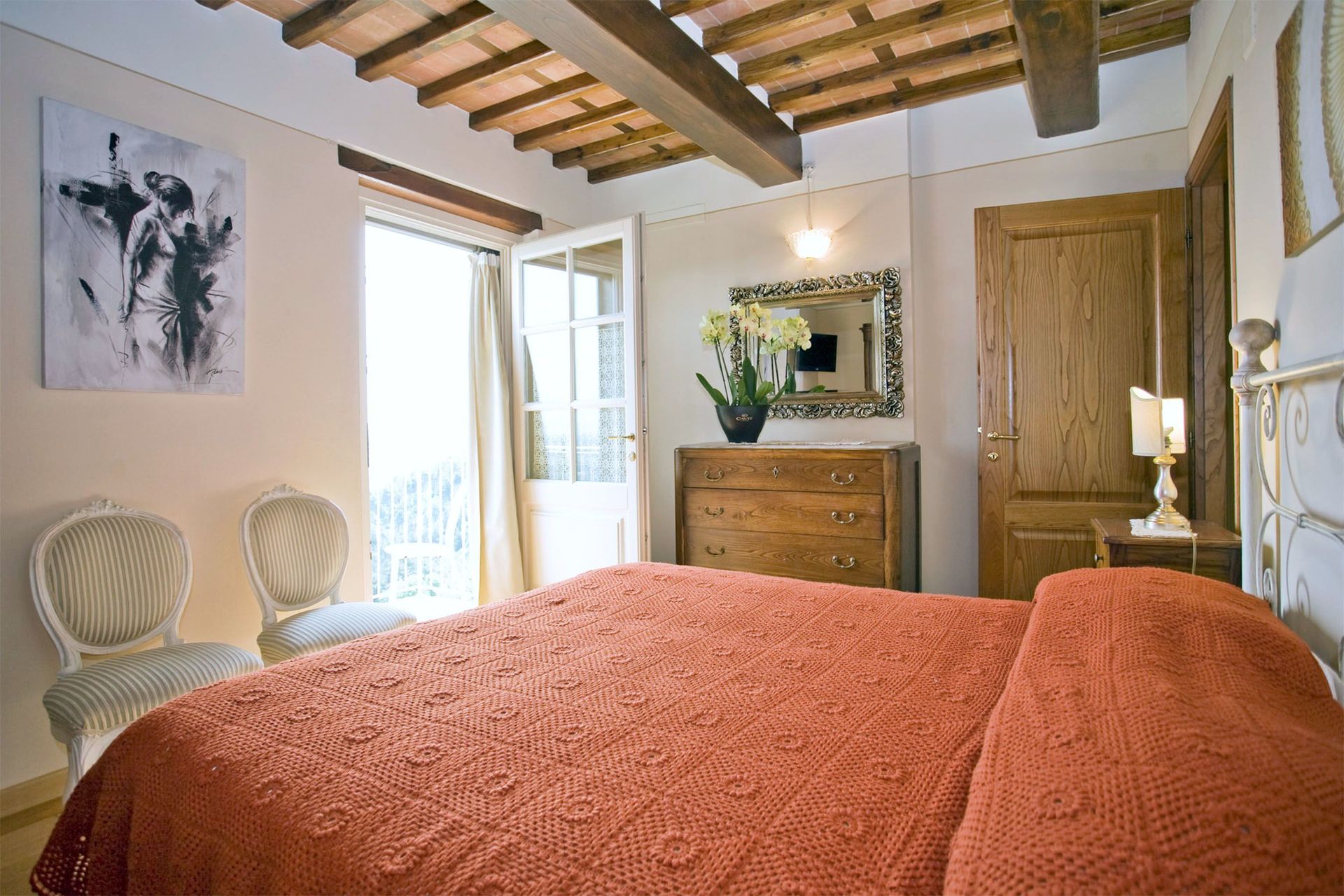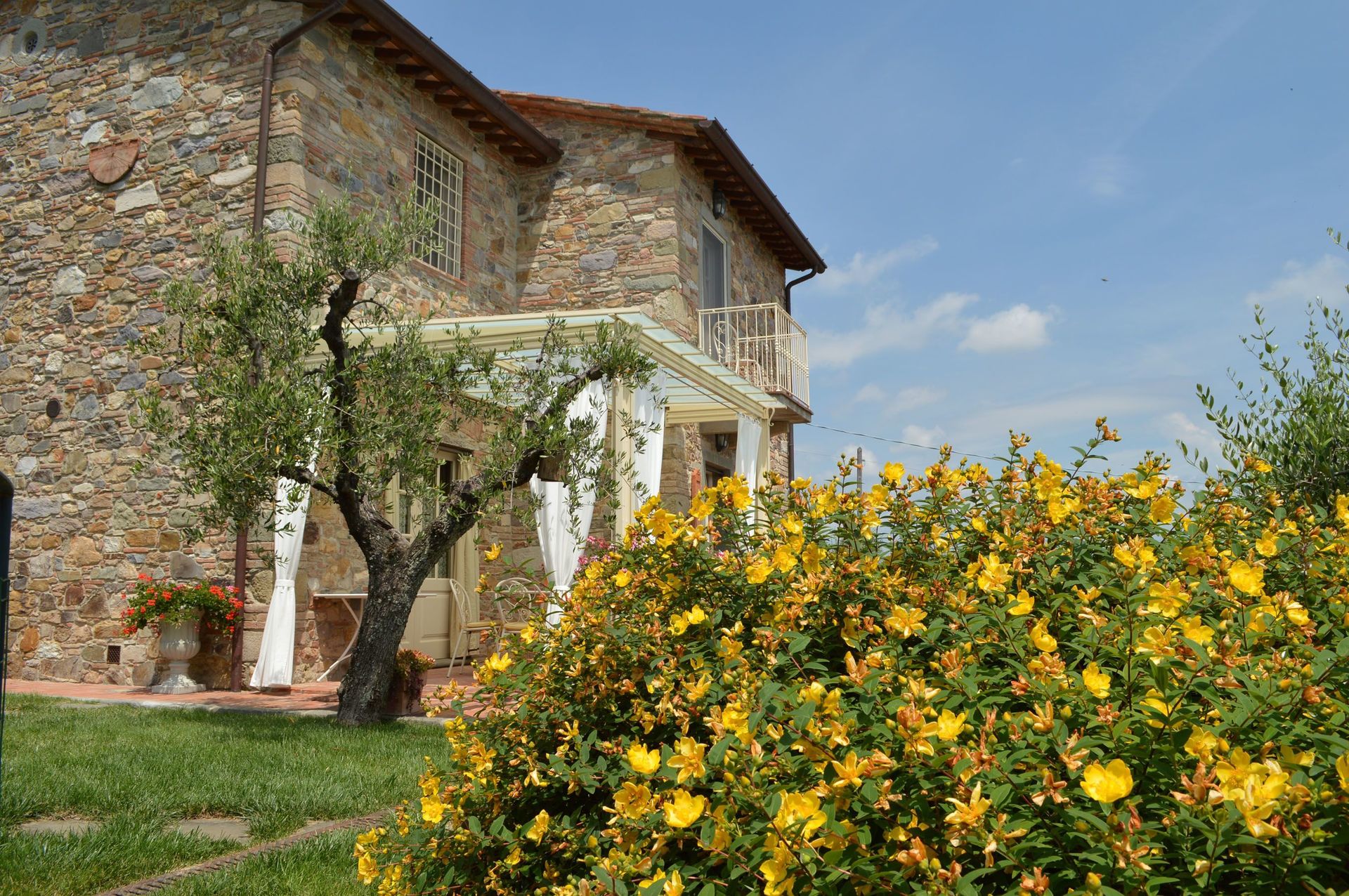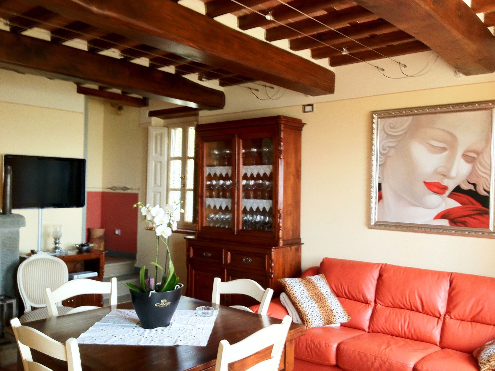 When you arrive you will be welcomed by the owner or manager where you’ll find a beautiful clean well-maintained property with views of the hills ideal for a peaceful vacation in Tuscany. For your enjoyment you will find a private pool where you can relax while enjoying a nice cold beverage after a hectic day of visiting museums. Dining with friends and family is a huge part of the Tuscan culture. Take advantage of the well-equipped kitchen to prepare meals using local produce while on your holiday. The kitchen includes coffee machine, microwave, toaster and refrigerator, as well as, plenty of tableware and cutlery for up to six people. Dine 'al fresco' like a real Tuscan, the fully furnished veranda is the ideal setting to enjoy food, family and the nice Tuscan weather.