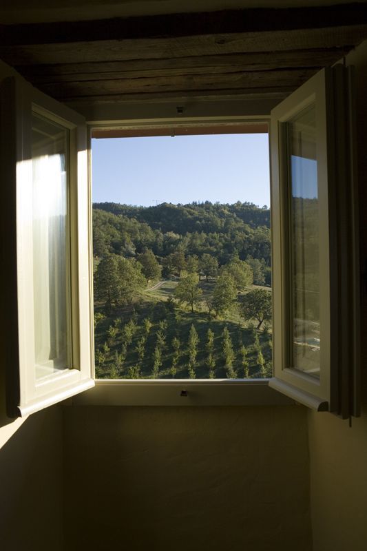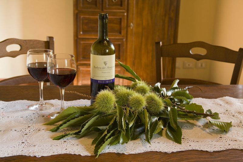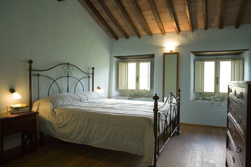 One large double bedroom and one double bedroom with extra single bed (if necessary). Large king size beds. Wardrobes, chest of drawers and chairs. Views over the chestnut woods.