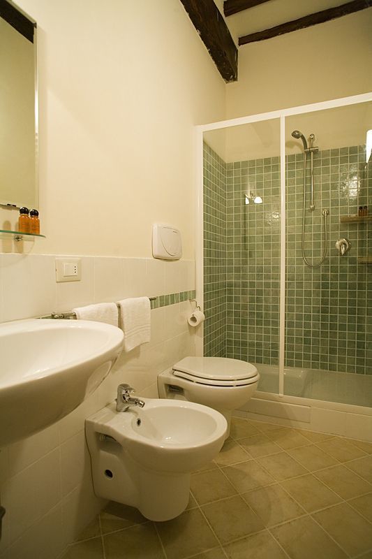 Two cosy bathrooms with large showers with glass doors, wc and sink.