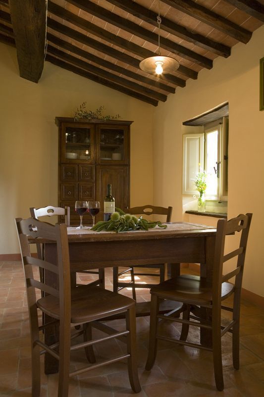 Large living room with kitchenetter. Table and chairs, cupboard, 4 armchairs and coffee table. Views over the olive grove and pool.