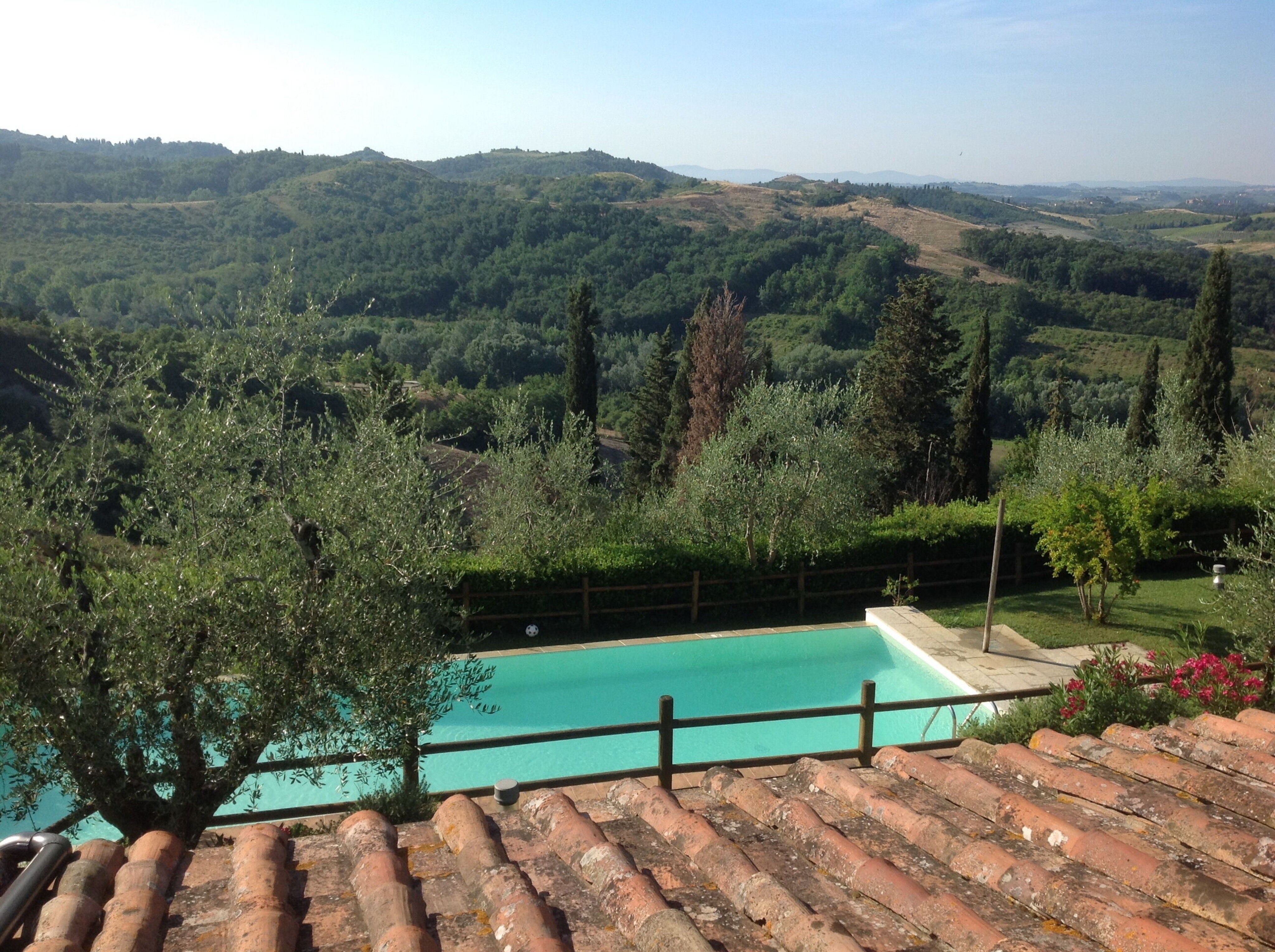 The location is very panoramic and offers extensive views over the surrounding landscape and the lovely town of San Gimignano with its towers in the distance. Florence, San Gimignano and the charming hamlets of the Chianti area are in easy access.