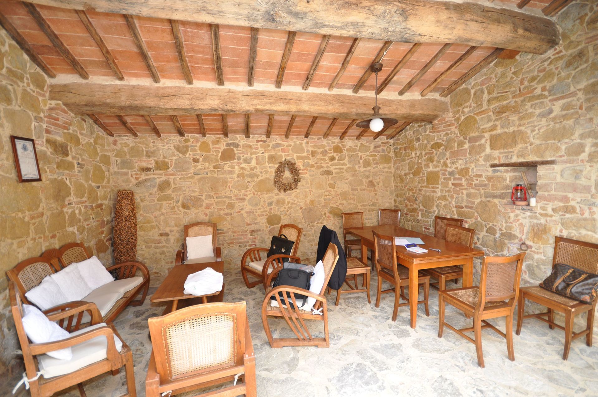 This villa has been tastefully restored preserving its original architectural features and ancient materials such as the beautiful terracotta-tiles floors and beamed ceilings and has been converted into a welcoming country-side residence. The interiors are tastefully furnished with some antique pieces.