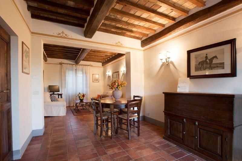 First floor: 1 double bedroom, 1 bedroom with twin bed convertible into double, bathroom with shower, view of Val di Chiana,