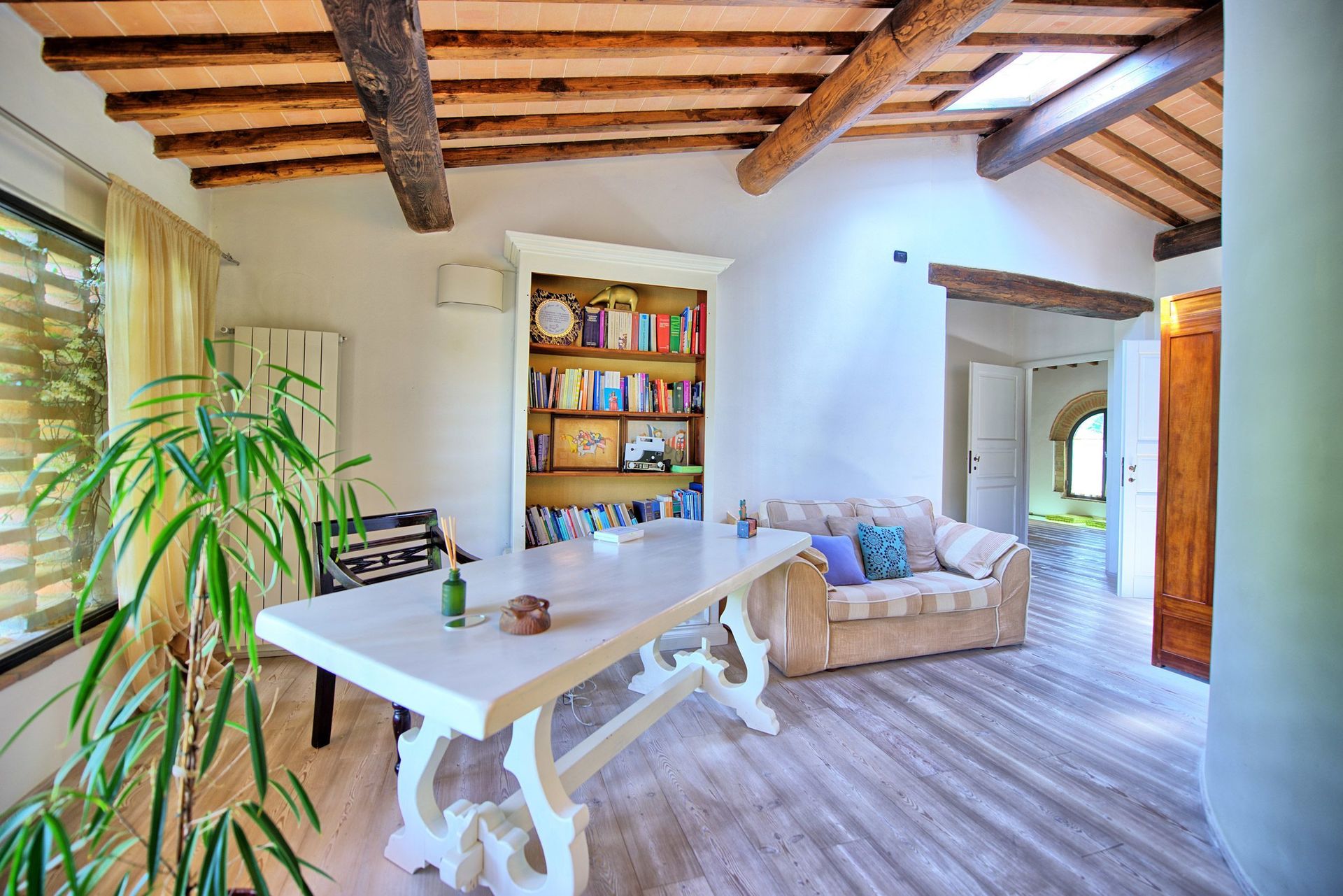 The villa interiors are tastefully furnished and offer a pleasant combination of modern-design furnishing and ancient materials.