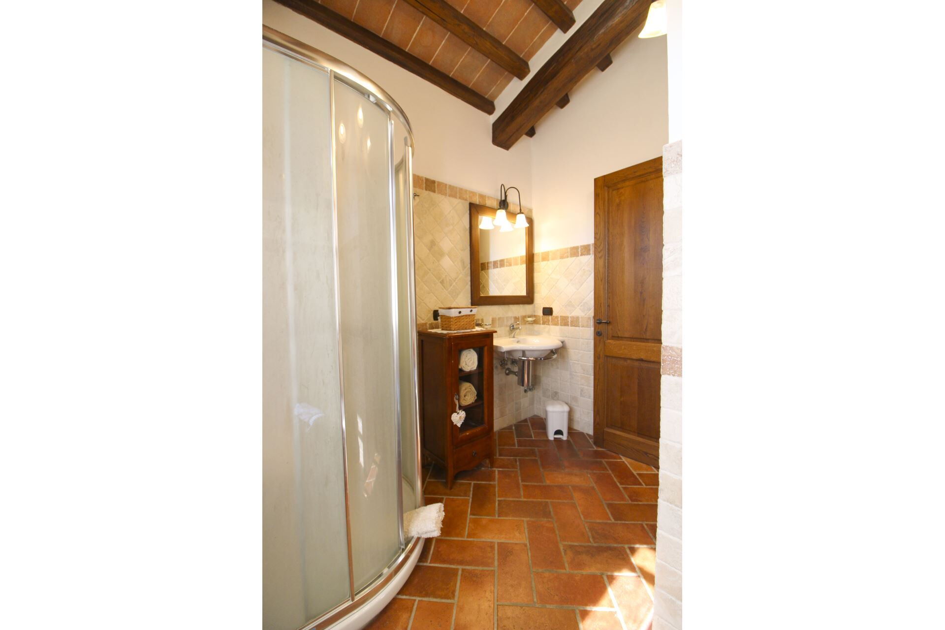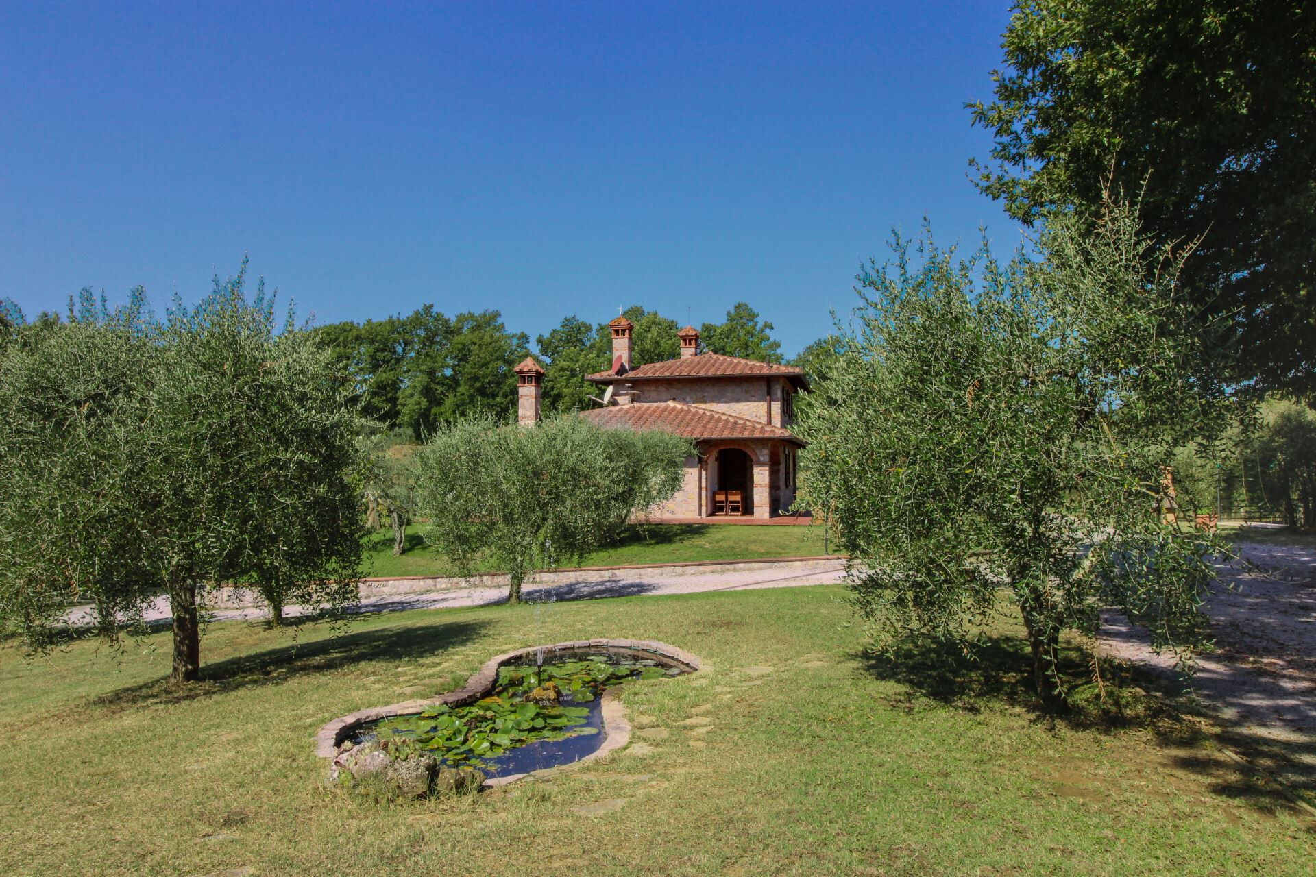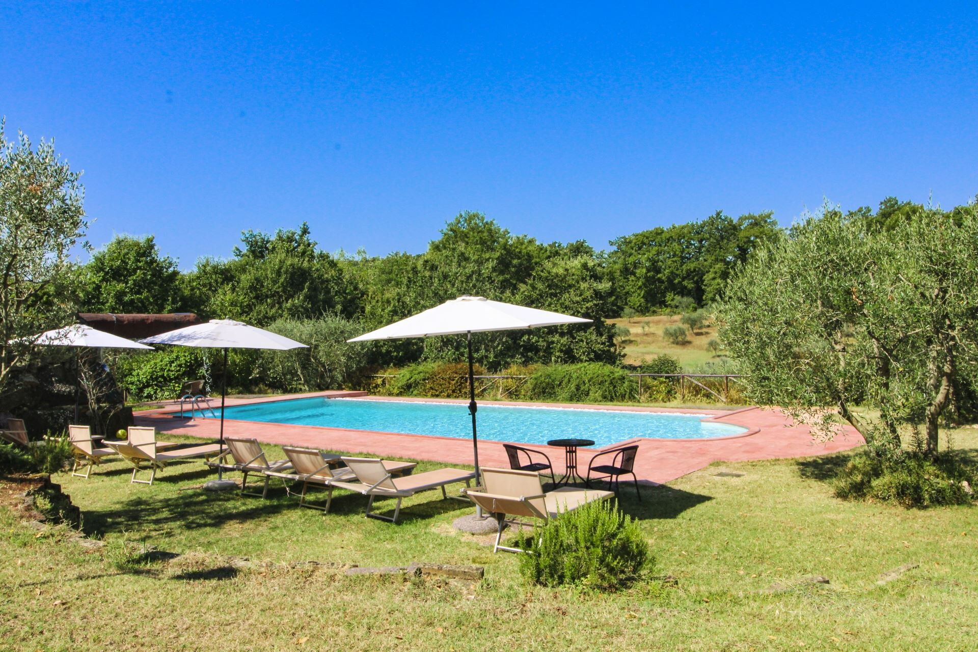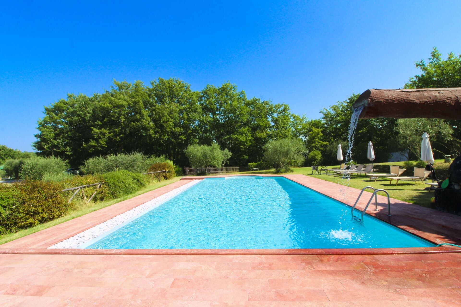 In the large, completely fenced garden there are various corners for relaxing, reading or entertaining yourself. Small but precious spaces in the olive grove or in the little wood, where you can comfortably enjoy a bottle of wine, or eat outside on summer evenings. The private swimming pool (size mt. 14x6, depth mt. 1,00-2,40) is finished off with a refreshing waterfall that will be fun for your children, and also has bathrooms and changing rooms available. A small vegetable garden where you can pick your own fresh seasonal vegetables will give you the opportunity to put red tomatoes and green salad on the table every day.