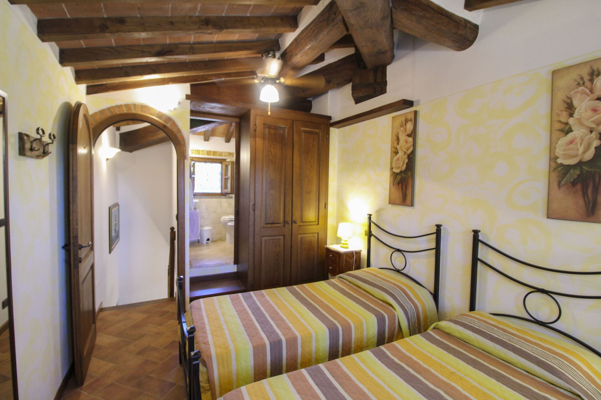 The agriturismo (farmhouse) La Casetta nel Bosco, divided into two independent units, is part of a farm including olive groves, woods, crops, a splendid horse riding school and a small horse and pony farm. It is situated just a few kilometers from the towns of Sinalunga and Trequanda, set in a hilly area of unspoiled woodland, rows of vines and olive trees sloping down to the Valdichiana, an area renowned for its wine, olive oil and Chianina beef, making it an ideal destination for lovers of Tuscan’s good food and good wine.