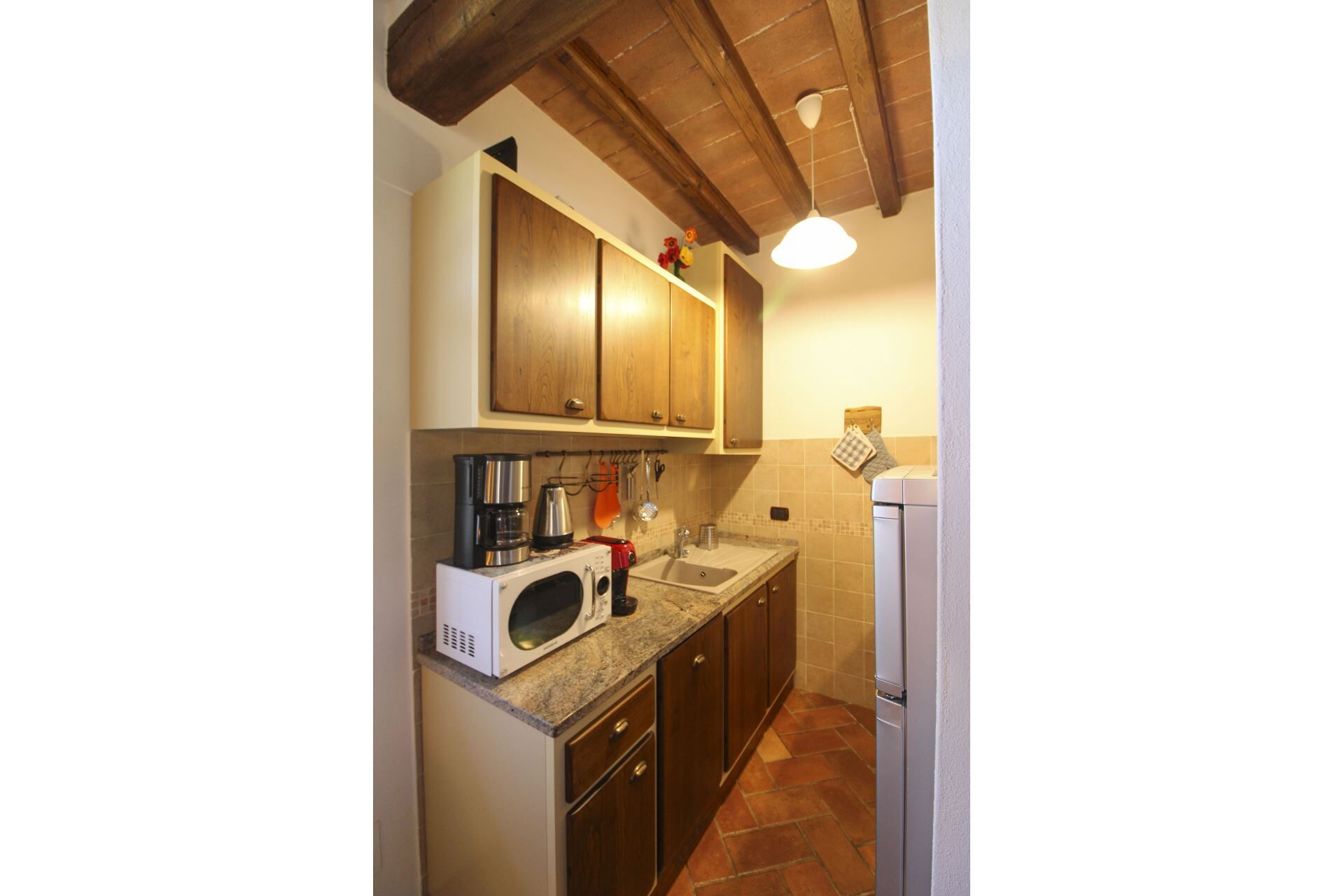 Refrigerator with freezer (2), oven (2), dishwasher (2), moka, filter coffee machine (2), espresso coffee machine (2), toaster (2), immersion blender, microwave (2)