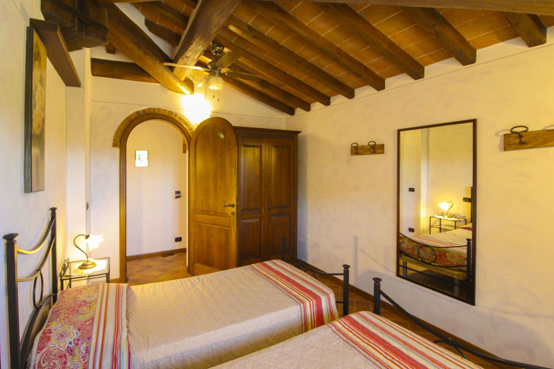 FIRST FLOOR: with access through wooden, internal staircase, twin bedroom, bathroom with shower.