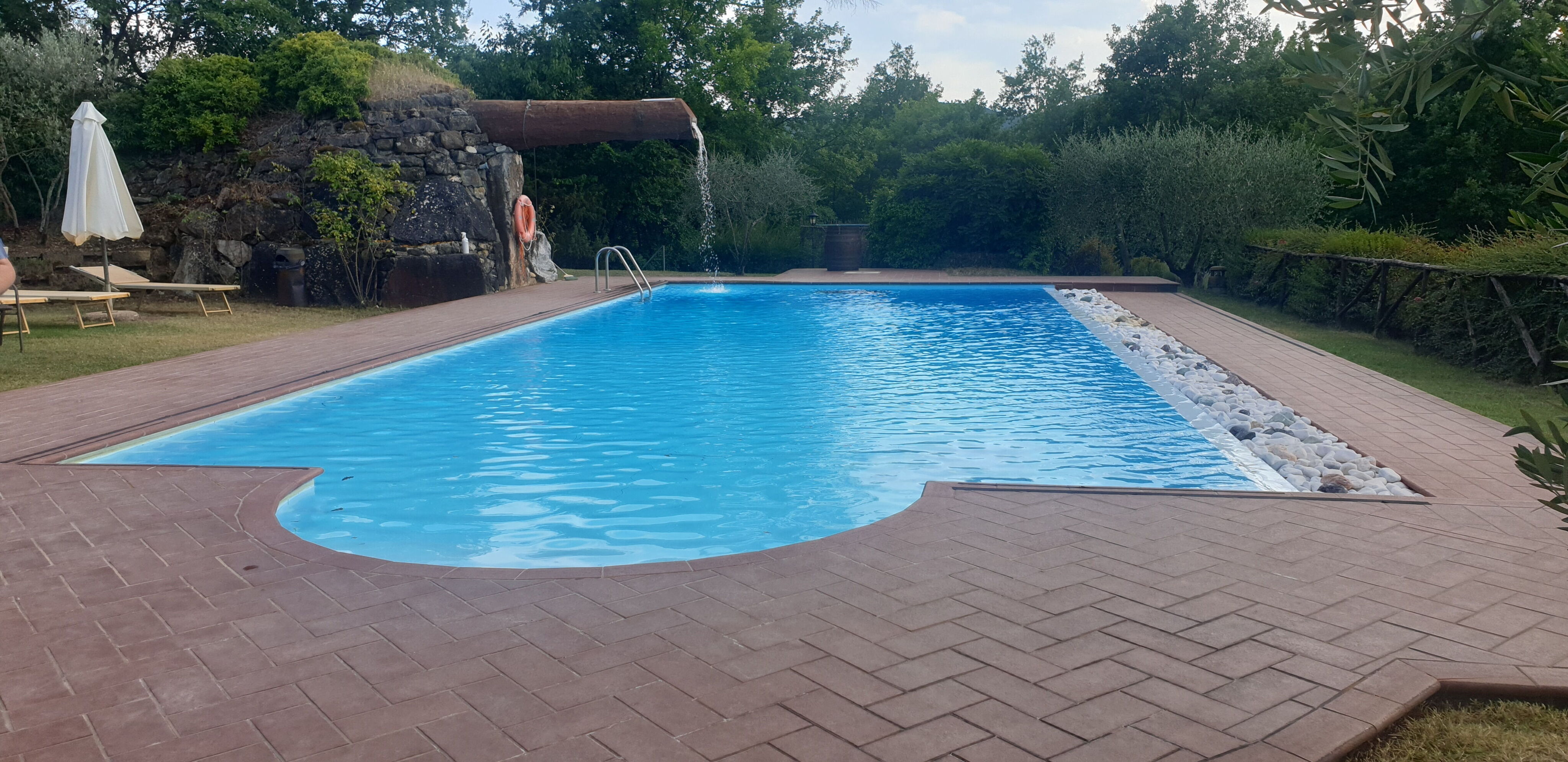 In the large, completely fenced garden there are various corners for relaxing, reading or entertaining yourself. Small but precious spaces in the olive grove or in the little wood, where you can comfortably enjoy a bottle of wine, or eat outside on summer evenings. The private swimming pool (size mt. 14x6, depth mt. 1,00-2,40) is finished off with a refreshing waterfall that will be fun for your children, and also has bathrooms and changing rooms available. A small vegetable garden where you can pick your own fresh seasonal vegetables will give you the opportunity to put red tomatoes and green salad on the table every day.