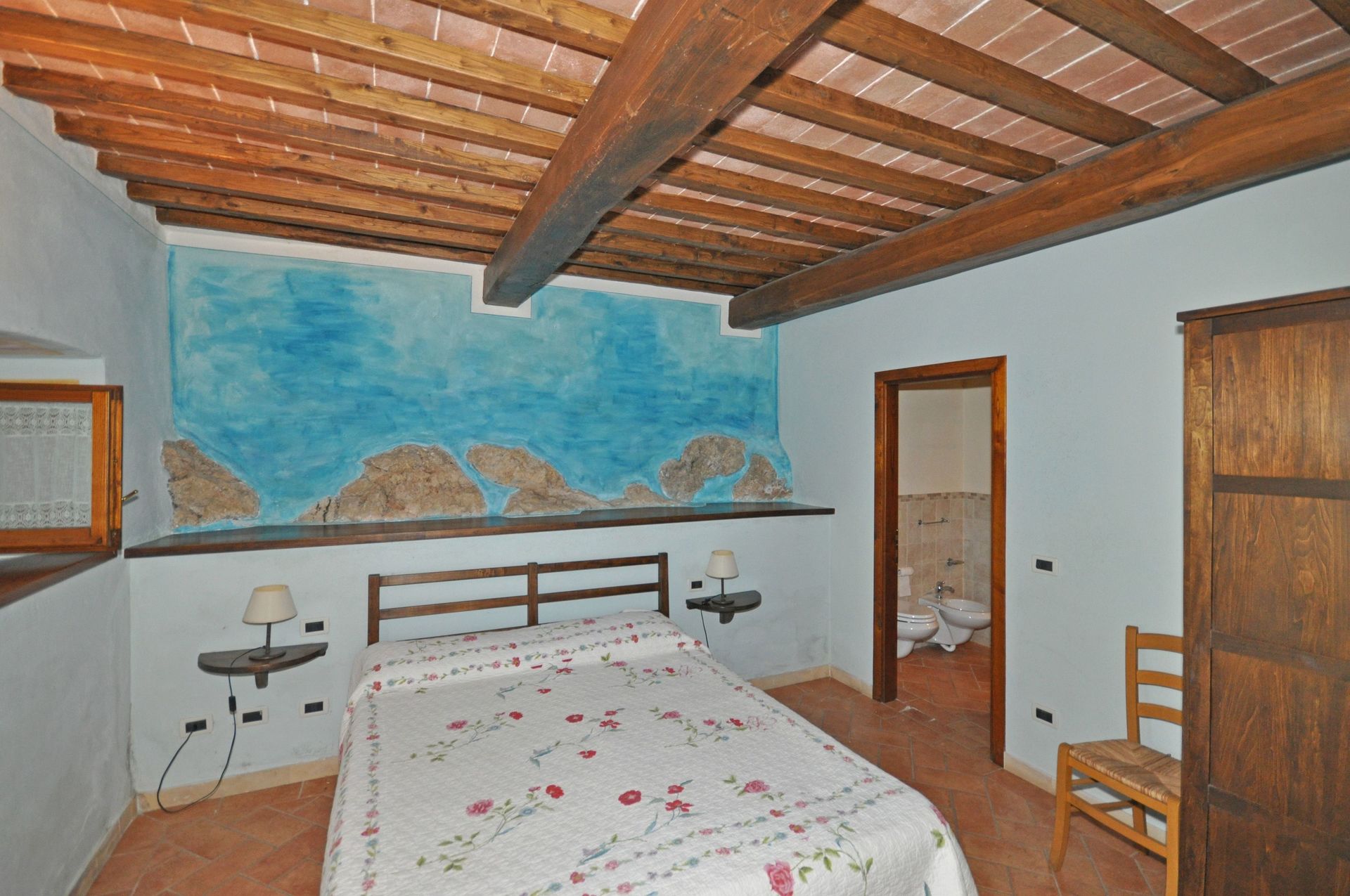 2 steps down: double bedroom with ensuite bathroom with shower.