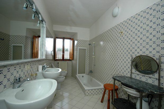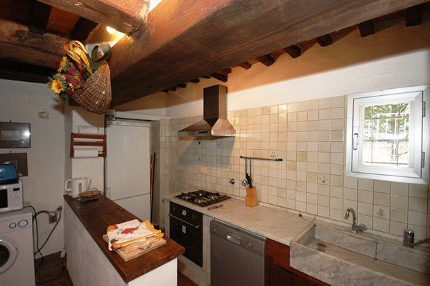 Ground floor: living-room (satellite TV, DVD reader), large kitchen (oven, small microwaves, freezer, dishwasher, toaster, washing-machine, ancient marble sink) with dining table and fireplace, living-room, double bedroom, twin-bedded room, bathroom with 2 sinks and with bathtub (at the floor level).