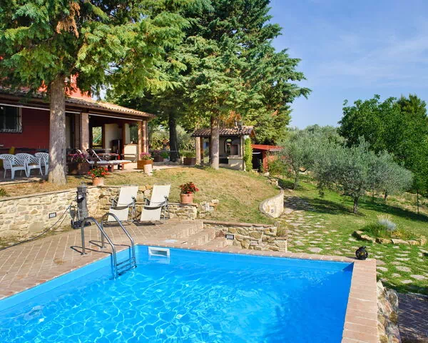 The outdoor spaces of "Agriturismo la Casetta di Chiara" are truly one of its most inviting features, offering a wealth of areas in which to relax and enjoy the natural beauty of the Umbrian countryside. The expansive private garden, extending across approximately 1 hectare and fully enclosed by fencing, provides ample space for leisure and recreation in complete privacy. The swimming pool, measuring 4 x 9 metres with a depth of 140 cm, is available for use during the seasonal period from 15 May to 15 October and is complemented by an outdoor shower for guests' convenience. A well-appointed patio area furnished with garden furniture creates an ideal setting for outdoor dining and relaxation, while a dedicated barbecue house offers the perfect opportunity to enjoy al fresco meals in the open air. Younger guests are well catered for with a children's playground located within the garden, making the outdoor area as entertaining as it is beautiful.